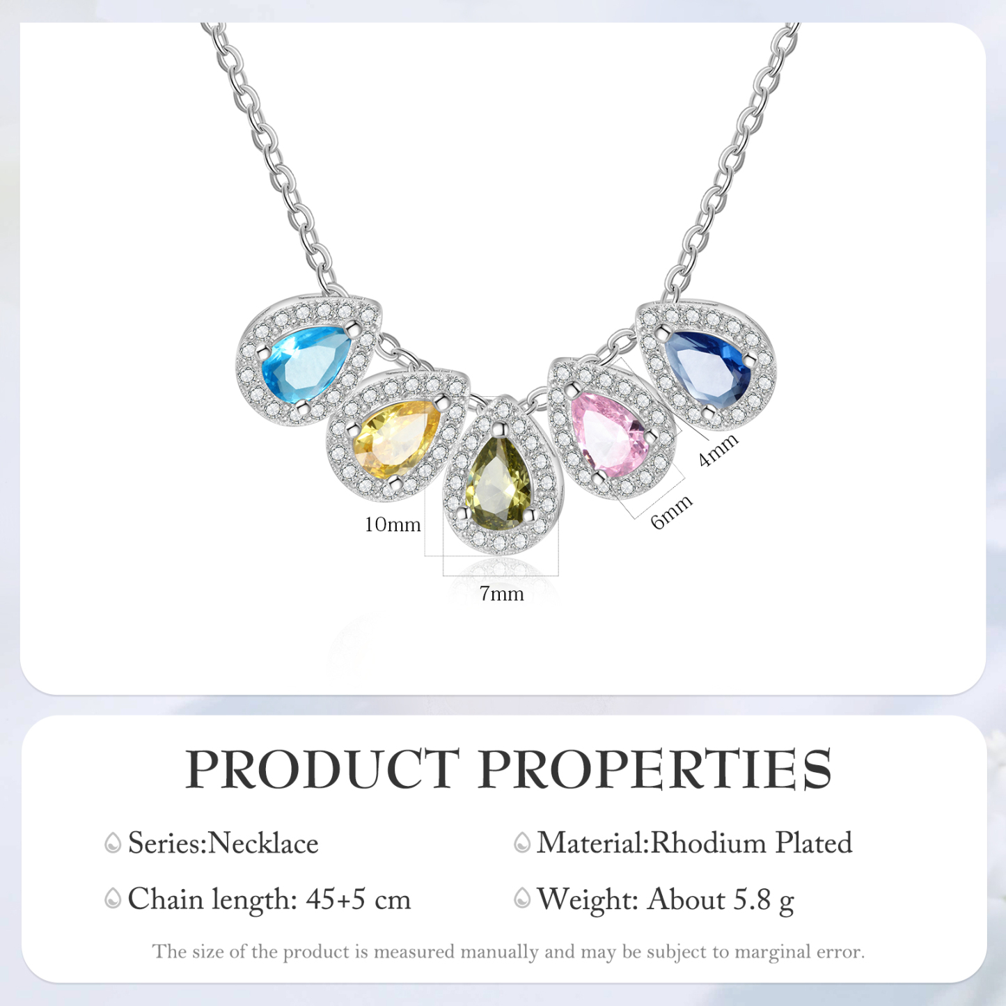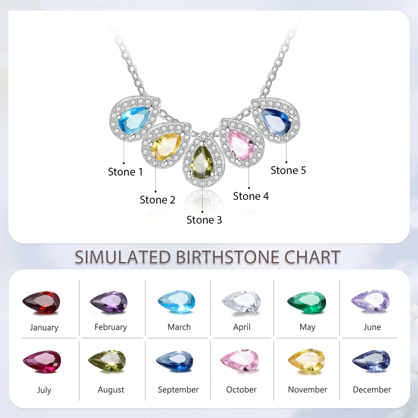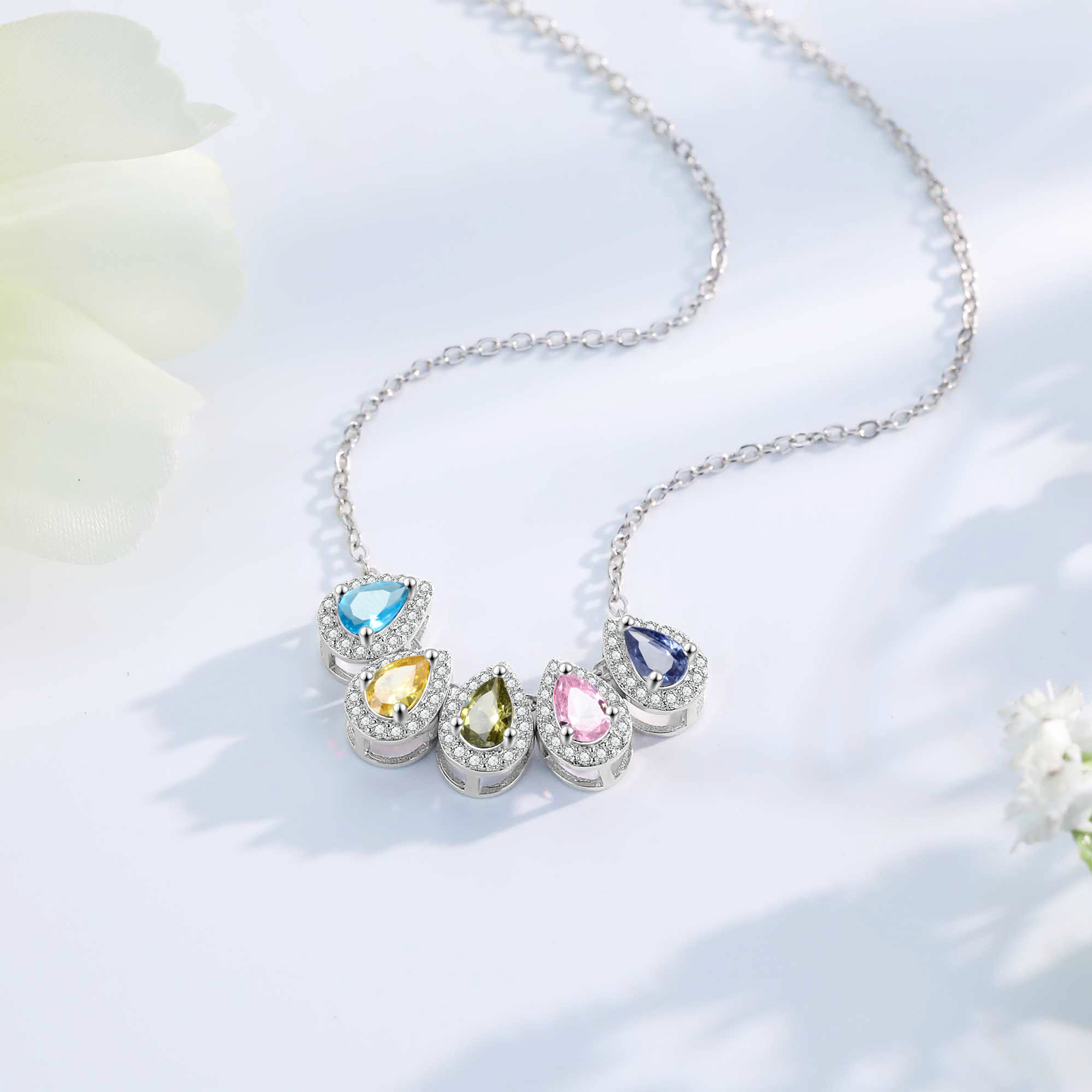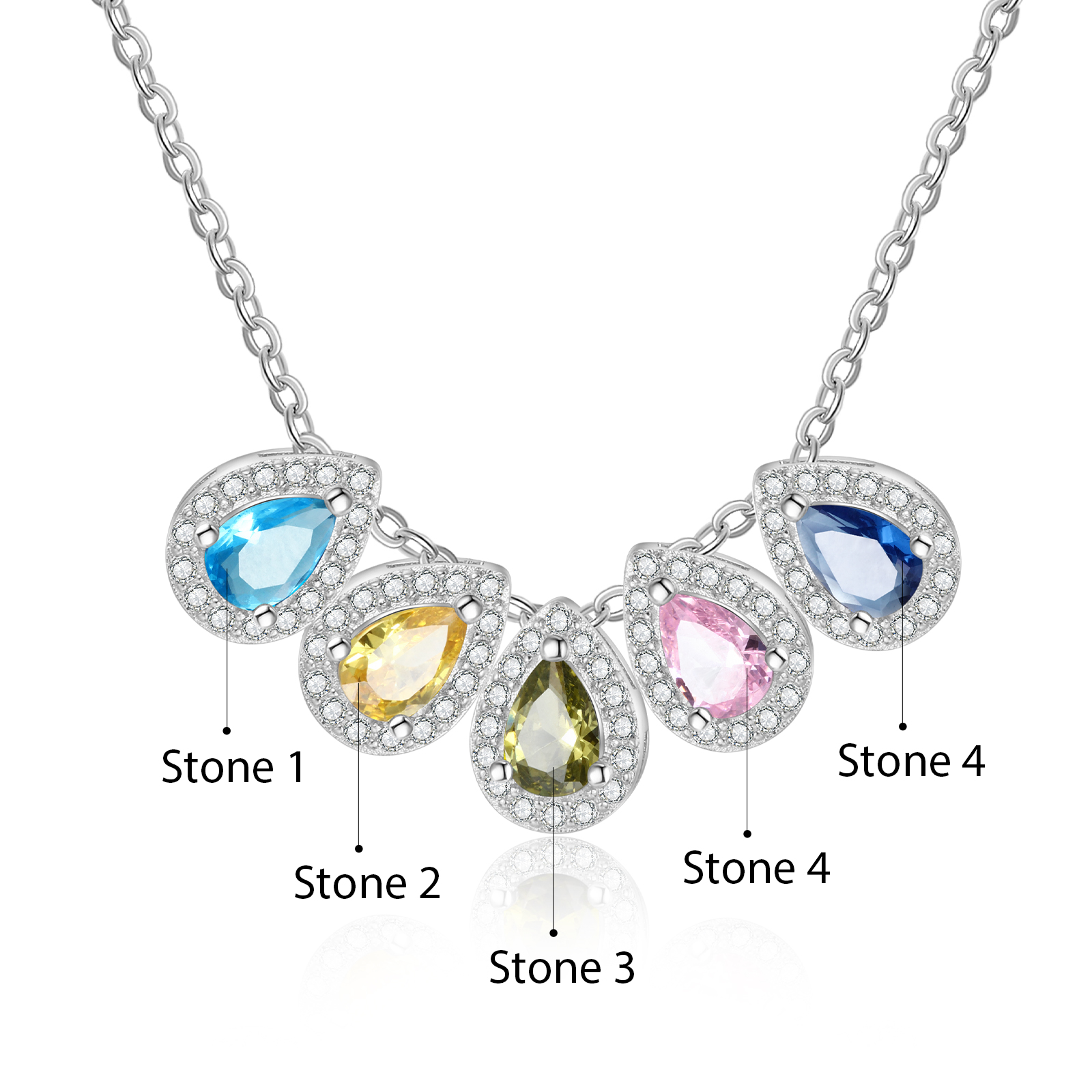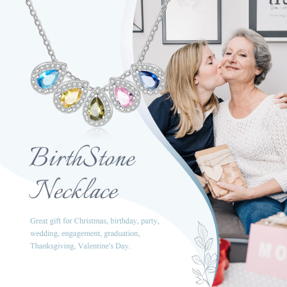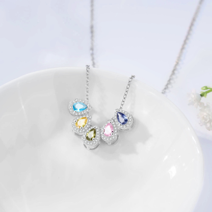 Personalisierte 5 Geburtssteine Tropfenform Halskette mit Zirkonia