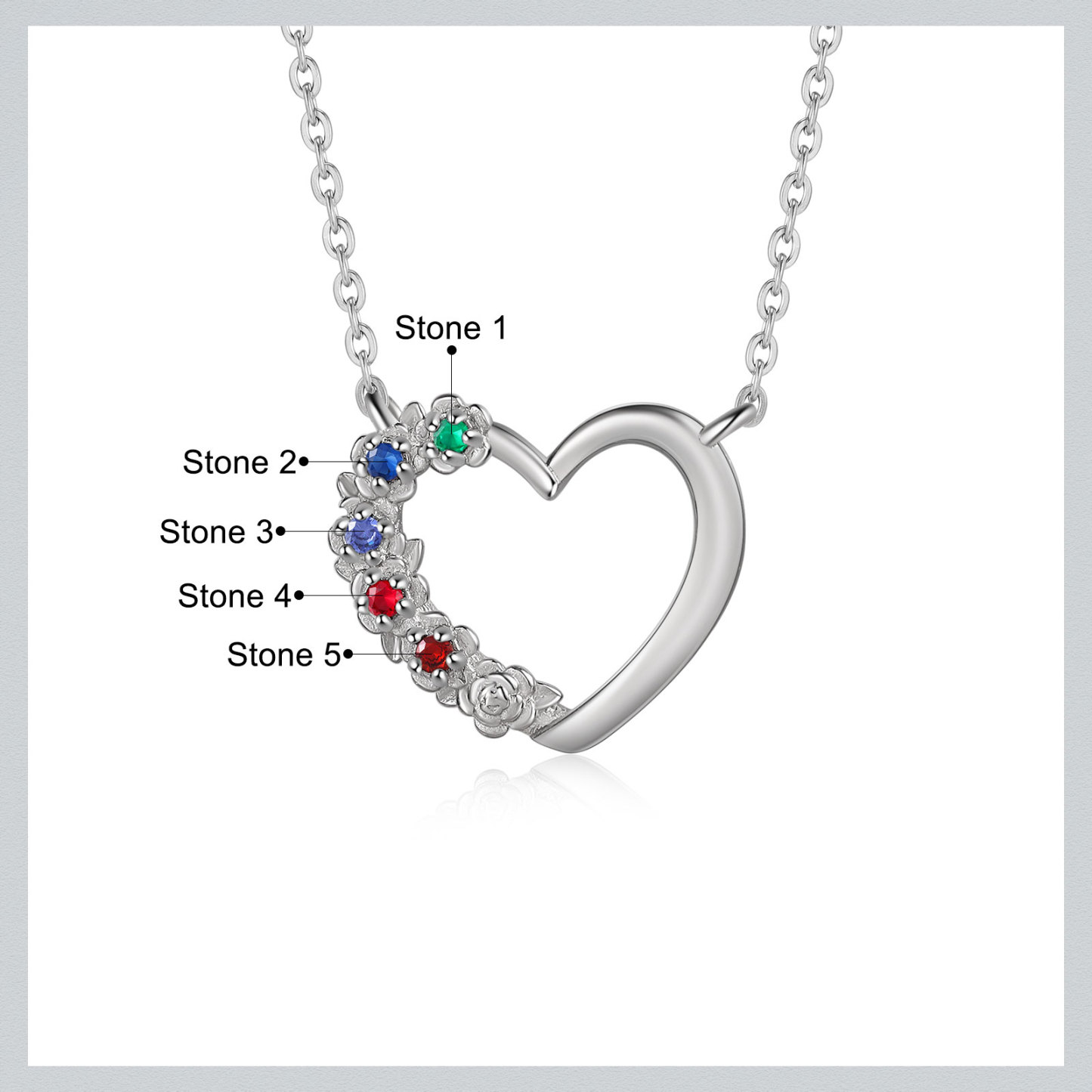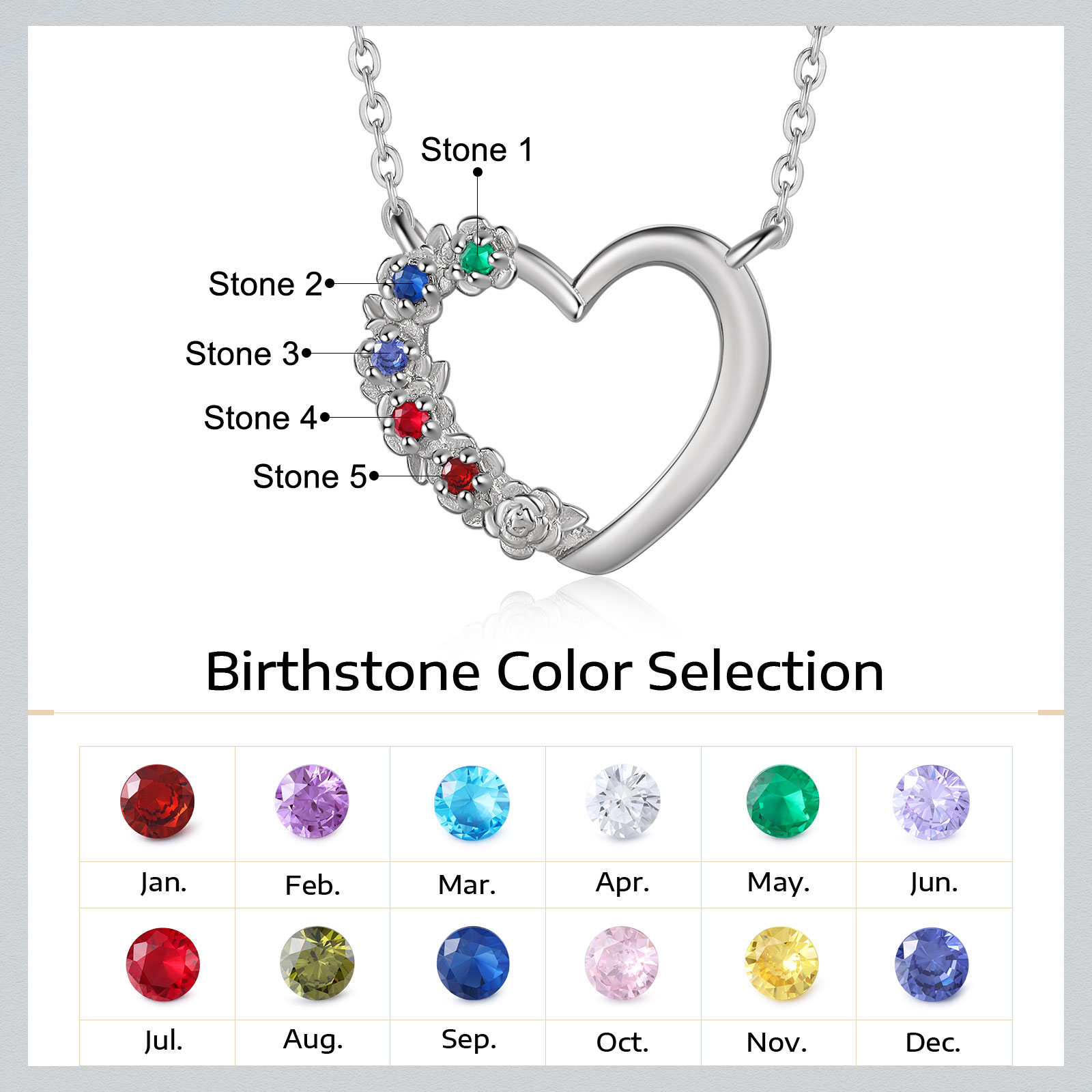 Personalisierte 5 Geburtssteine Herz Rose Halskette für Großmutter