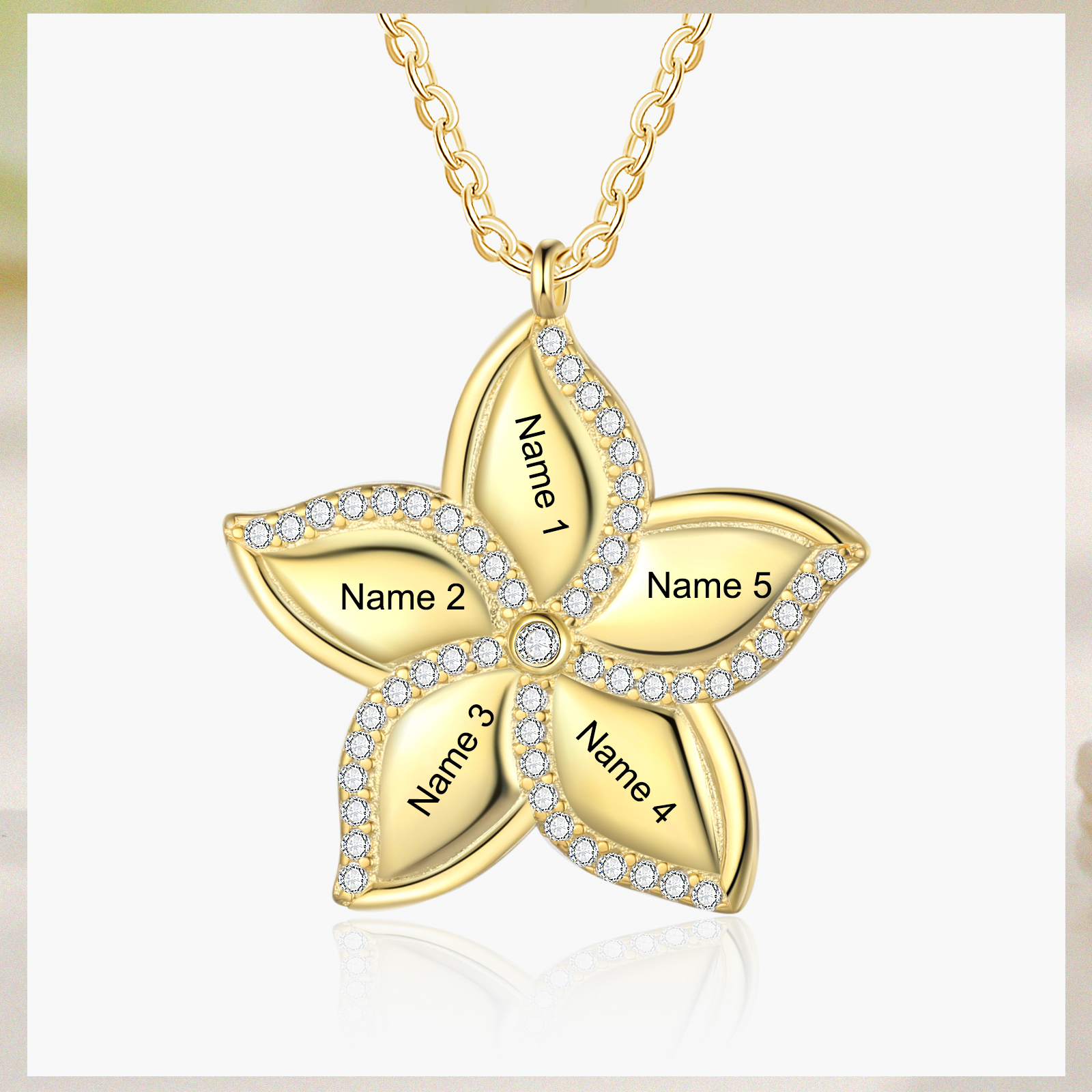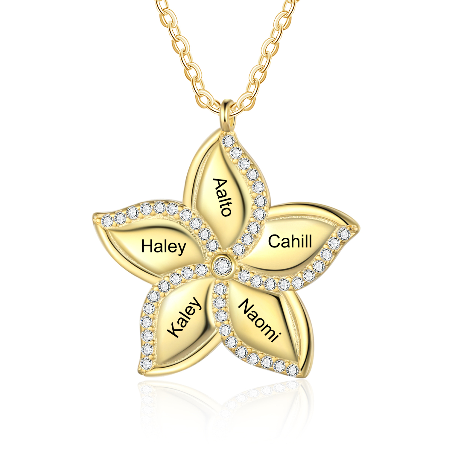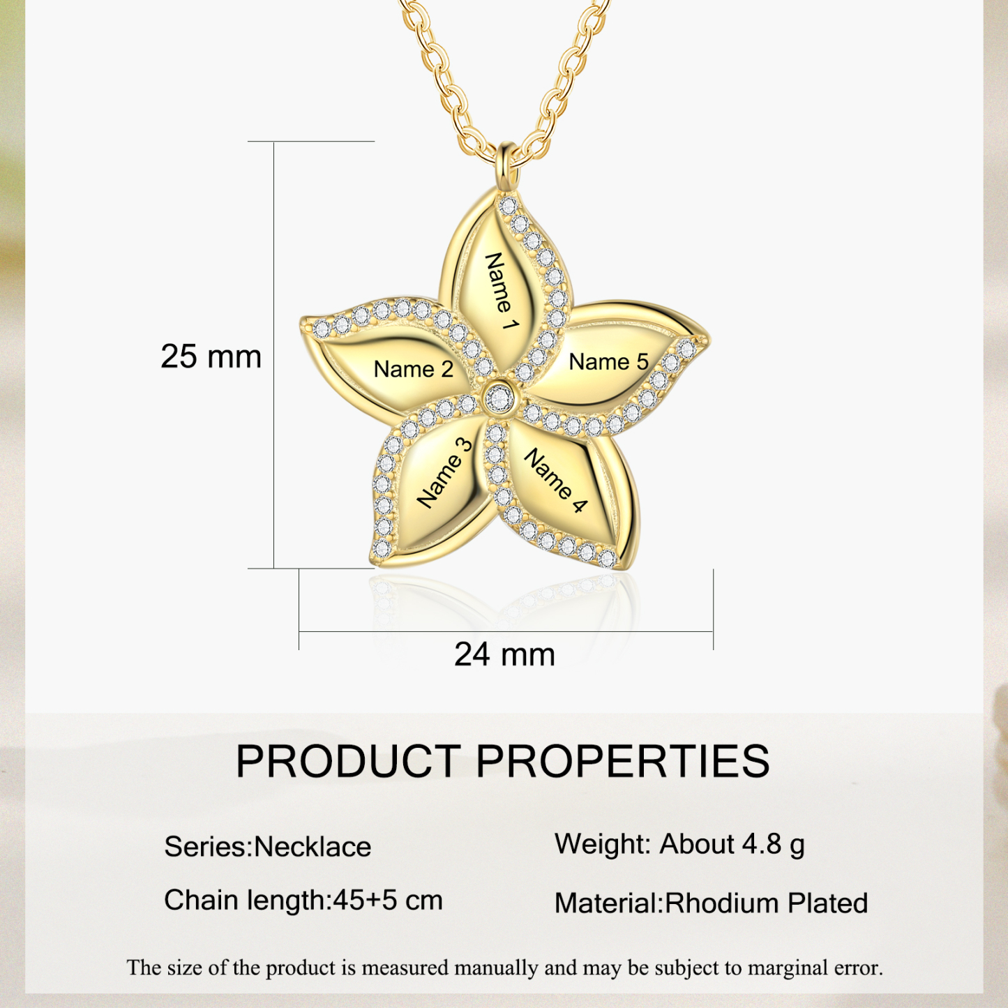 Personalisierte 5 Namen Goldene Blume Halskette mit Zirkonia
