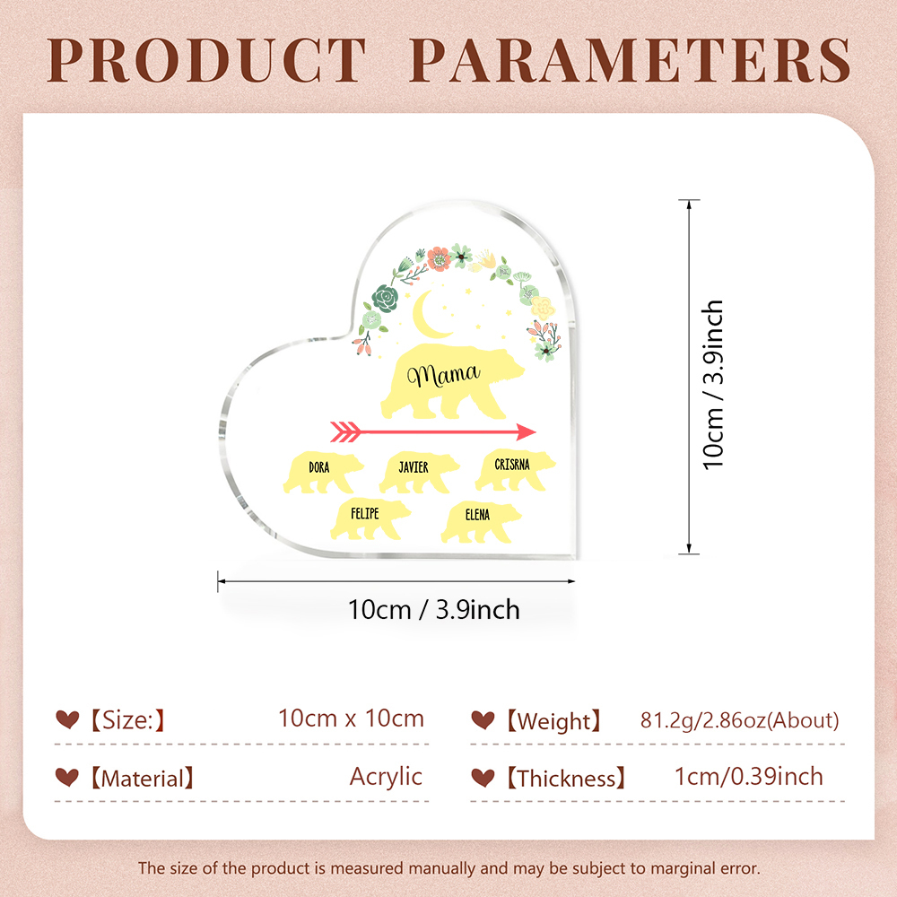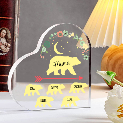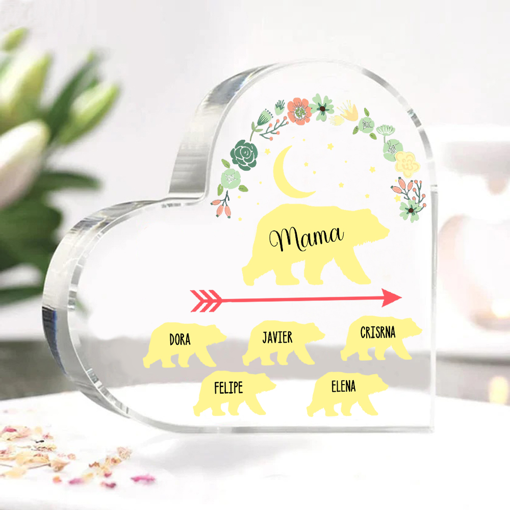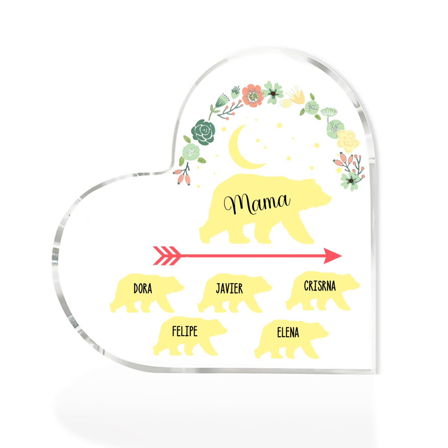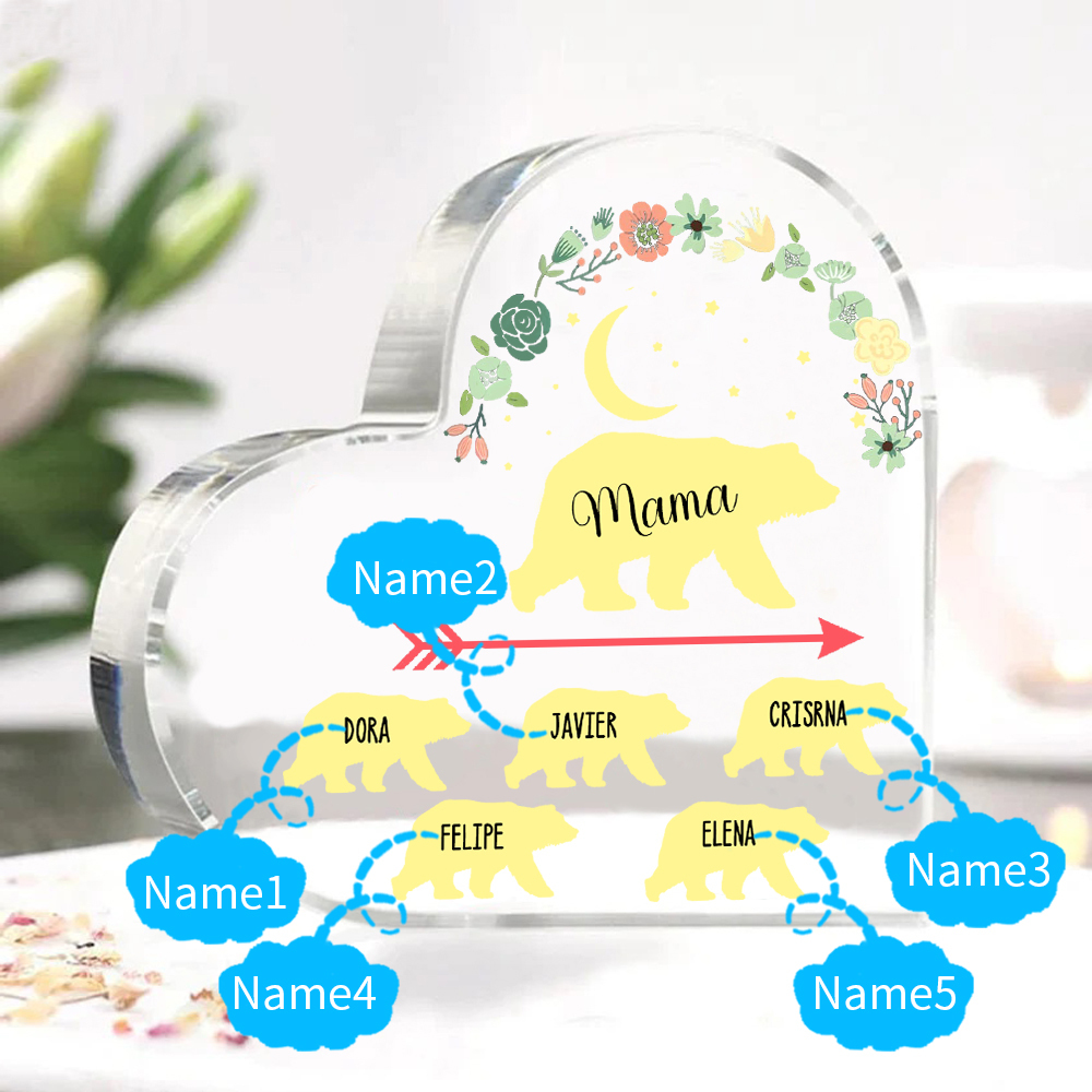 Personalisierte 5 Namen Herz Acryl-Deko Mama Bär Schreibtischdekoration für Mutter