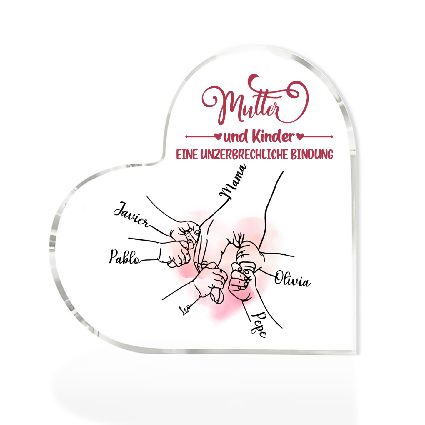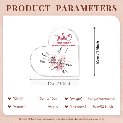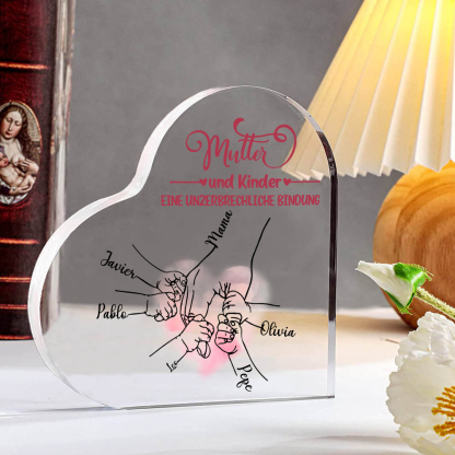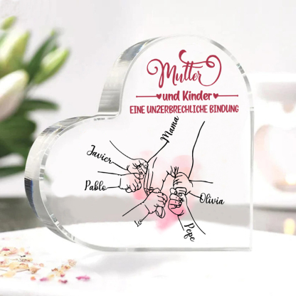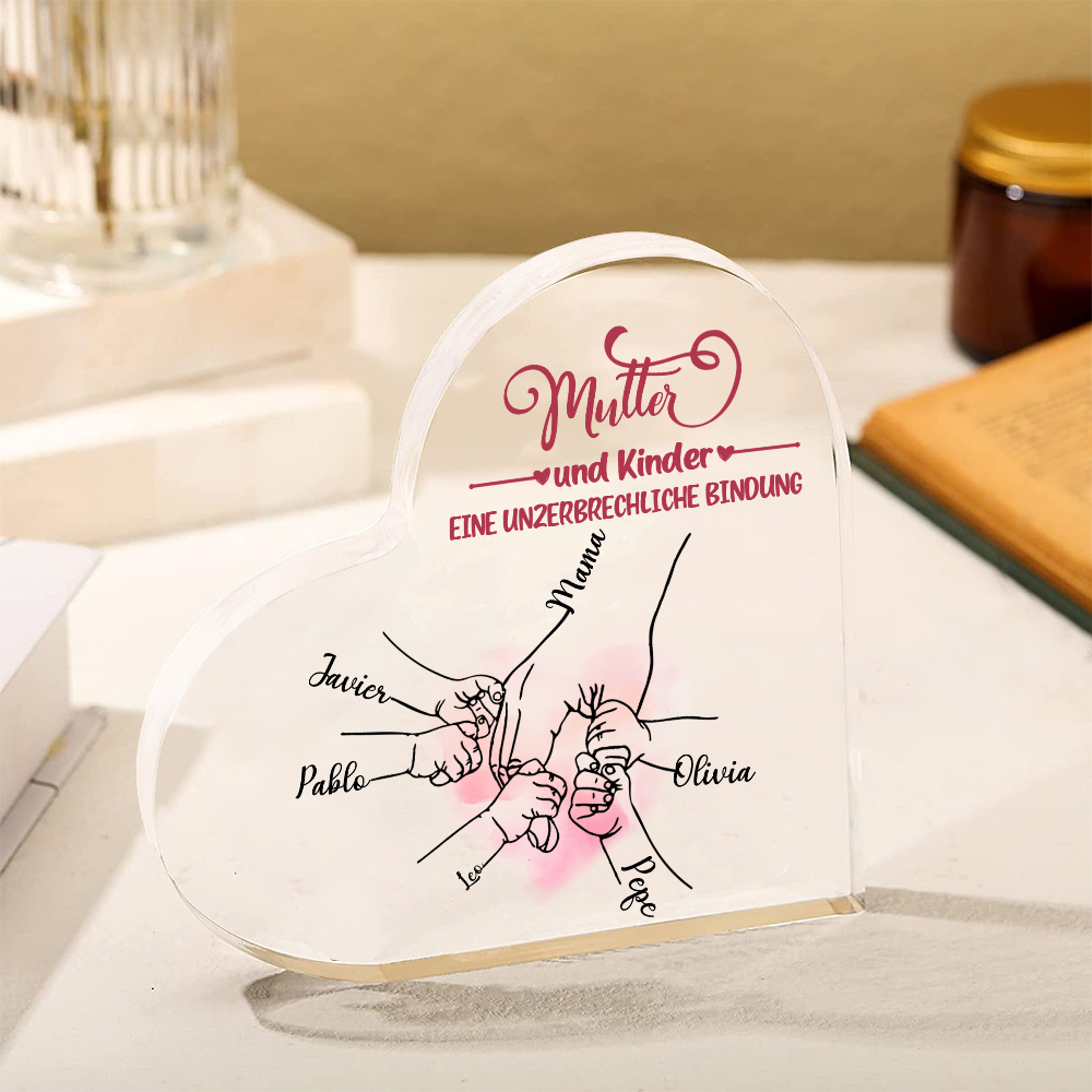 Personalisierte 5 Namen Herz Acryl-Deko - Mutter und Kinder eine Unzerbrechliche Bindung - Schreibtischdekoration für Mutter