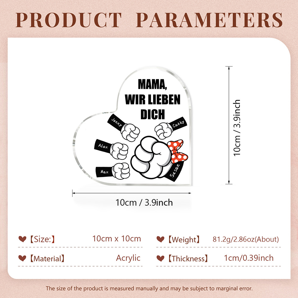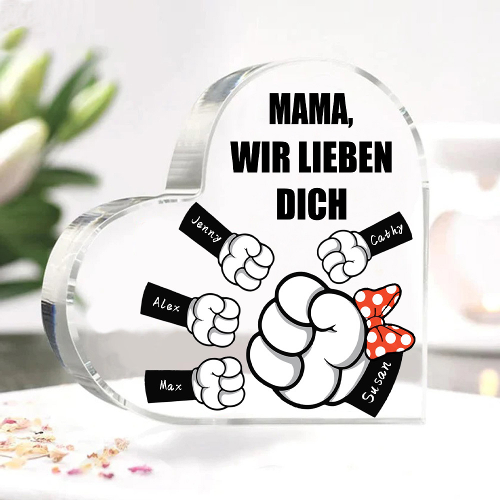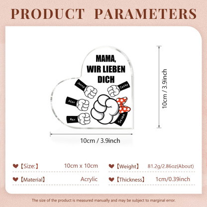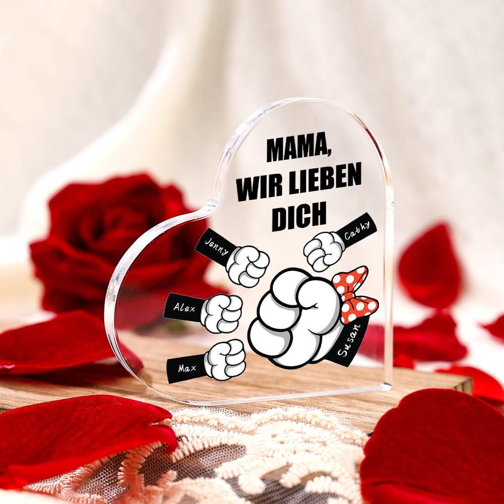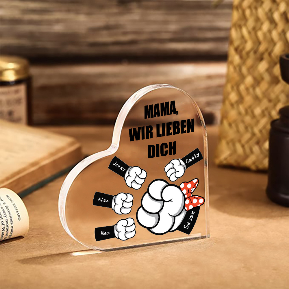 Personalisierte 5 Namen & Text Familie Acryl-Deko Schreibtischdekoration für Mutter