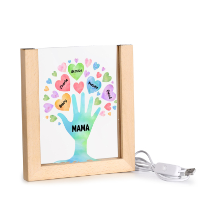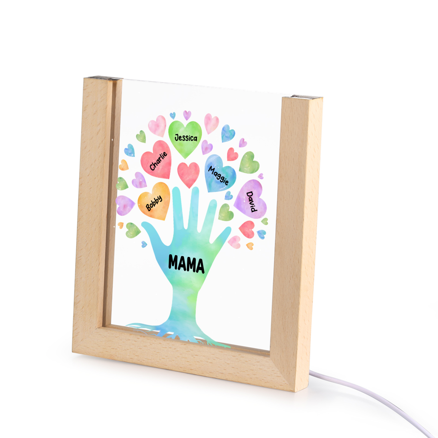 Personalisierte 5 Namen & Text Familie Hand Acryl Rahmen Nachtlicht Geschenk für Großmutter/Mutter zum Muttertag