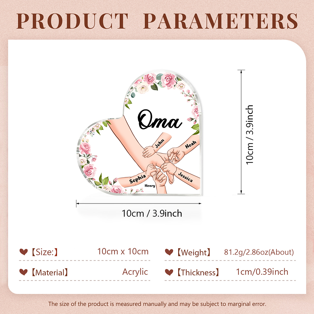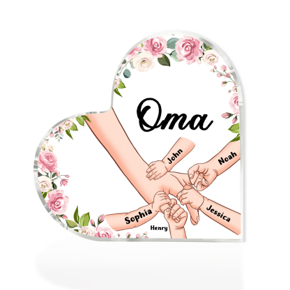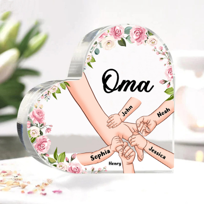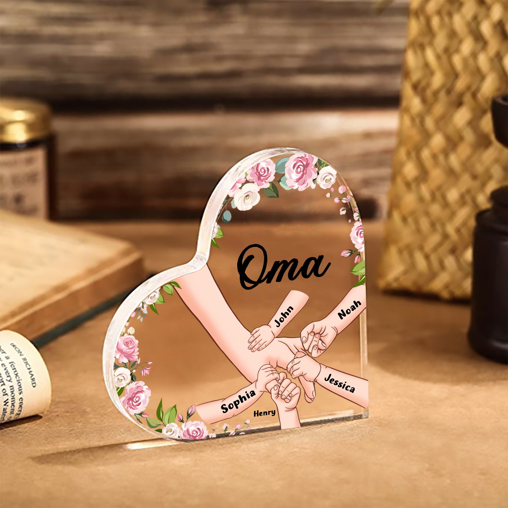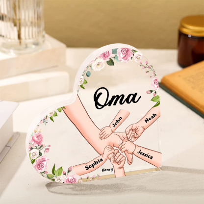 Personalisierte 5 Namen & Text Hand in Hand Acryl-Deko-Schreibtischdekoration für Großmutter