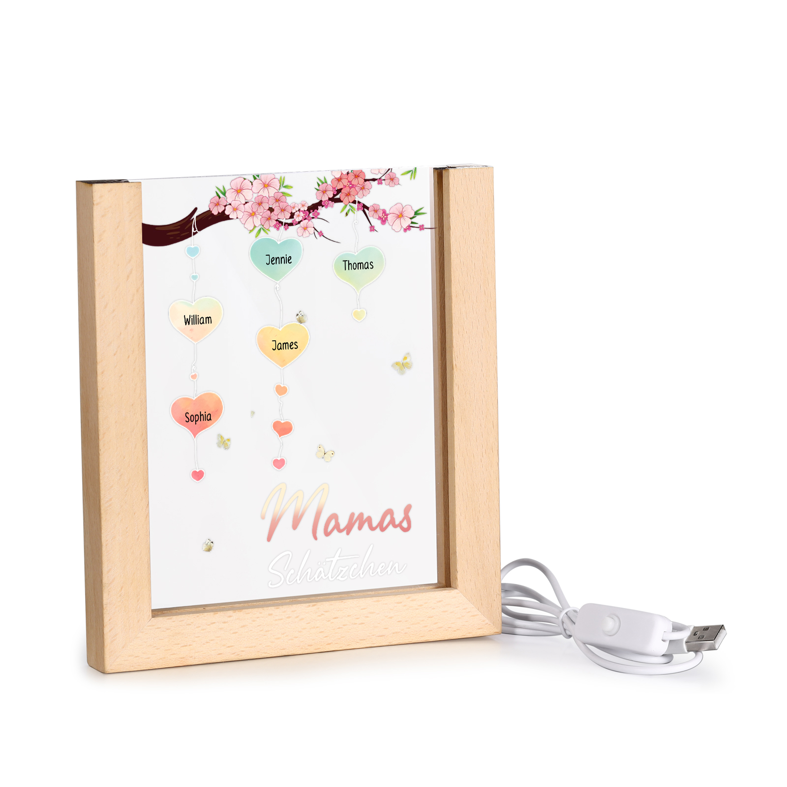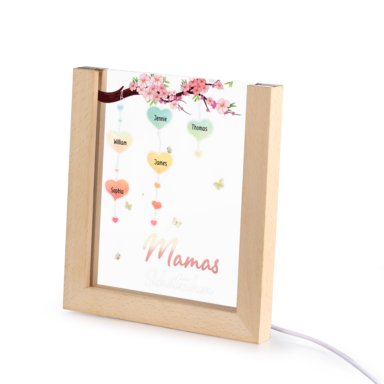 Personalisierte 5 Namen & Text Pfirsichblüte Familienbaum Acryl Rahmen Nachtlicht Geschenk für Großmutter/Mutter zum Muttertag