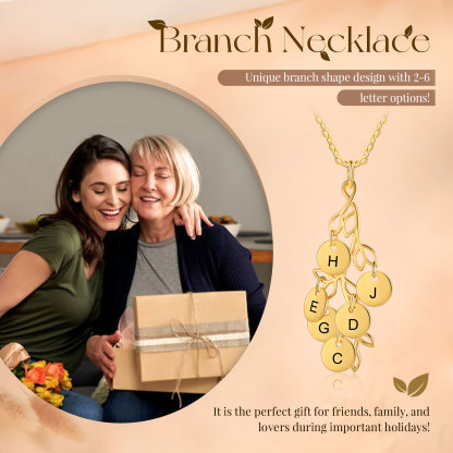 Personalisierte 6 Buchstaben Zweige mit runder Anhänger Golden Halskette