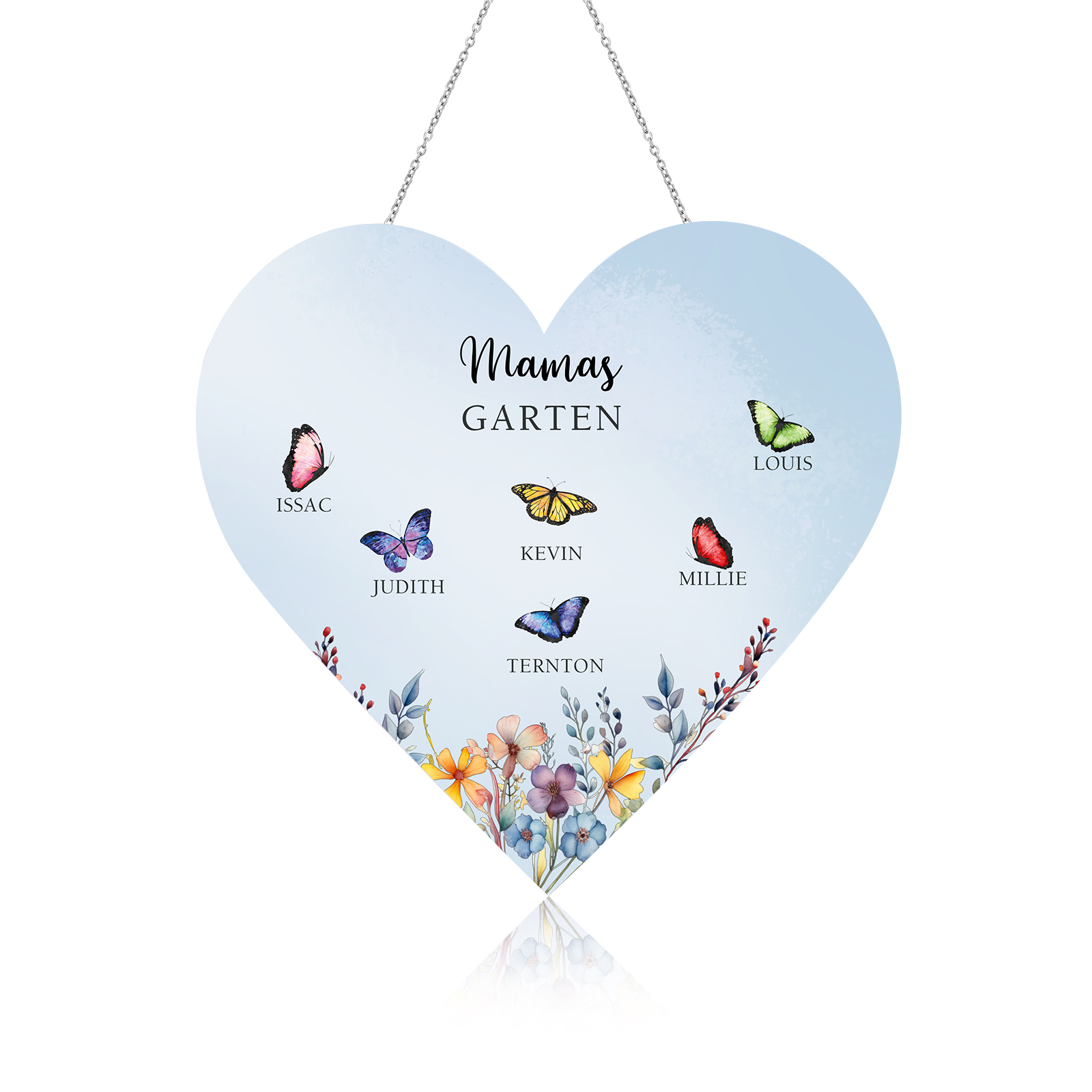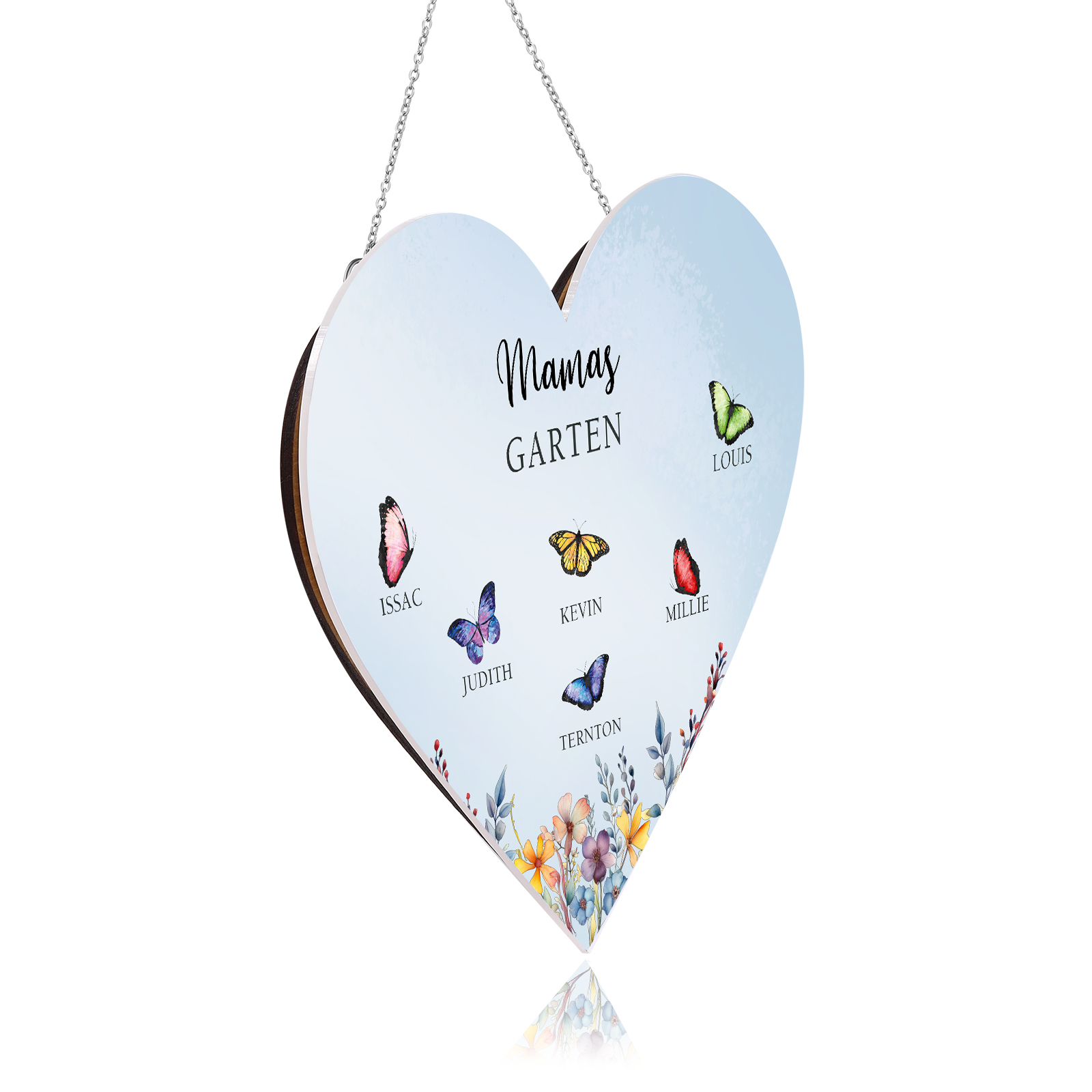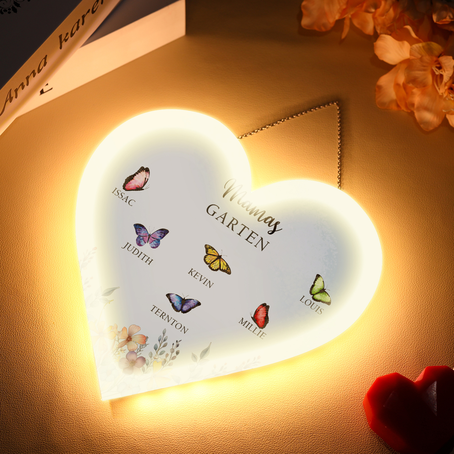 Personalisierte 6 Namen & 2 Texte Schmetterling Herz Ornament Licht Acryl Hängender Wandlampe Geschenk für Mutter