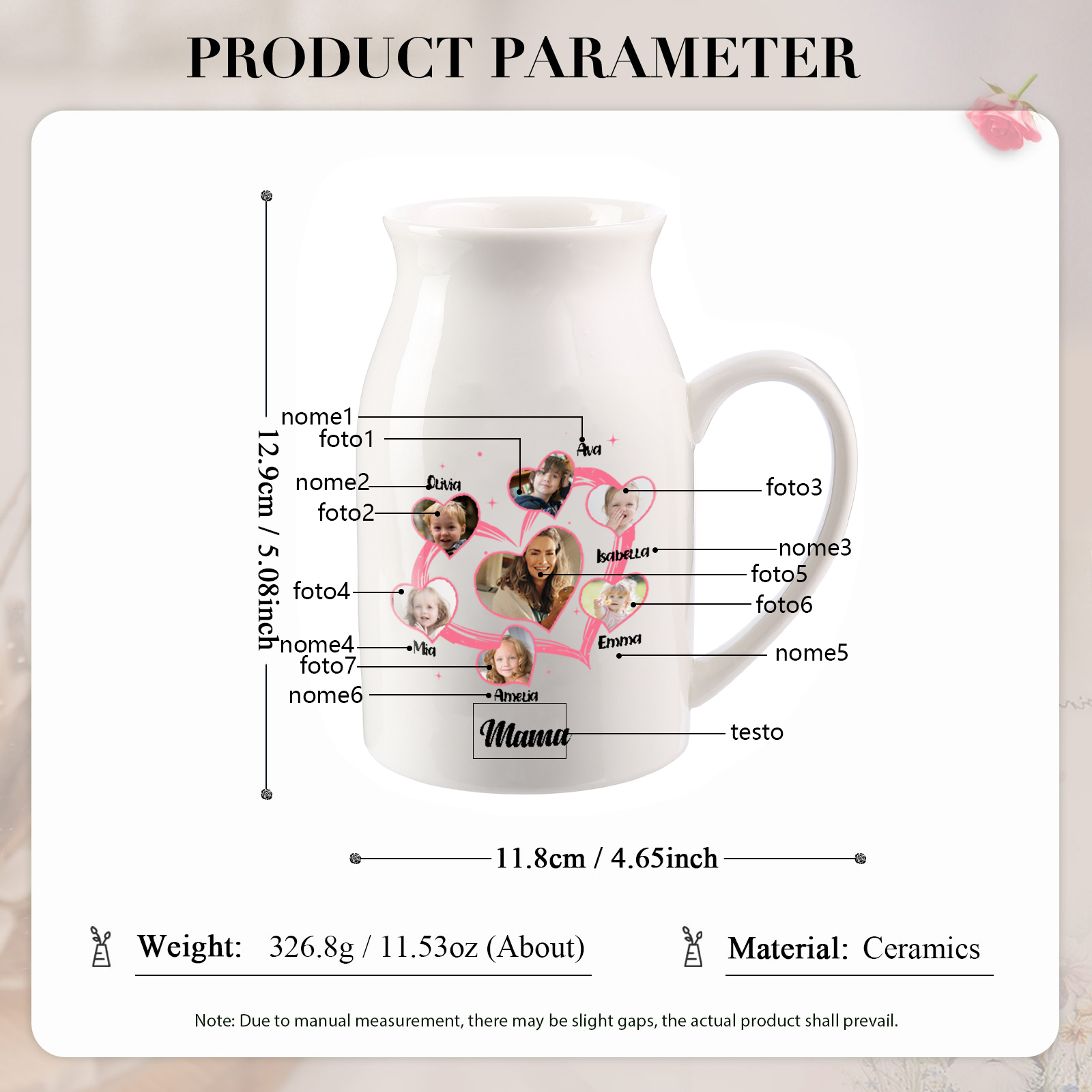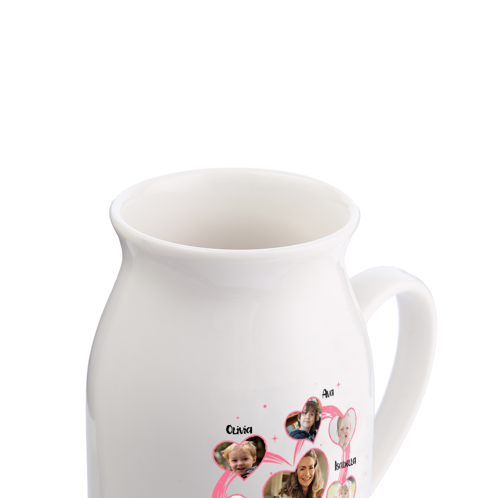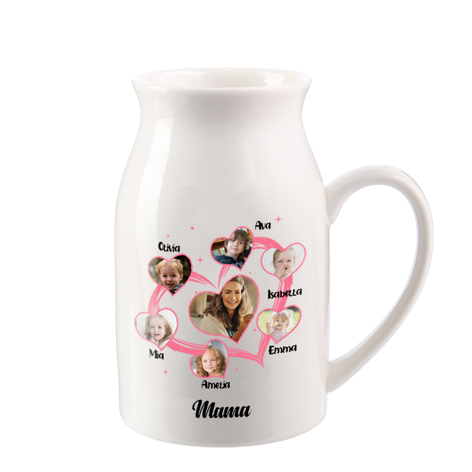Personalisierte 6 Namen & 7 Fotos & Text Herz Familie Vase