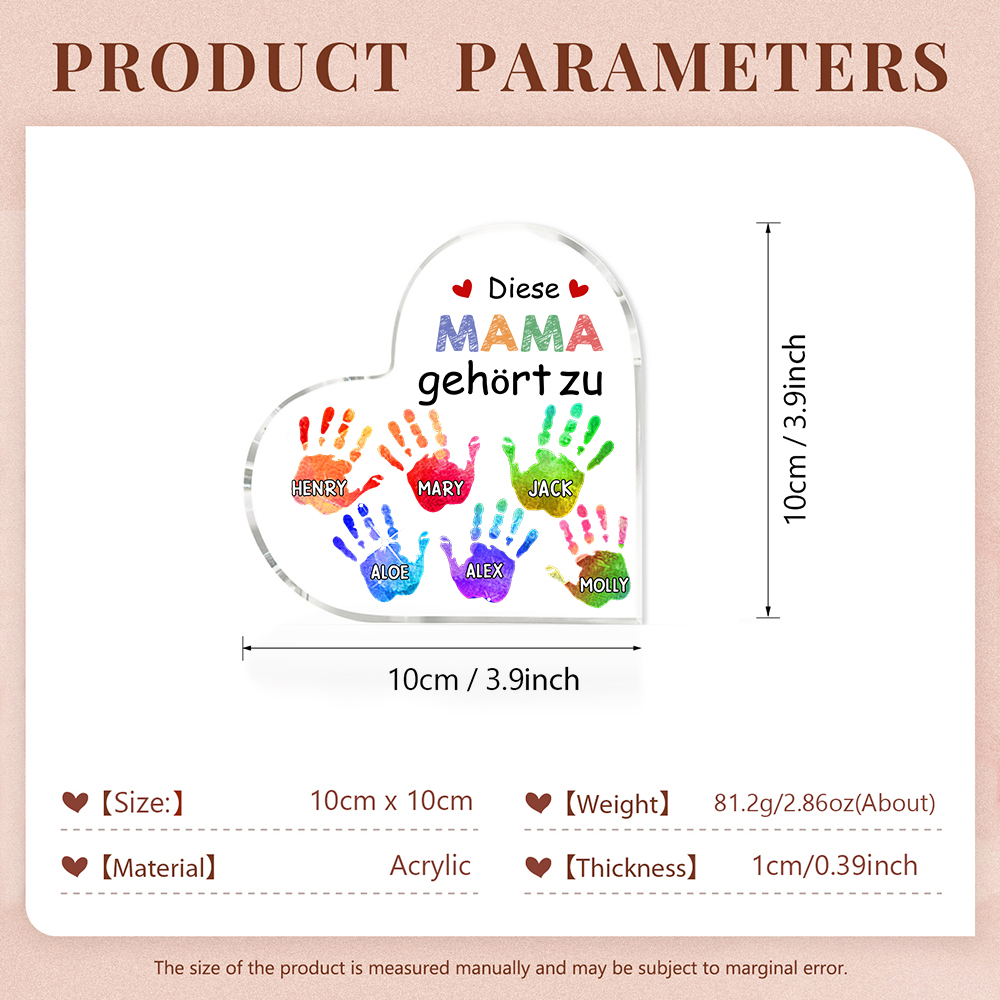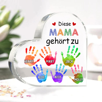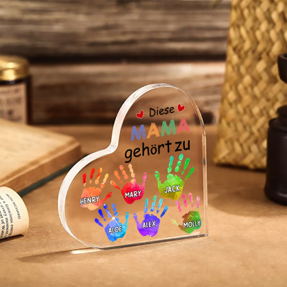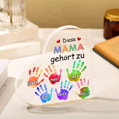 Personalisierte 6 Namen Acryl-Deko Diese Mama gehört zu Schreibtischdekoration für Mutter