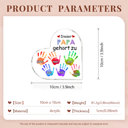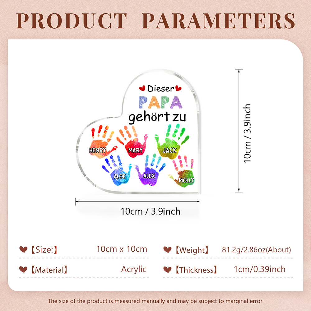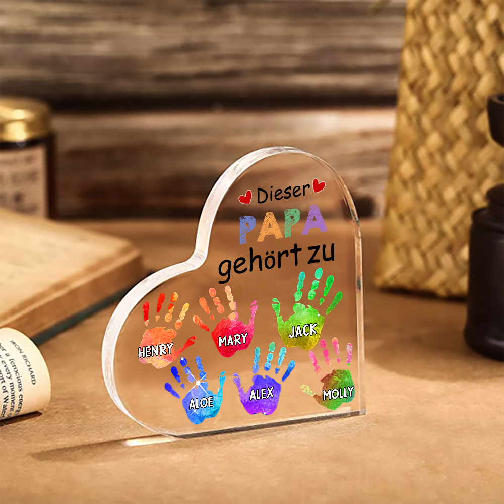 Personalisierte 6 Namen Acryl-Deko Dieser Papa gehört zu Schreibtischdekoration für Vater