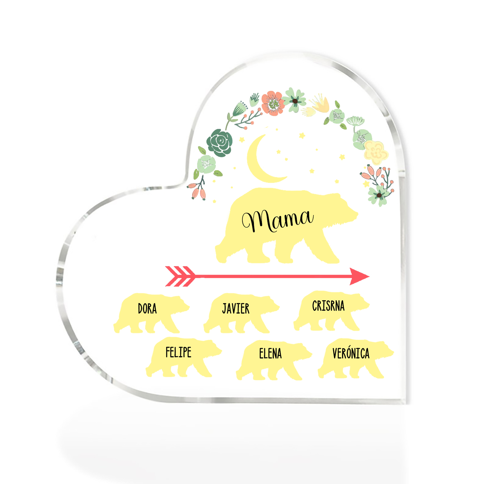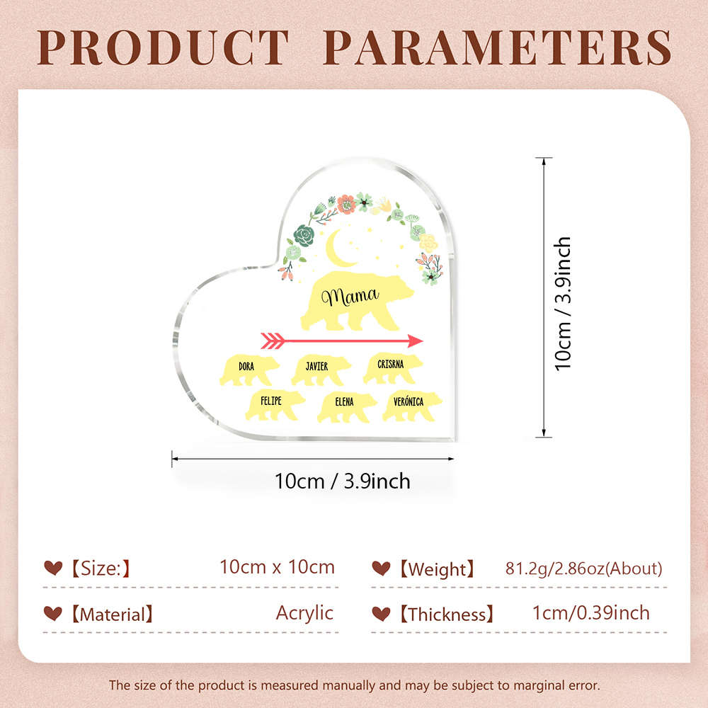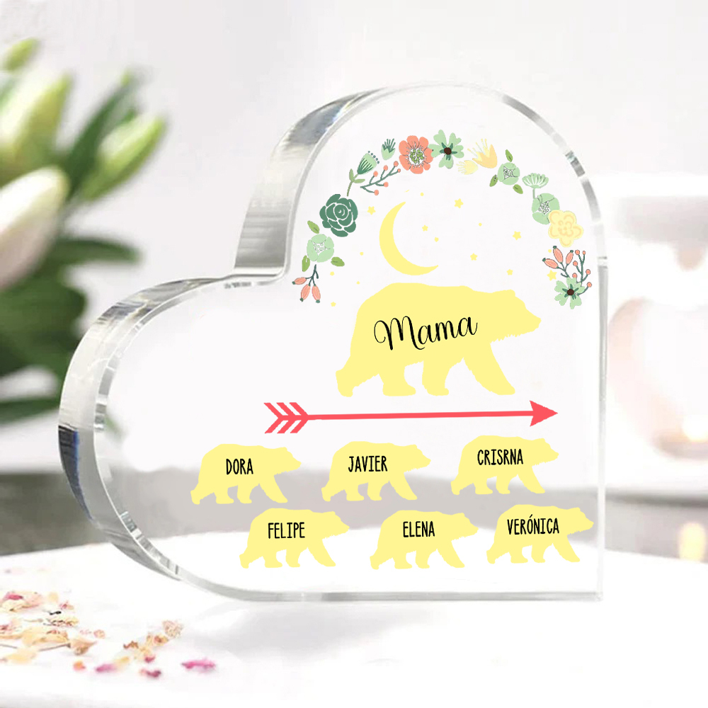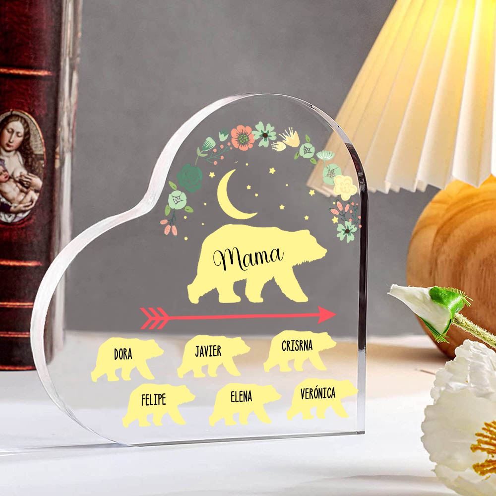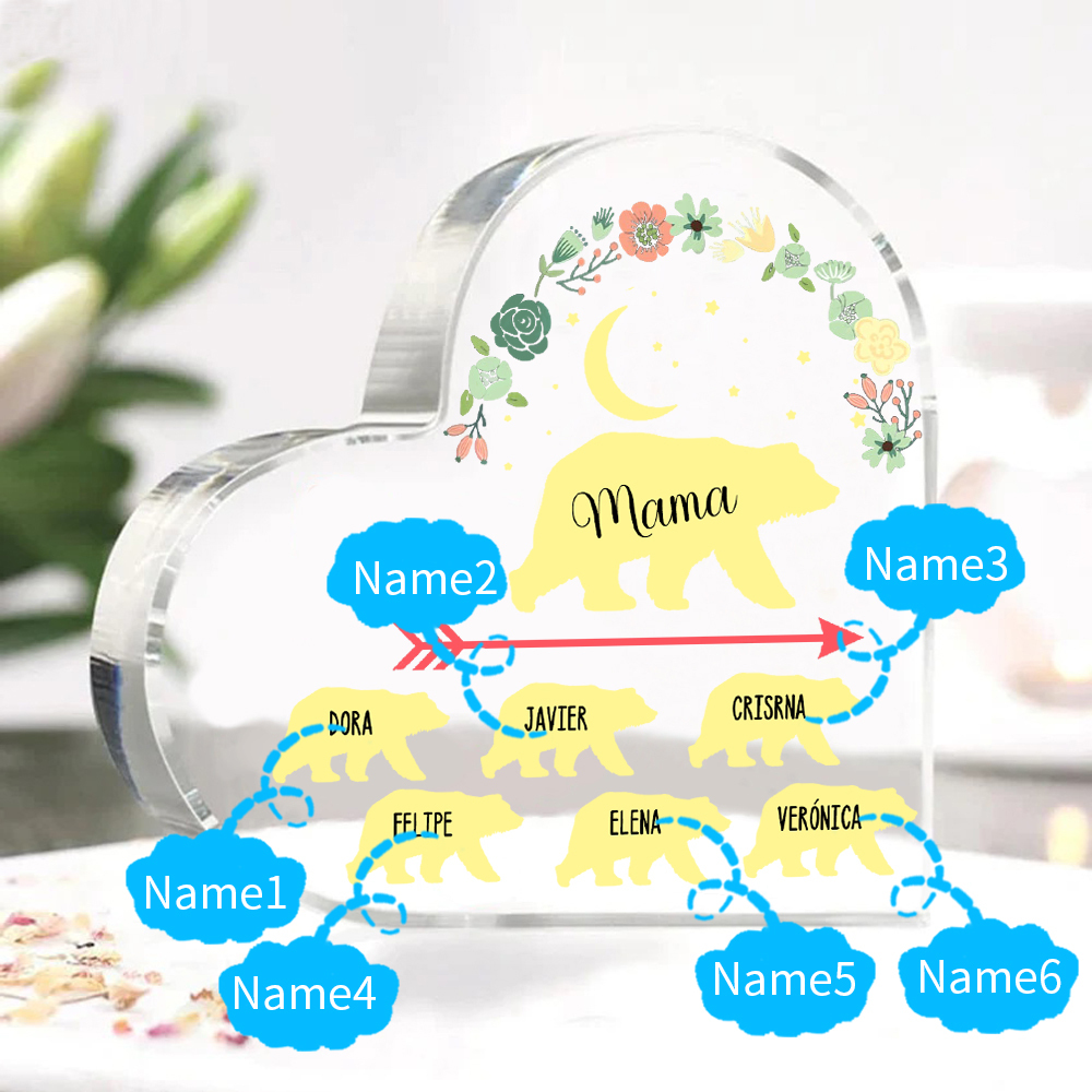 Personalisierte 6 Namen Herz Acryl-Deko Mama Bär Schreibtischdekoration für Mutter