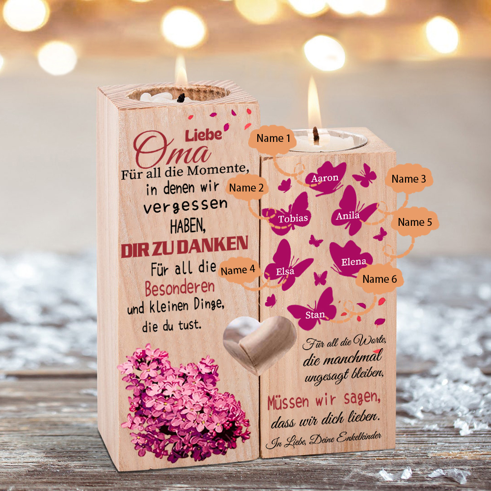 Personalisierte 6 Namen Schmetterling Kerzenhalter-Liebe Oma müssen wir sagen, dass wir dich lieben-Geschenk für Großmutter
