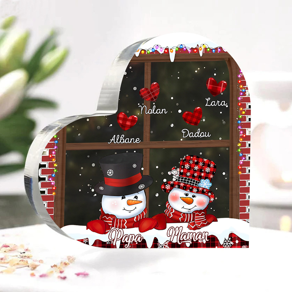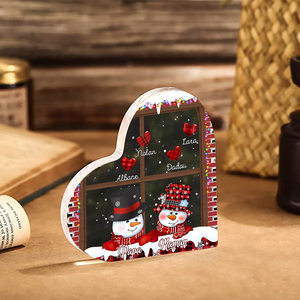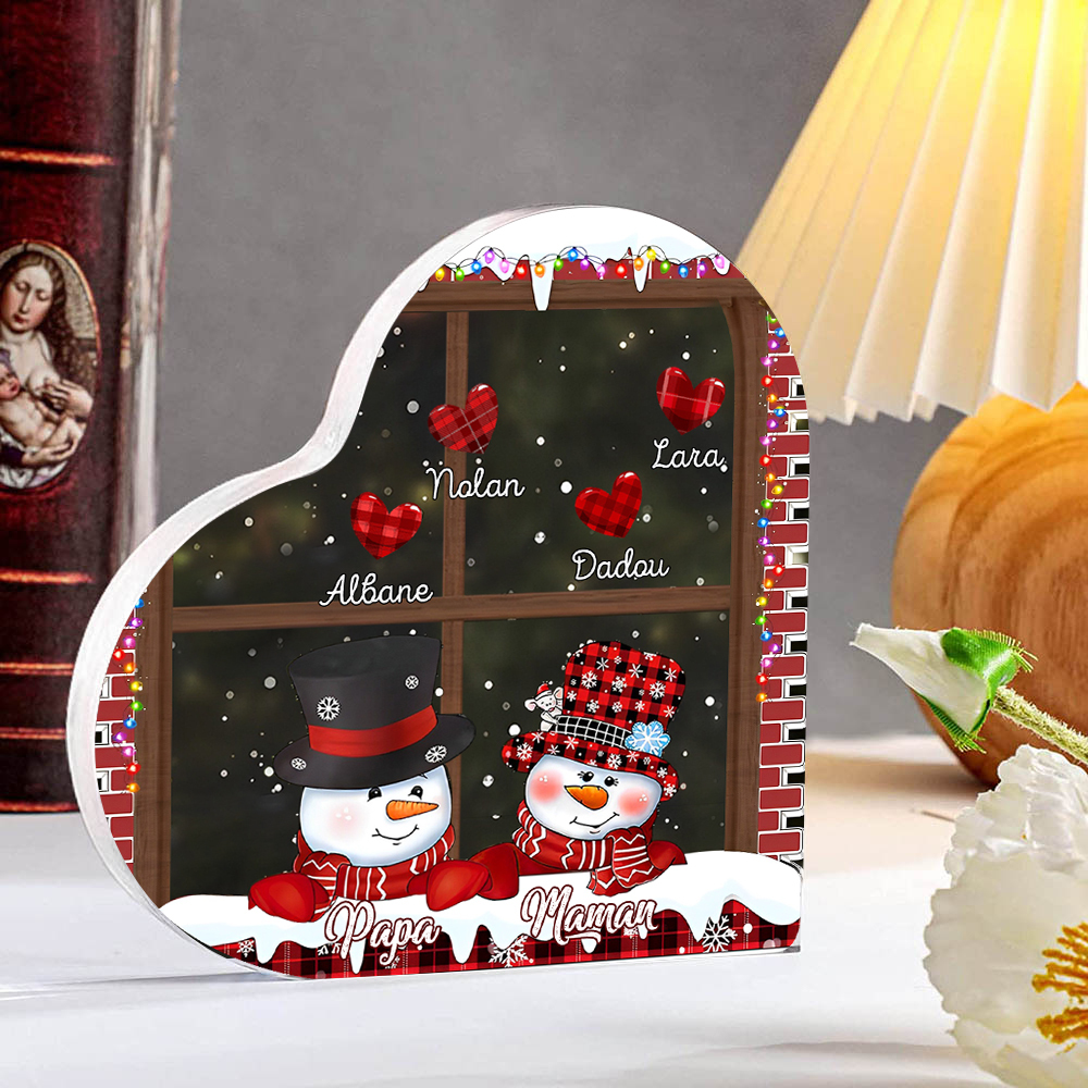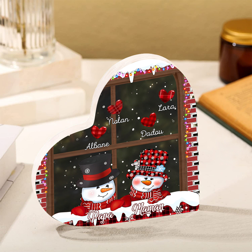 Personalisierte 6 Namen Schneemann Familie Weihnachten Acryl-Deko-Schreibtischdekoration