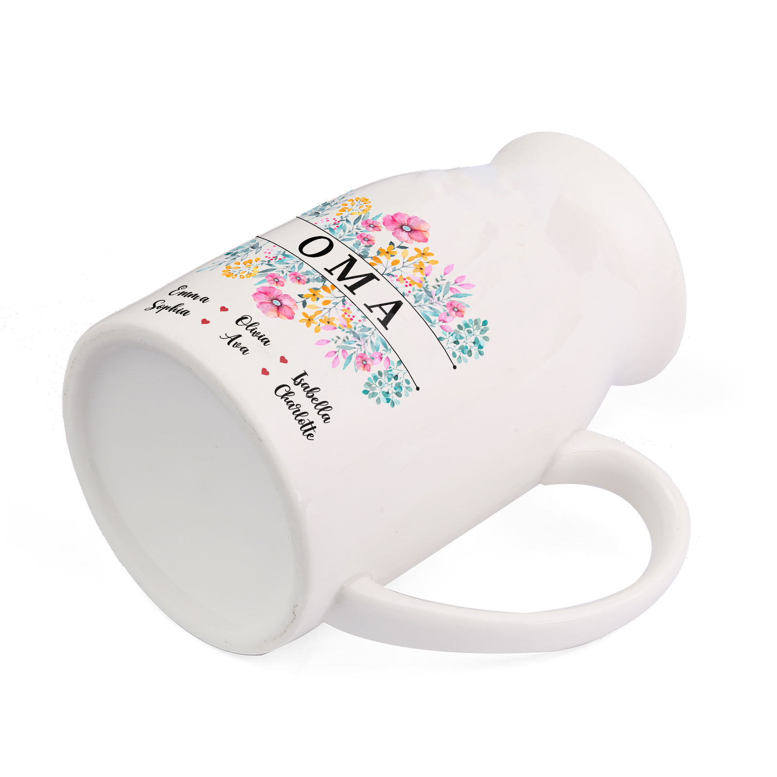 Personalisierte 6 Namen & Text Bunte Blumen Familie Vase