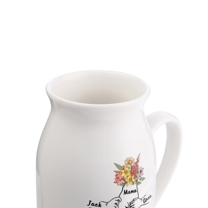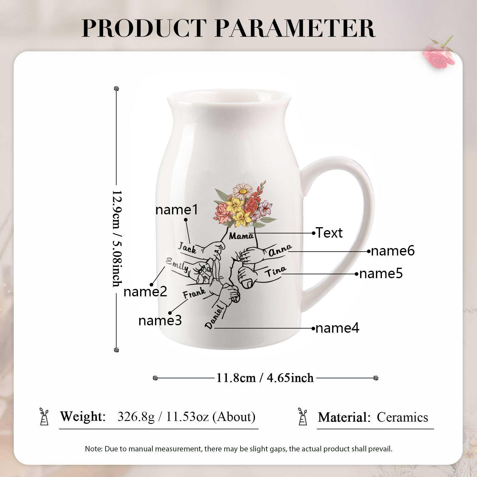Personalisierte 6 Namen & Text Bunte Blumen Hand in Hand Familie Vase