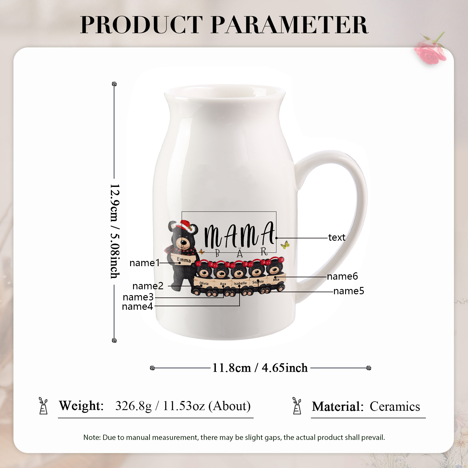 Personalisierte 6 Namen & Text Familie Schwarzbär Vase