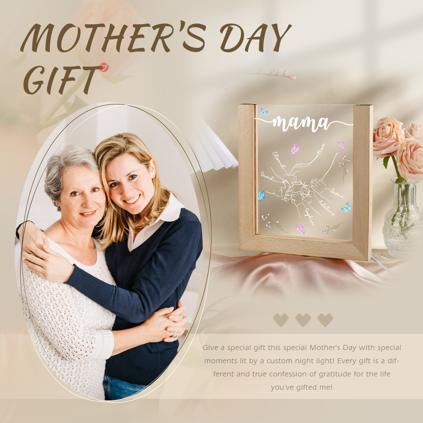 Personalisierte 6 Namen & Text Hand in Hand Familie Acryl Rahmen Nachtlicht Geschenk für Großmutter/Mutter zum Muttertag