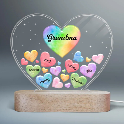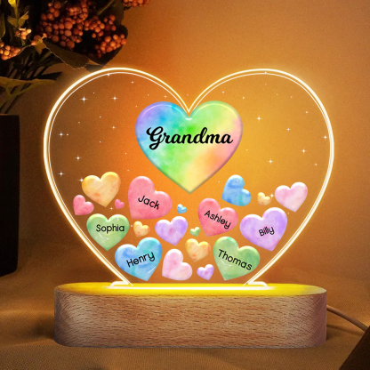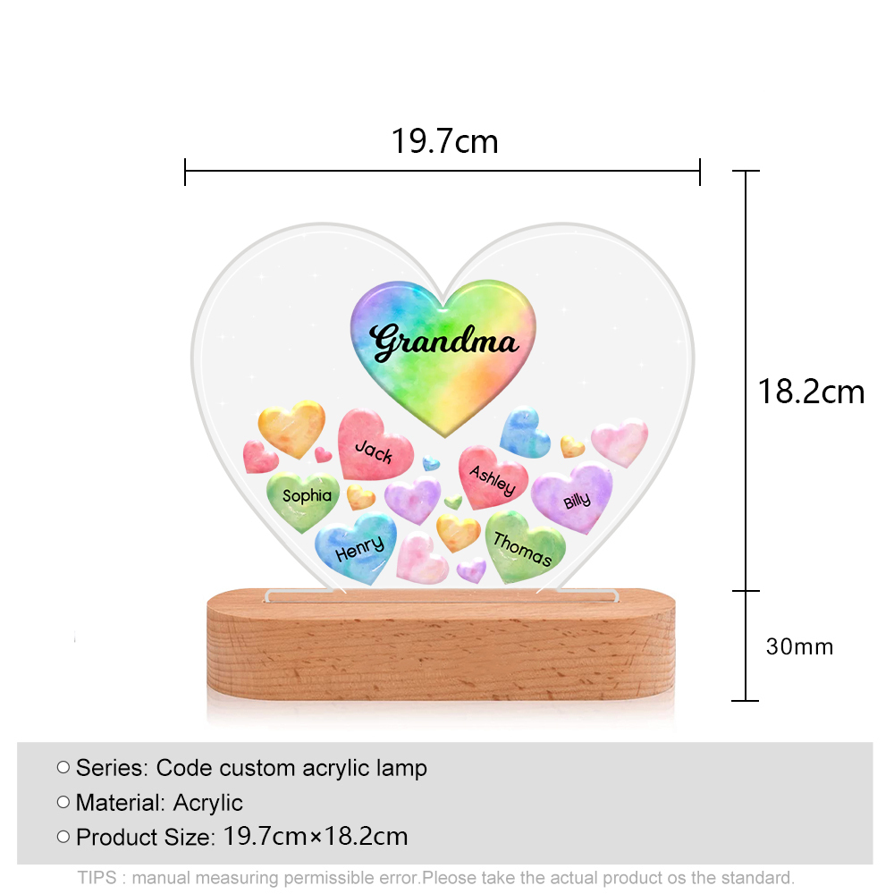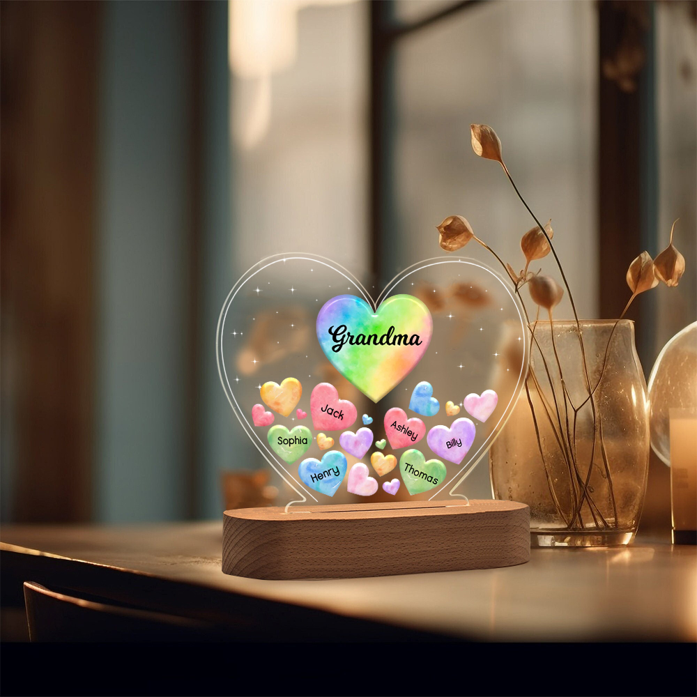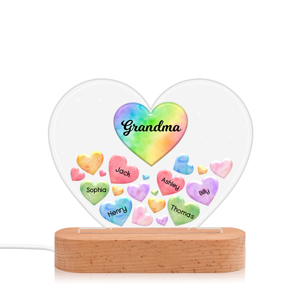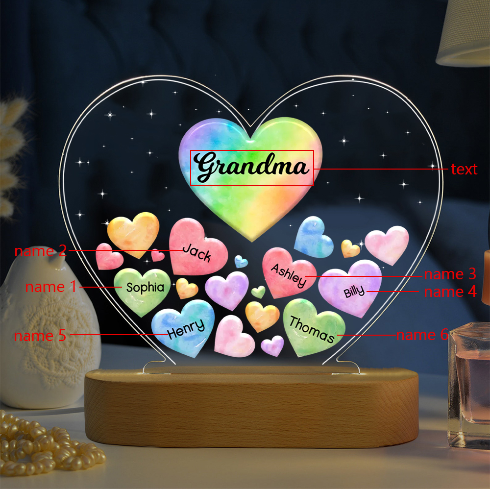 Personalisierte 6 Namen & Text Herz Familie Nachtlicht Geschenk für Großmutter/Mutter zum Muttertag