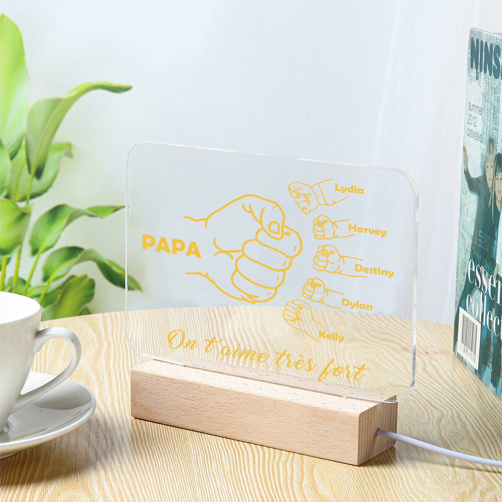 Personalisierte 6 Namen & Text PAPA Faust Nachtlicht Geschenk für Vater