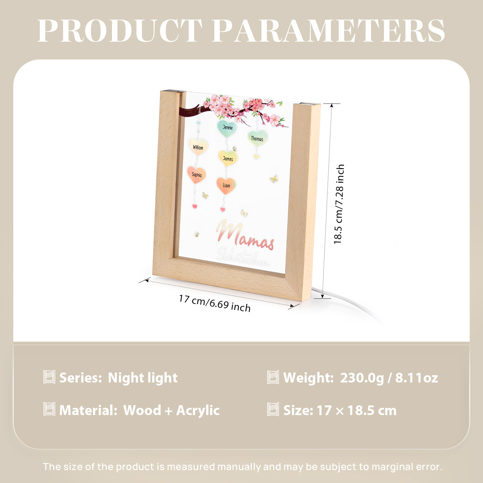 Personalisierte 6 Namen & Text Pfirsichblüte Familienbaum Acryl Rahmen Nachtlicht Geschenk für Großmutter/Mutter zum Muttertag