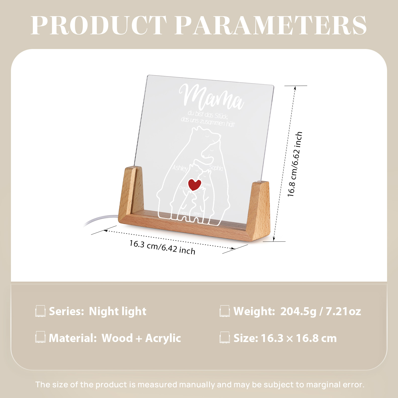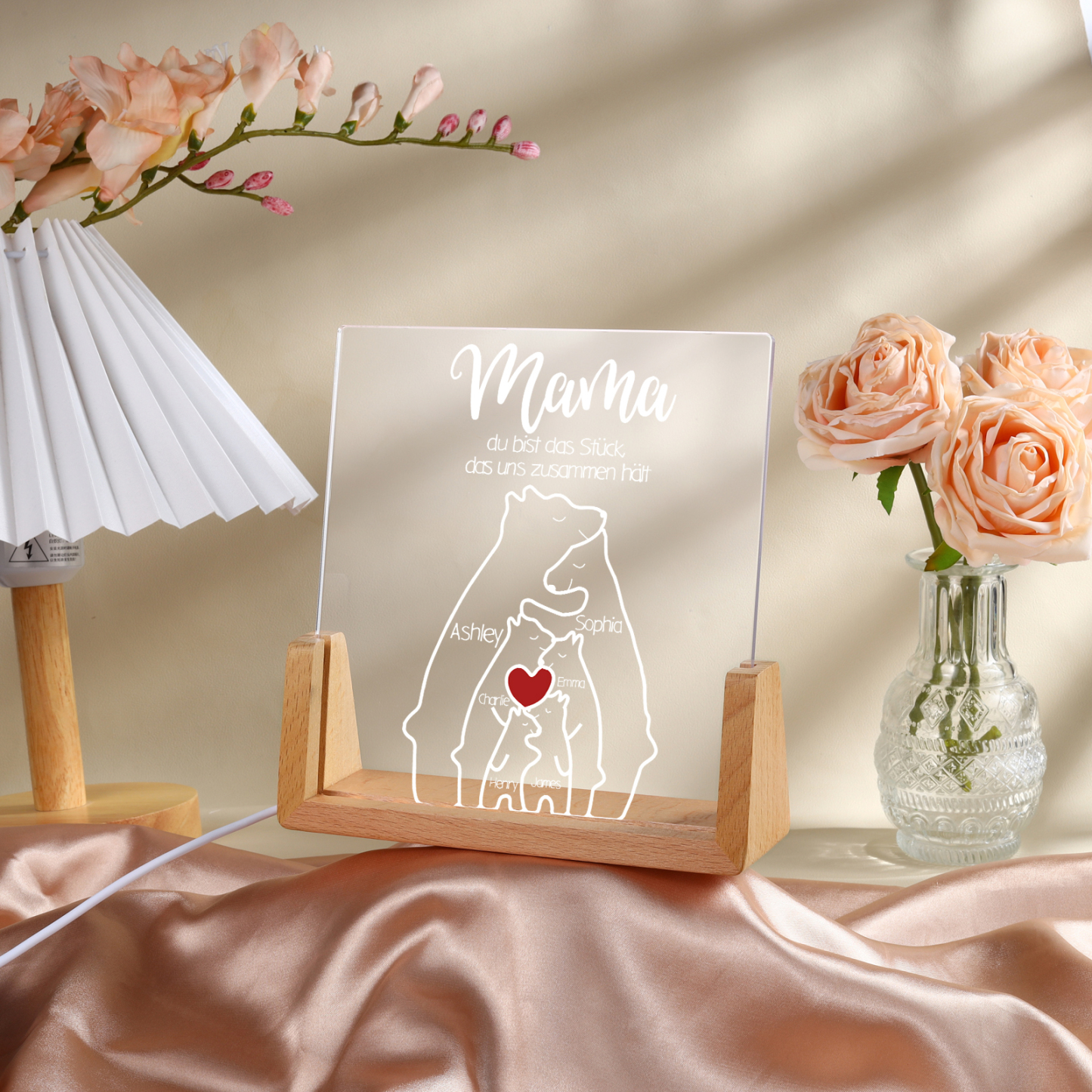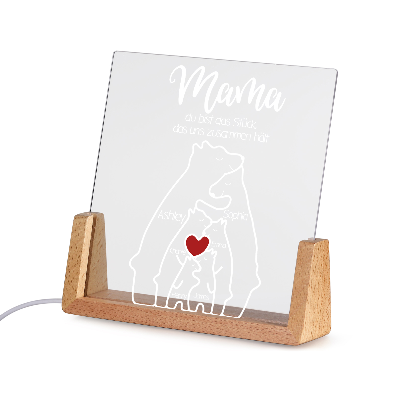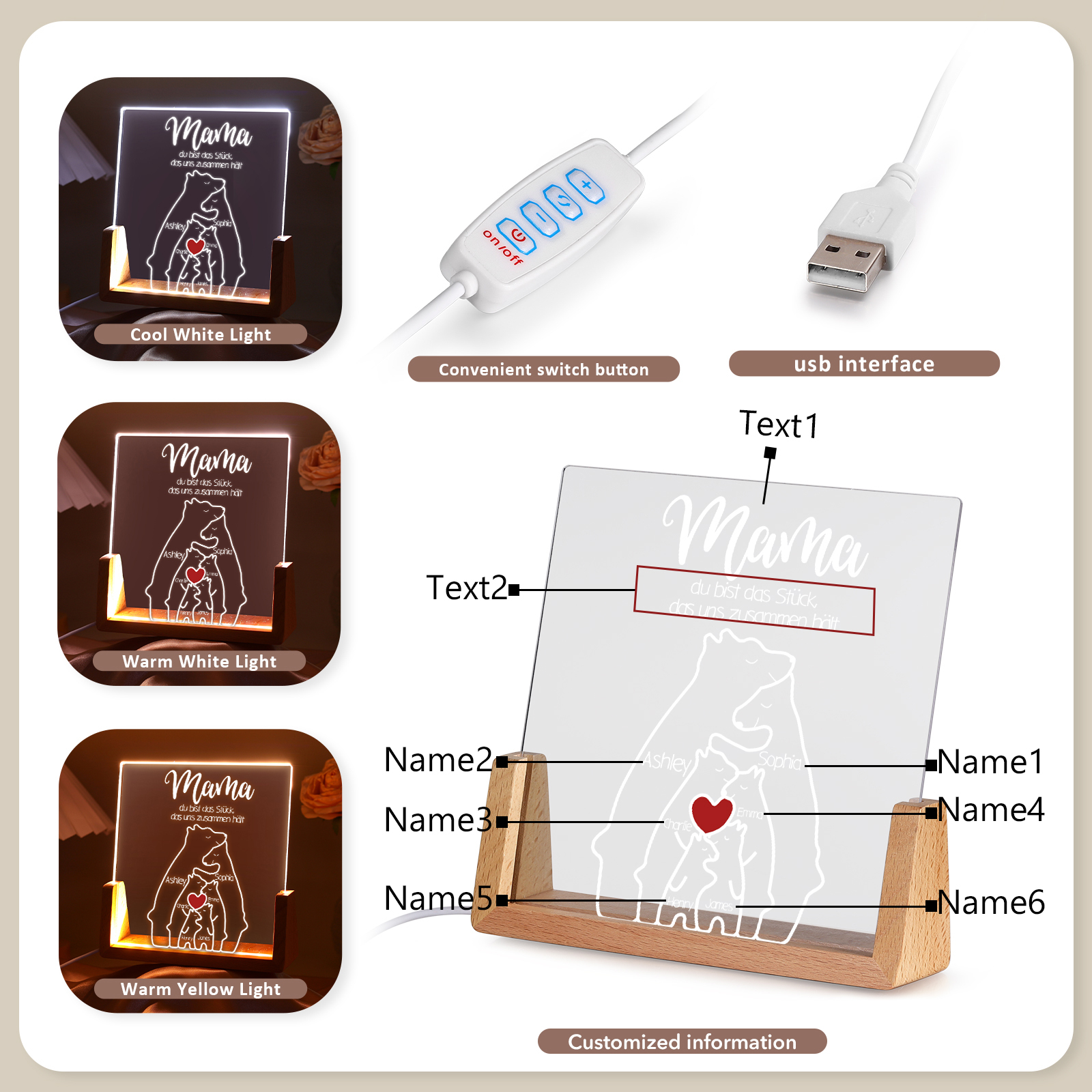 Personalisierte 6 Namen & Texte Bär Familie Nachtlicht Geschenk für Großmutter/Mutter zum Muttertag