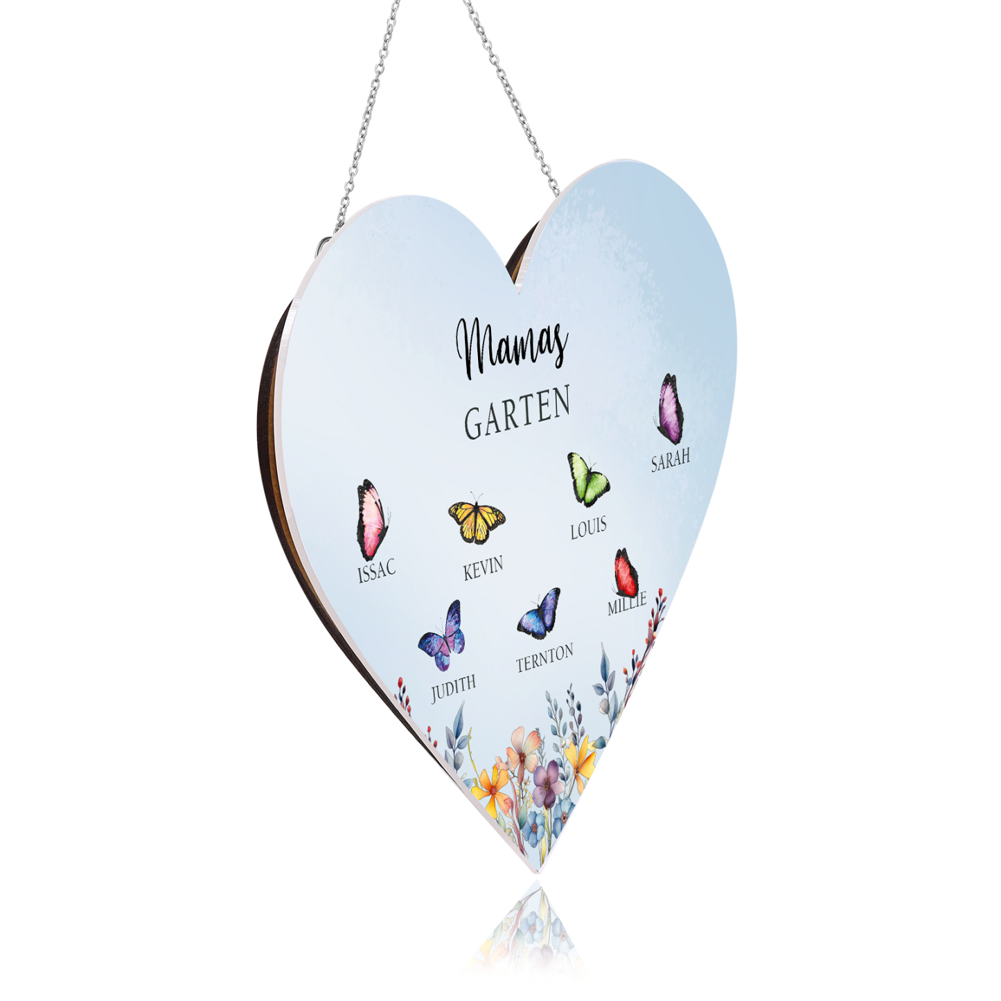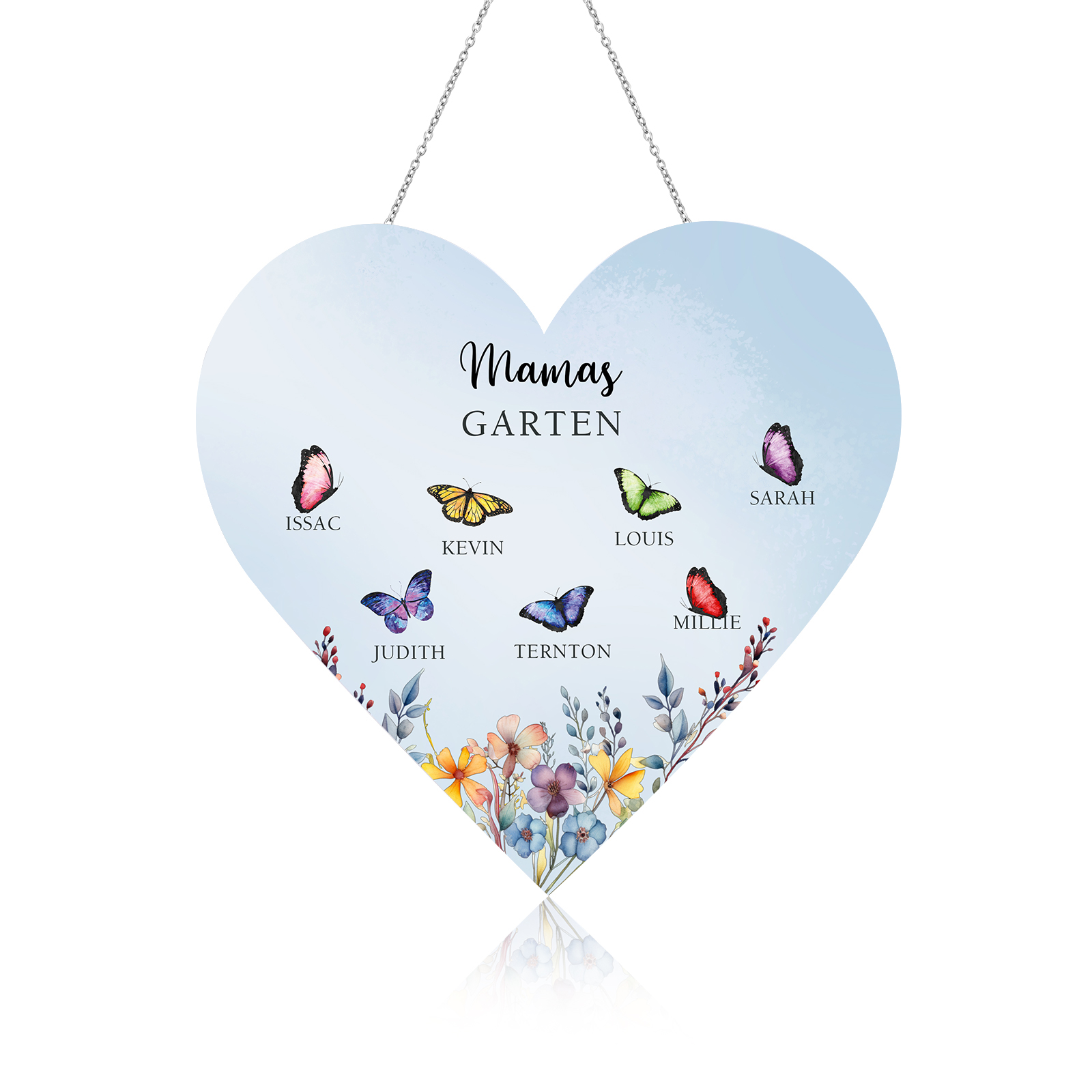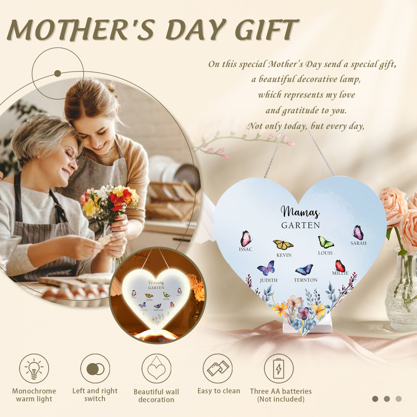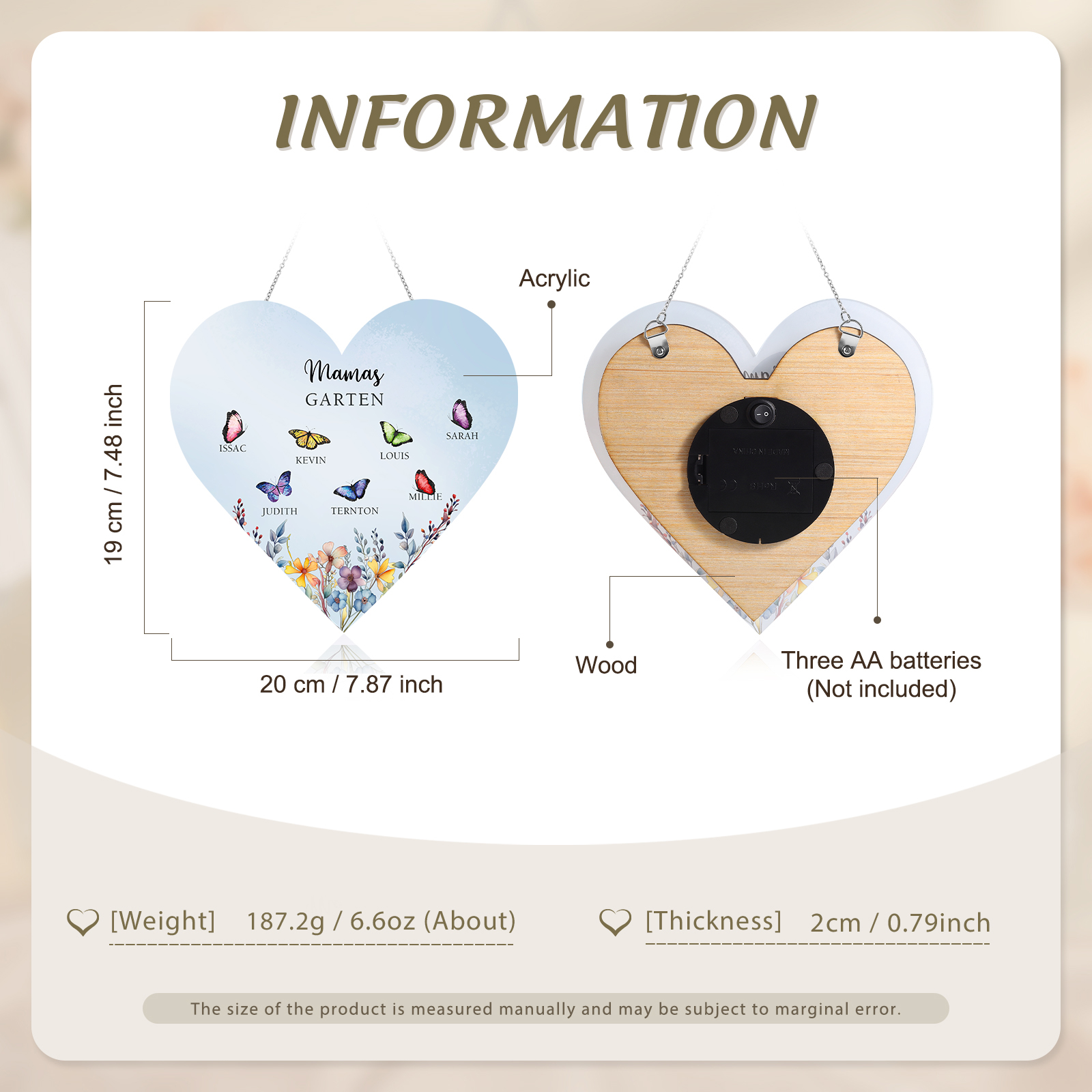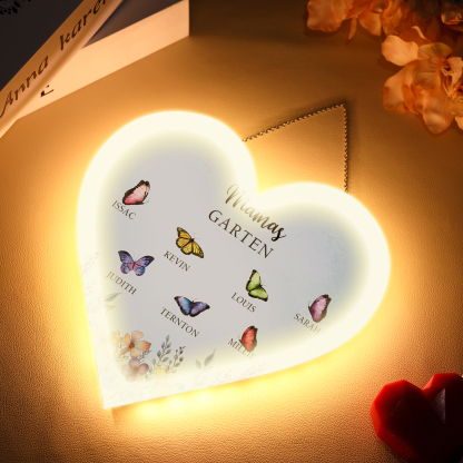 Personalisierte 7 Namen & 2 Texte Schmetterling Herz Ornament Licht Acryl Hängender Wandlampe Geschenk für Mutter