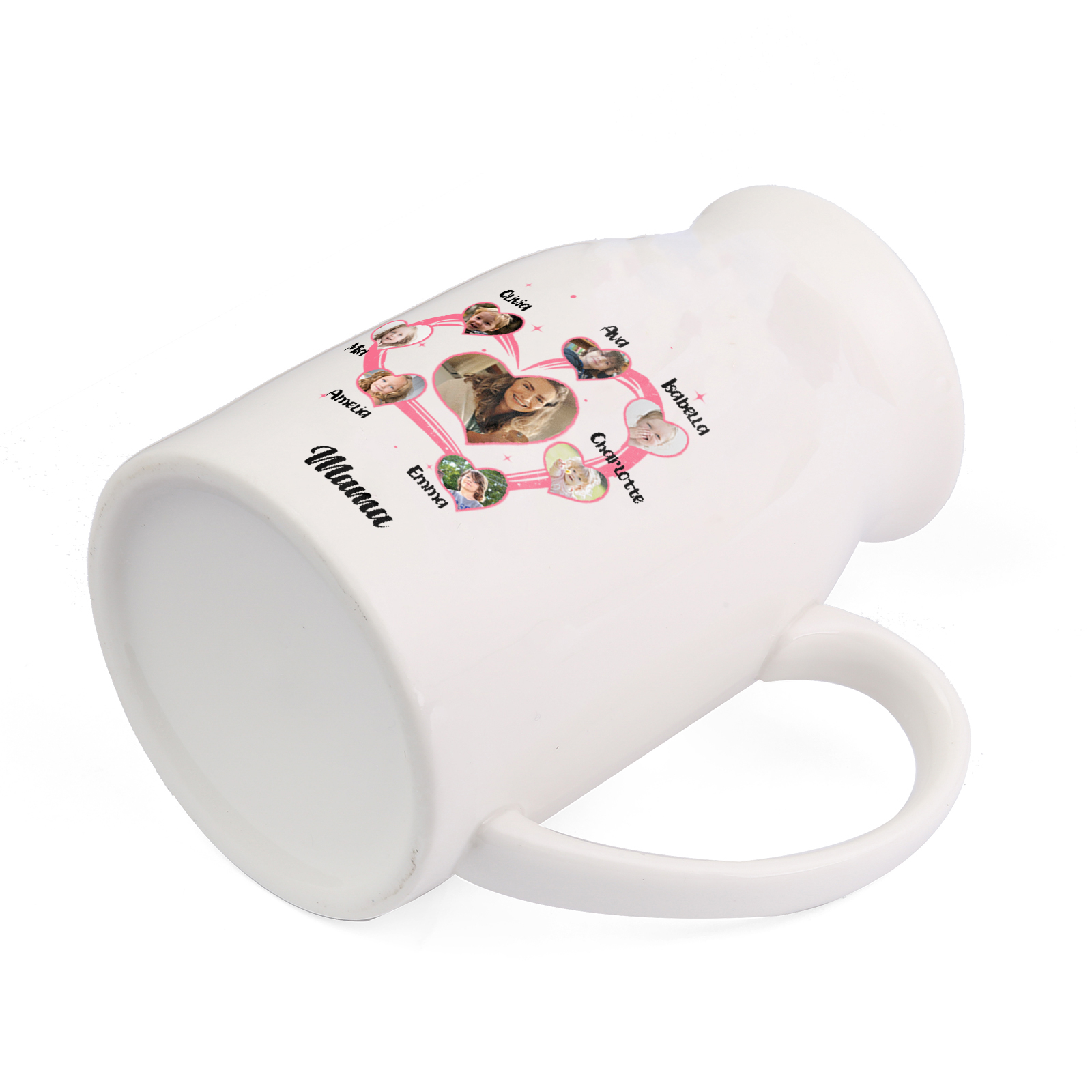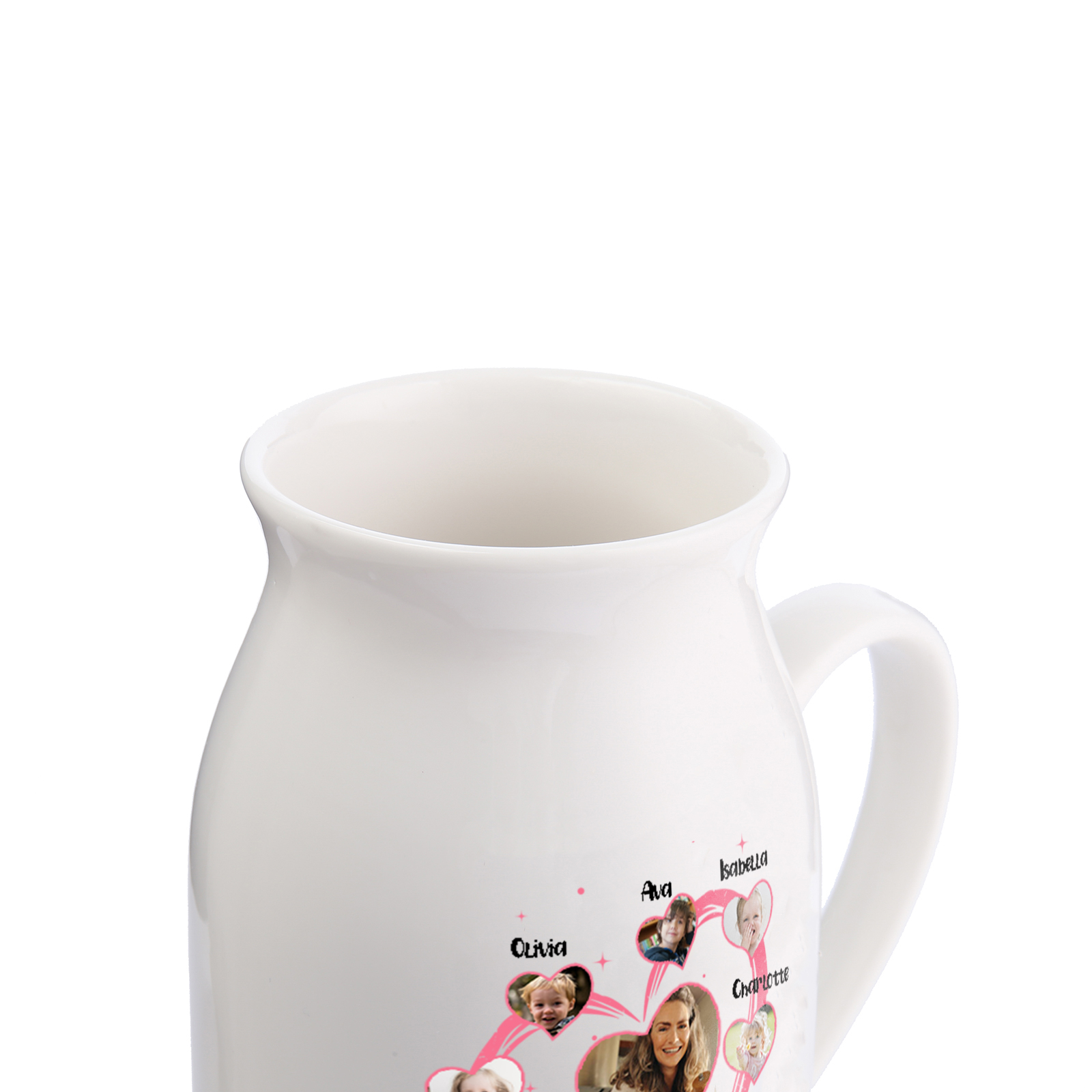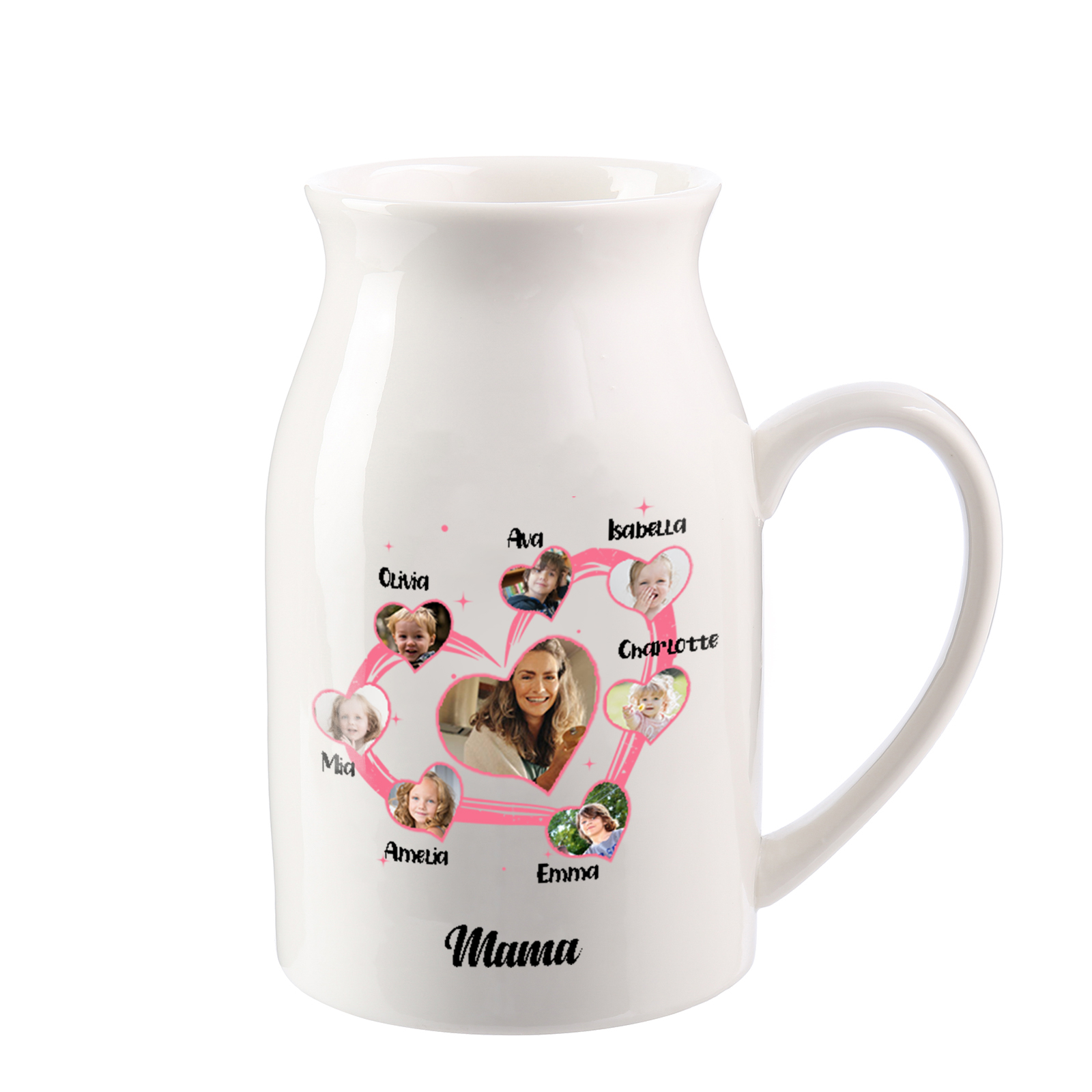 Personalisierte 7 Namen & 8 Fotos & Text Herz Familie Vase