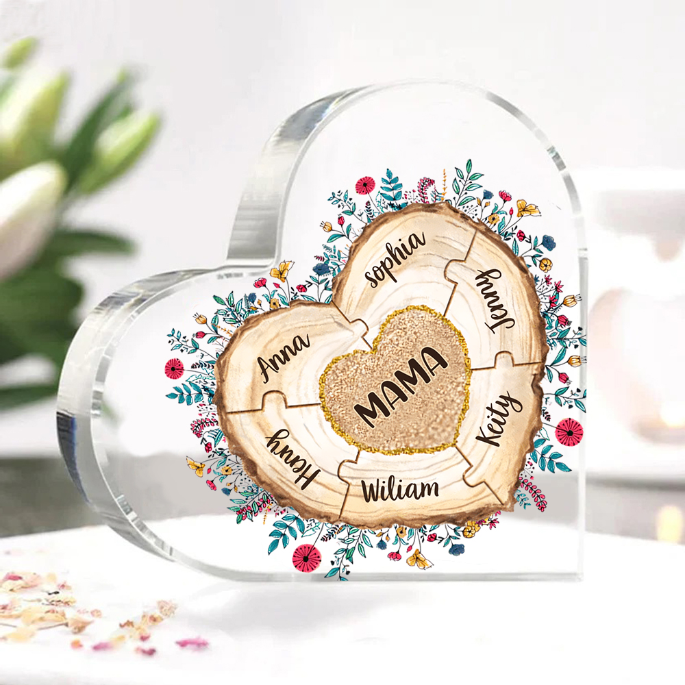 Personalisierte 7 Namen Herz Puzzle Familie Acryl-Deko Schreibtischdekoration für Mutter
