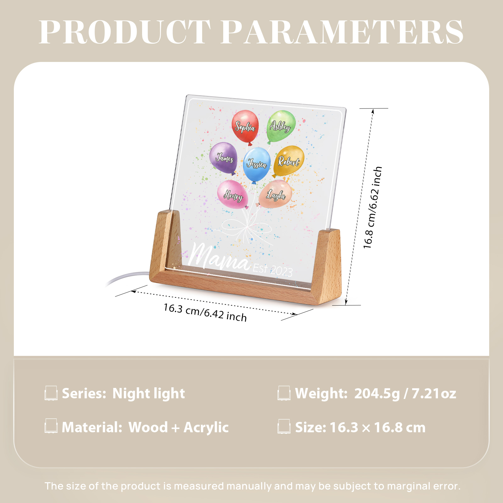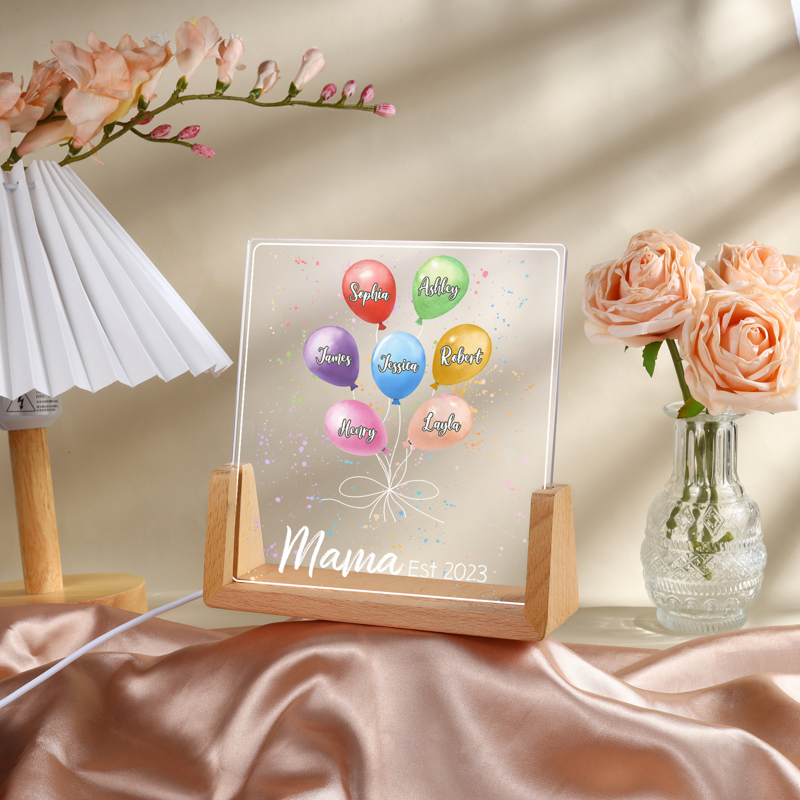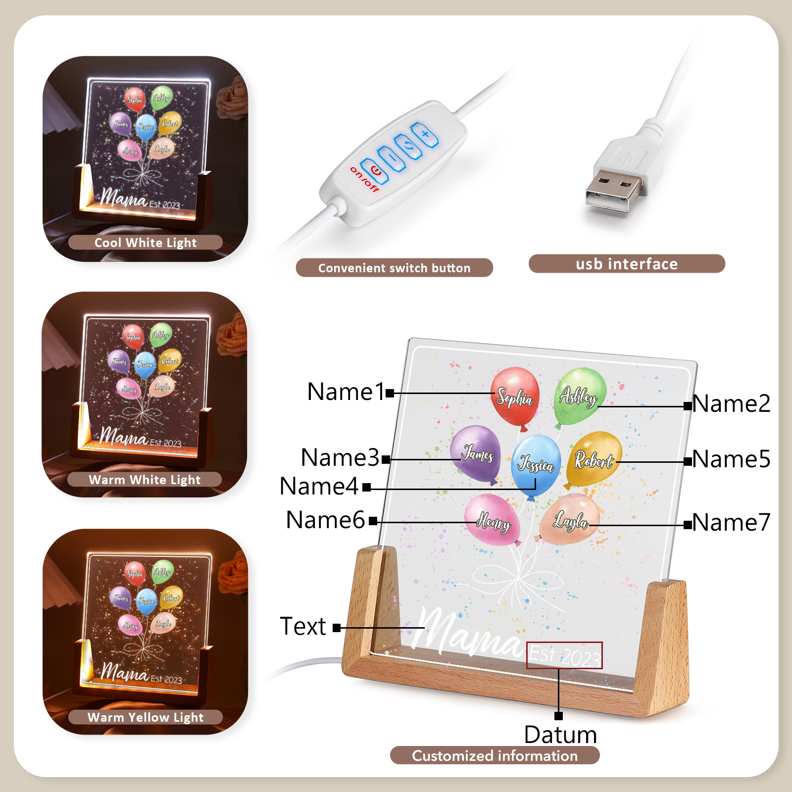 Personalisierte 7 Namen & Text & Datum Ballon Nachtlicht Geschenk für Großmutter/Mutter zum Muttertag