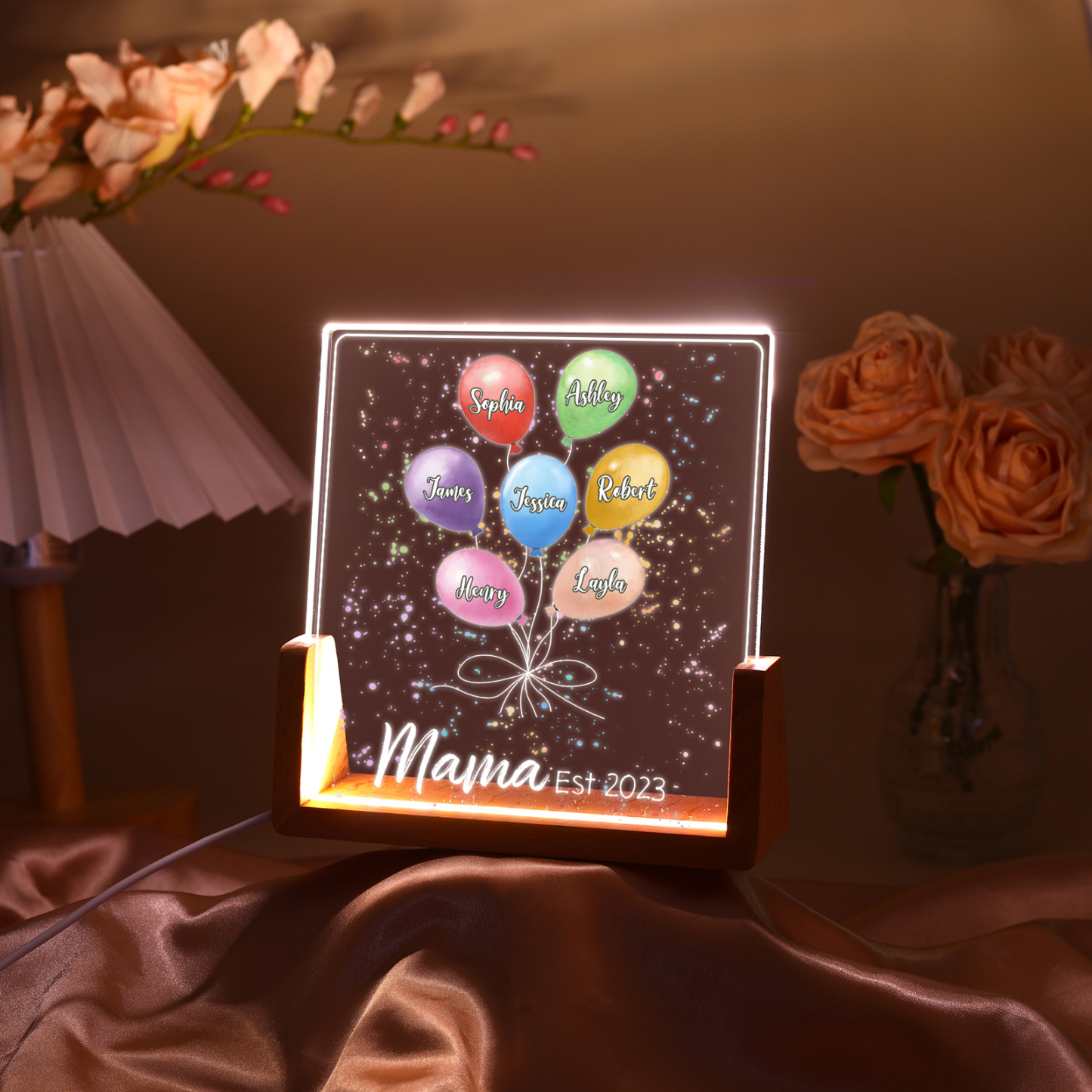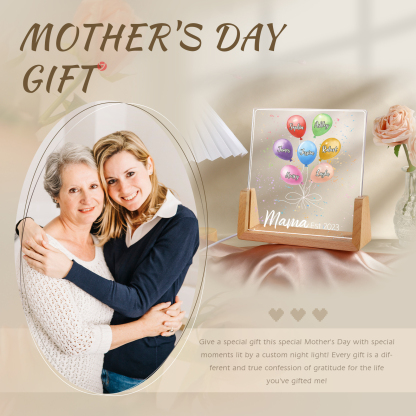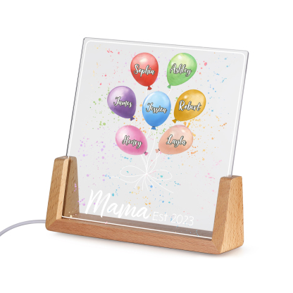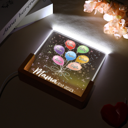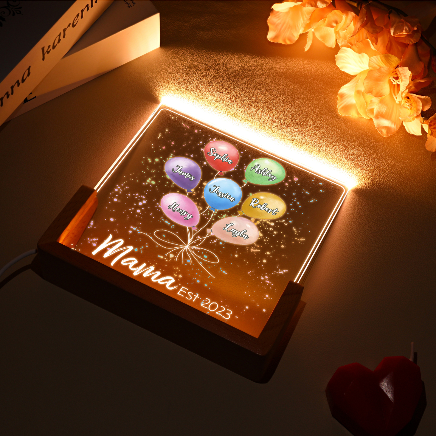 Personalisierte 7 Namen & Text & Datum Ballon Nachtlicht Geschenk für Großmutter/Mutter zum Muttertag