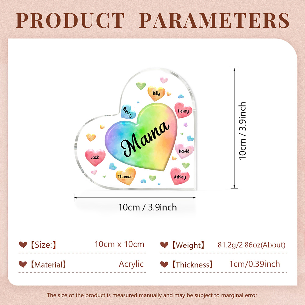 Personalisierte 7 Namen & Text Familie Herz Acryl-Deko Schreibtischdekoration für Mutter