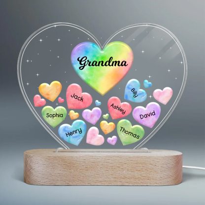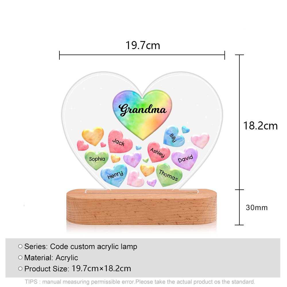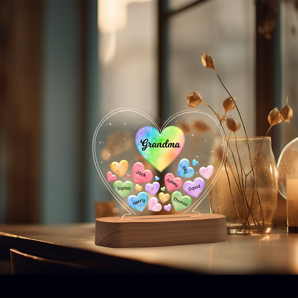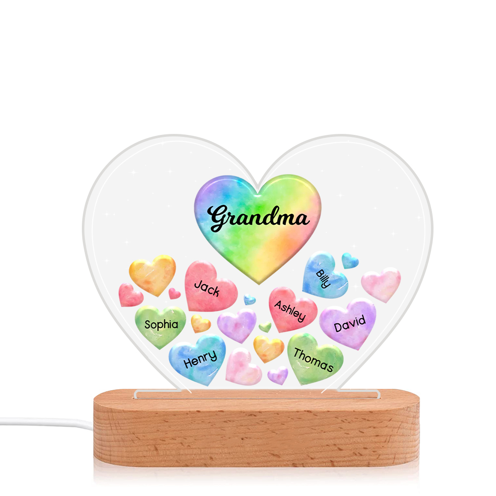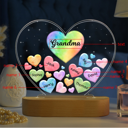 Personalisierte 7 Namen & Text Herz Familie Nachtlicht Geschenk für Großmutter/Mutter zum Muttertag