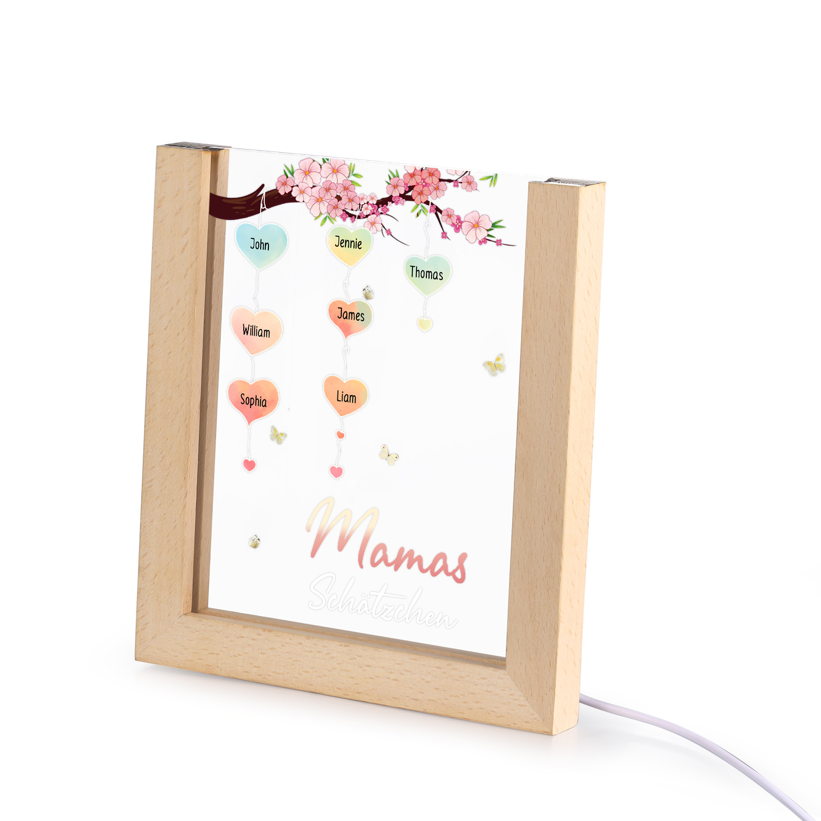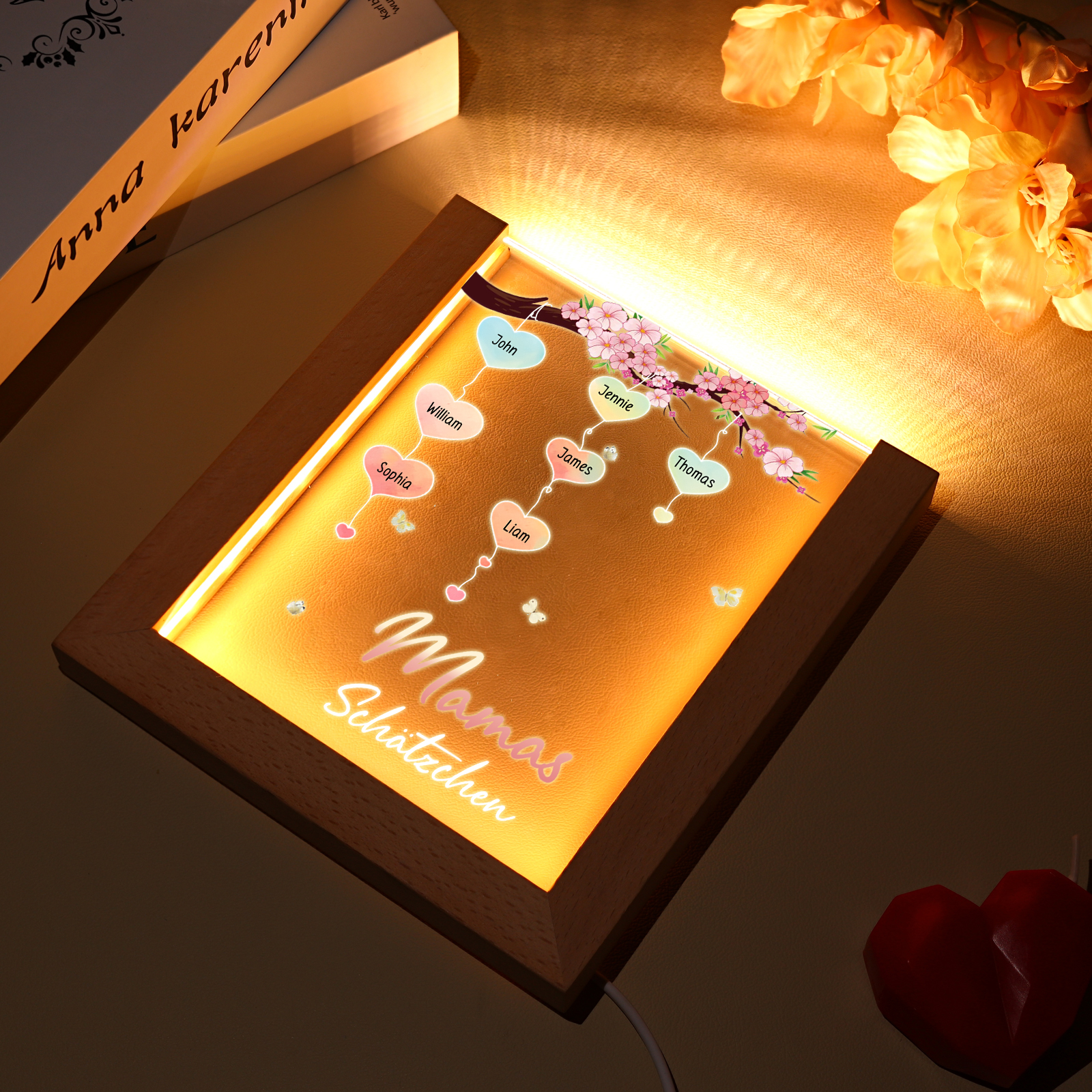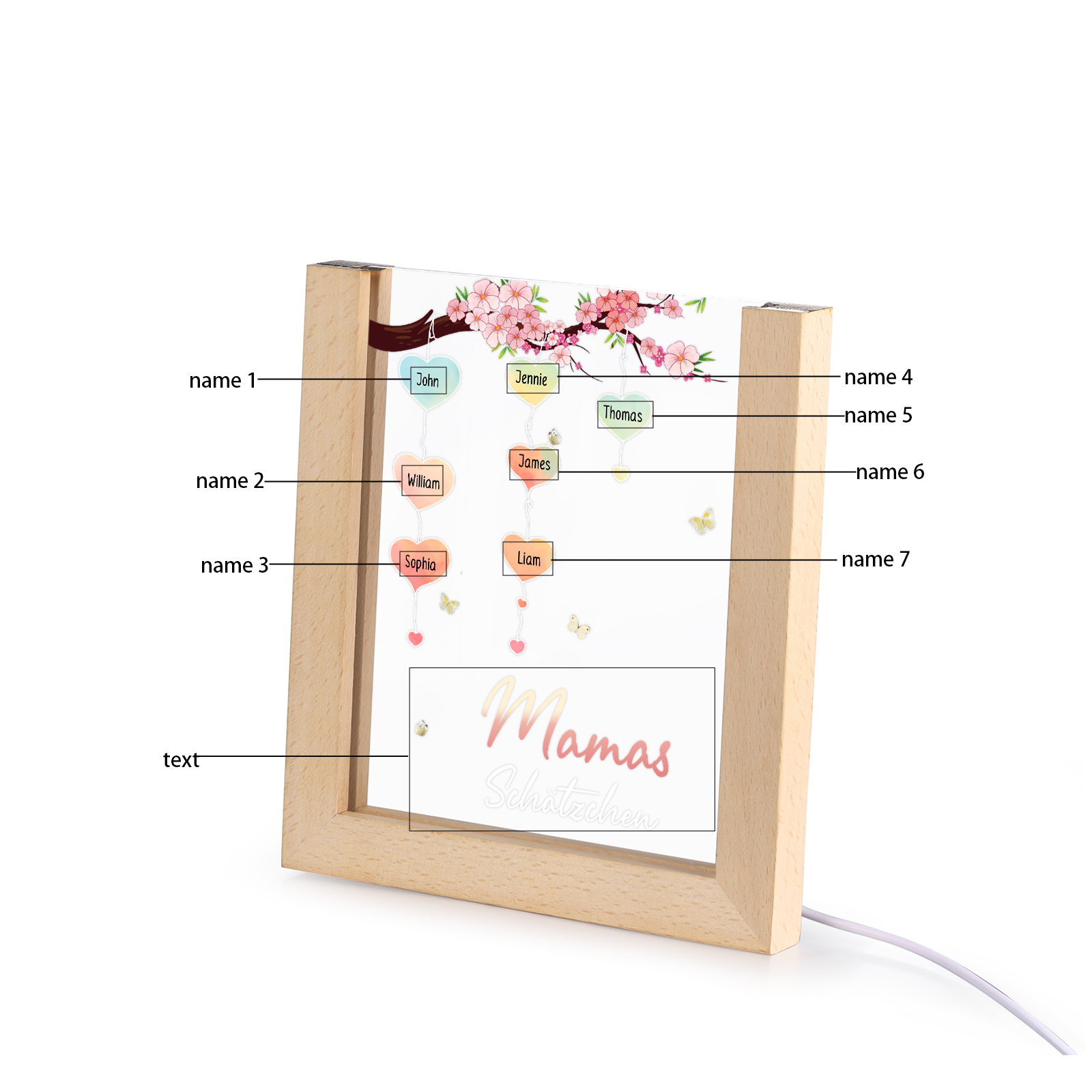 Personalisierte 7 Namen & Text Pfirsichblüte Familienbaum Acryl Rahmen Nachtlicht Geschenk für Großmutter/Mutter zum Muttertag