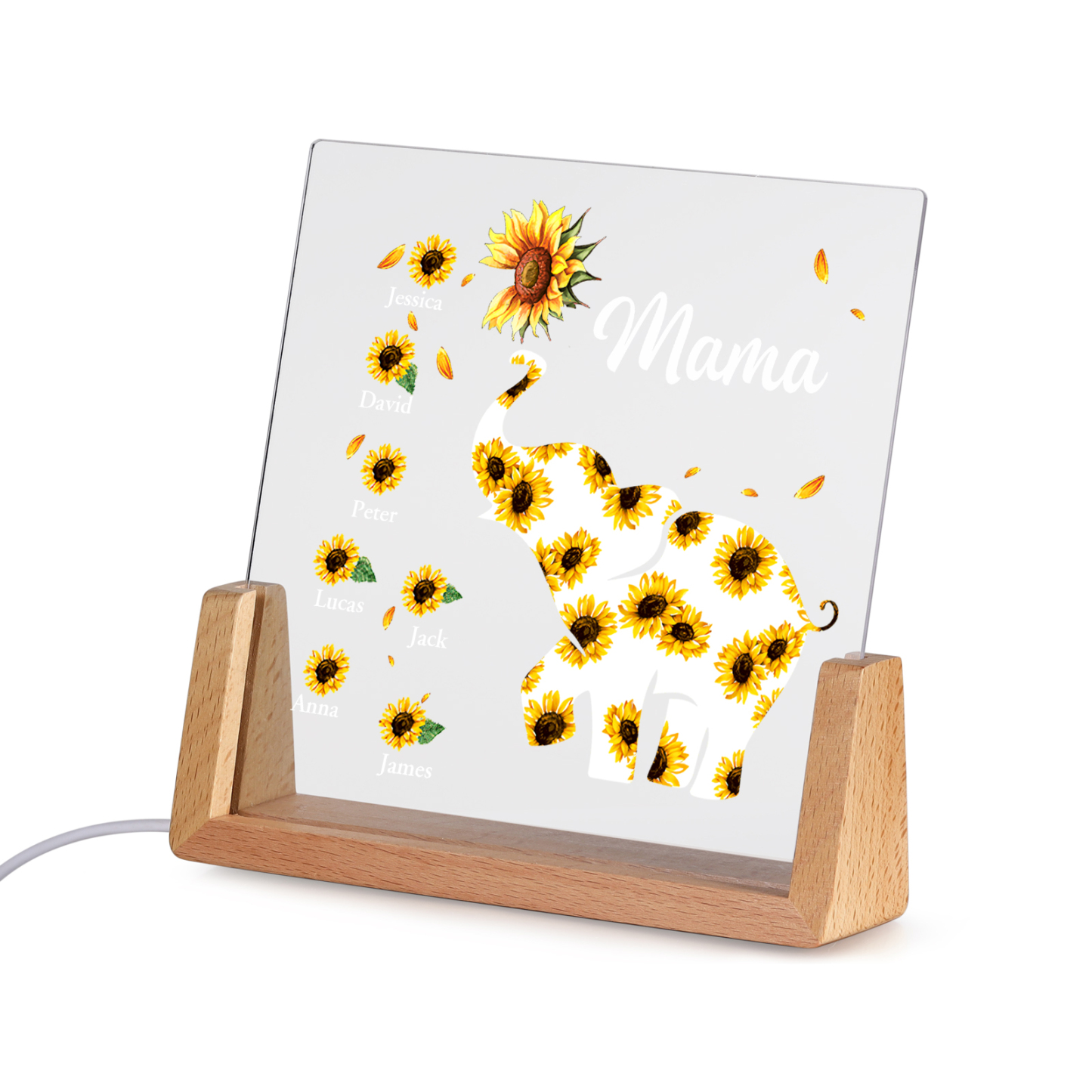 Personalisierte 7 Namen & Text Sonnenblume Elefant Nachtlicht Geschenk für Großmutter/Mutter zum Muttertag