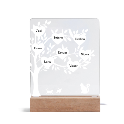 Personalisierte 8 Namen Katzen unter dem Familienbaum Nachtlicht Geschenk für Großmutter/Mutter zum Muttertag