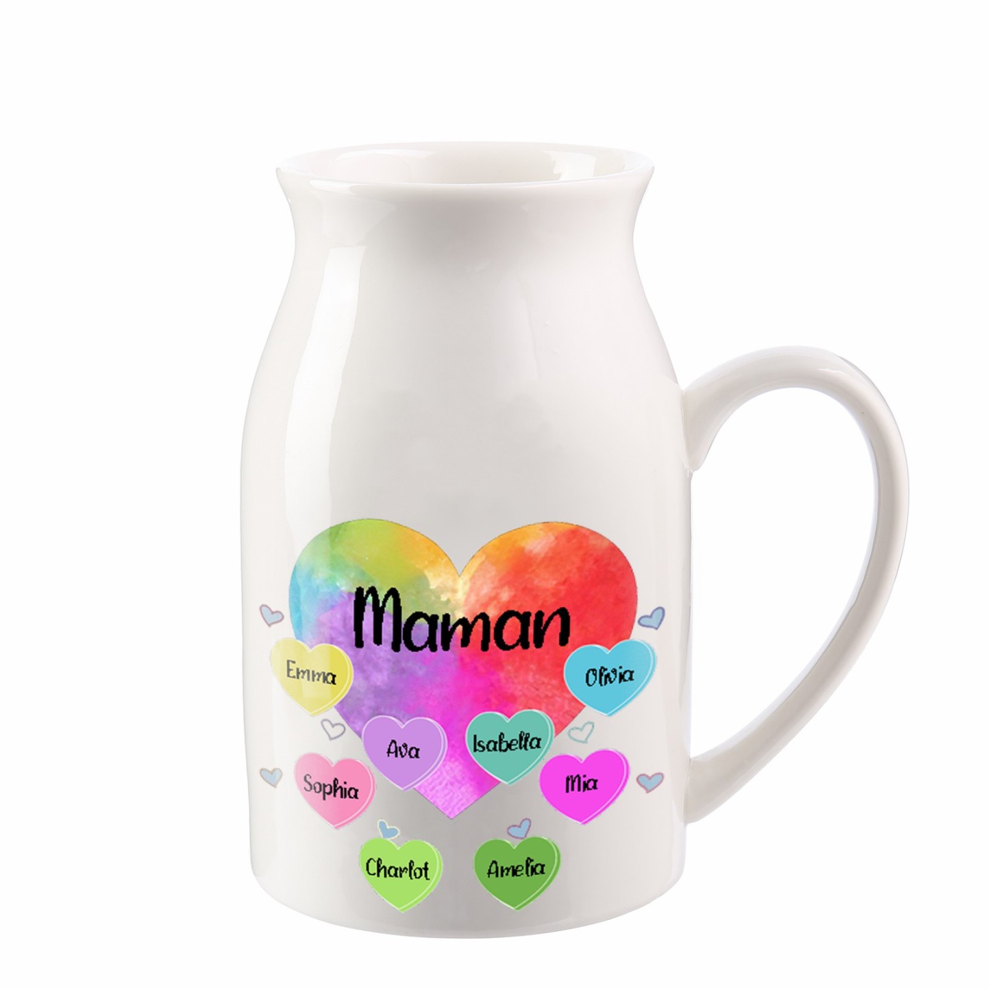 Personalisierte 8 Namen & Text Buntes Herz Familie Vase