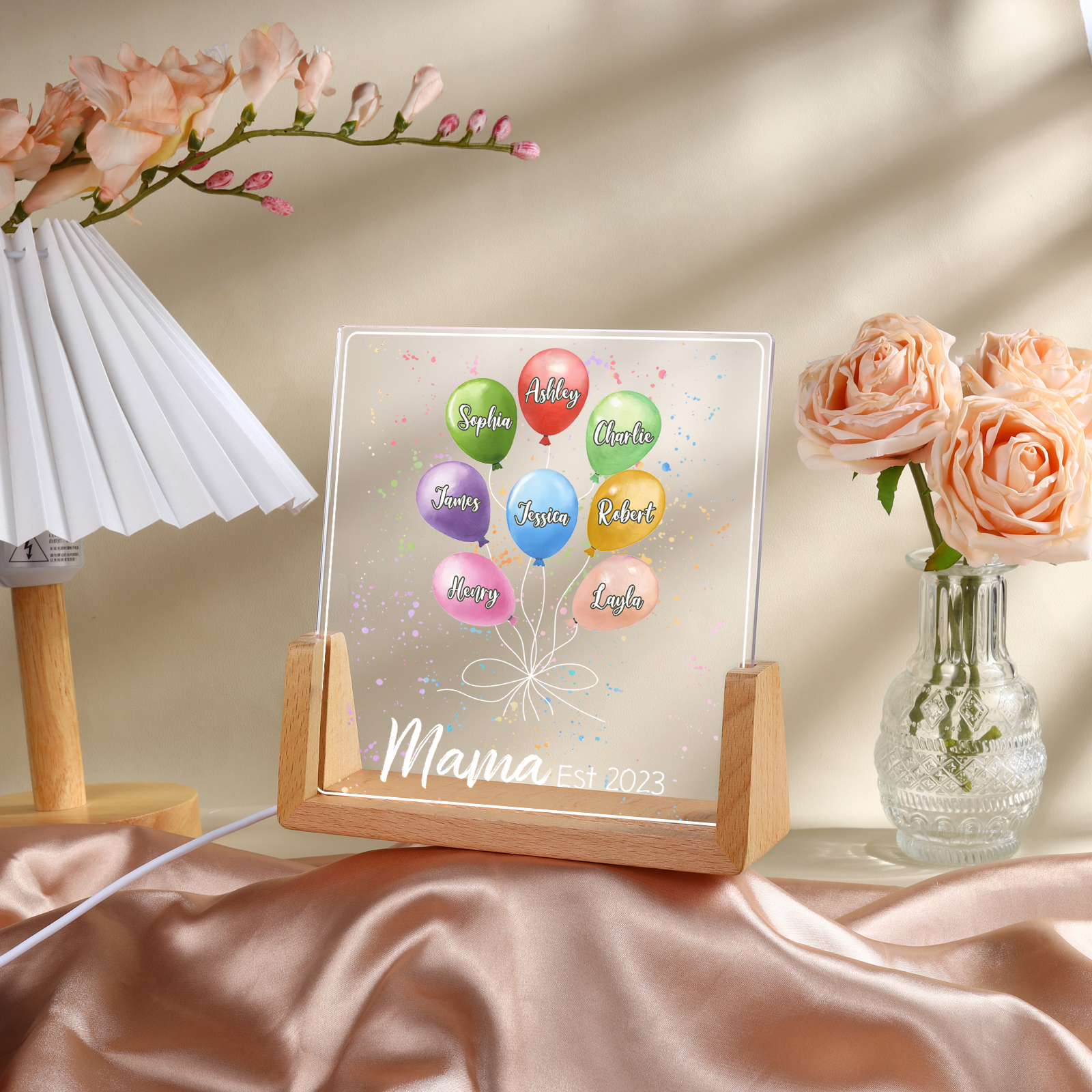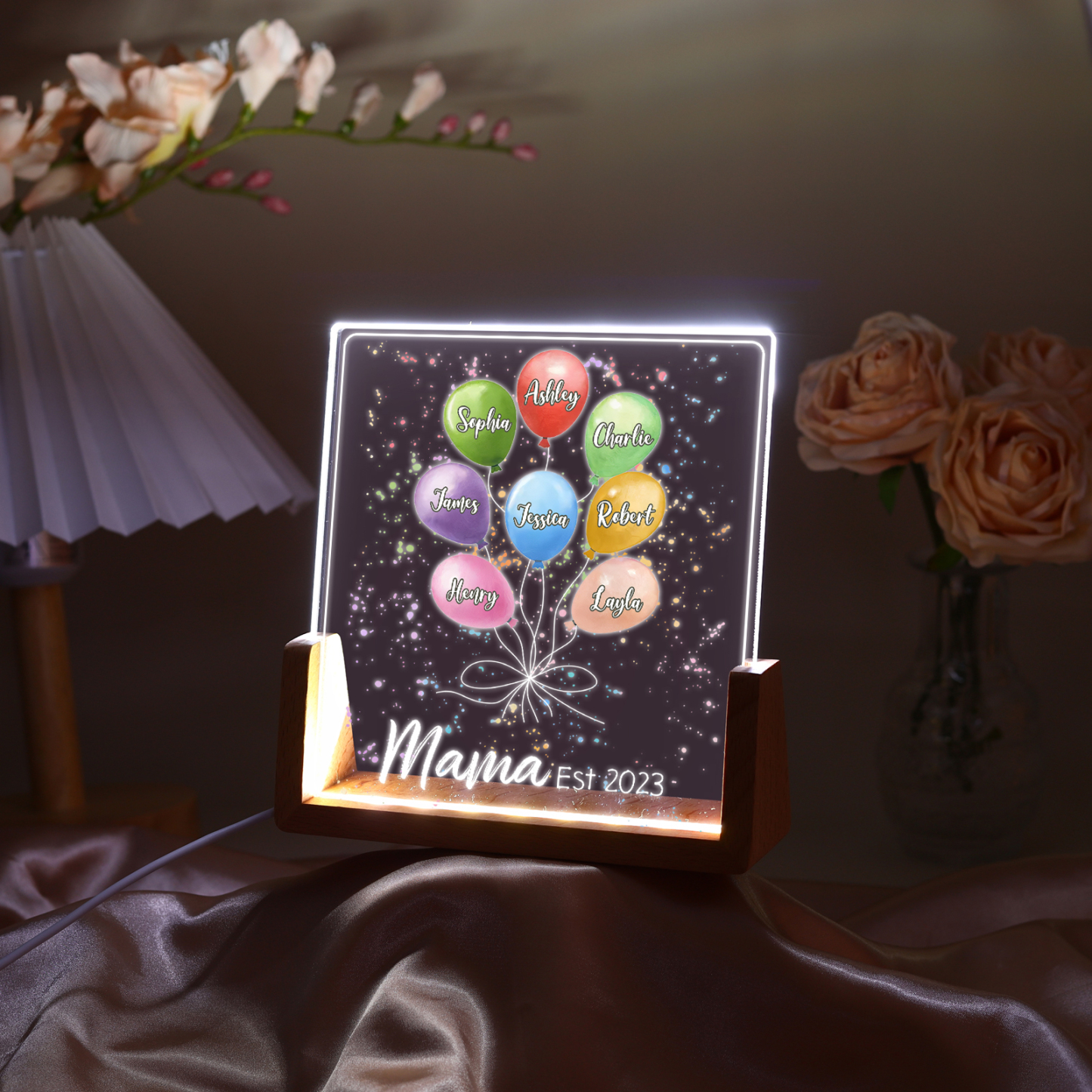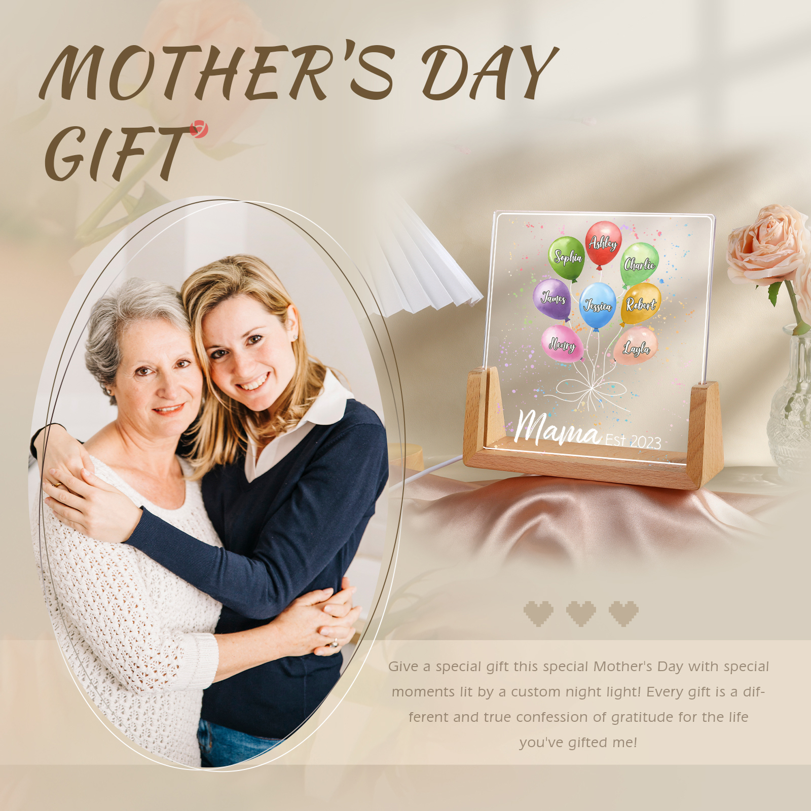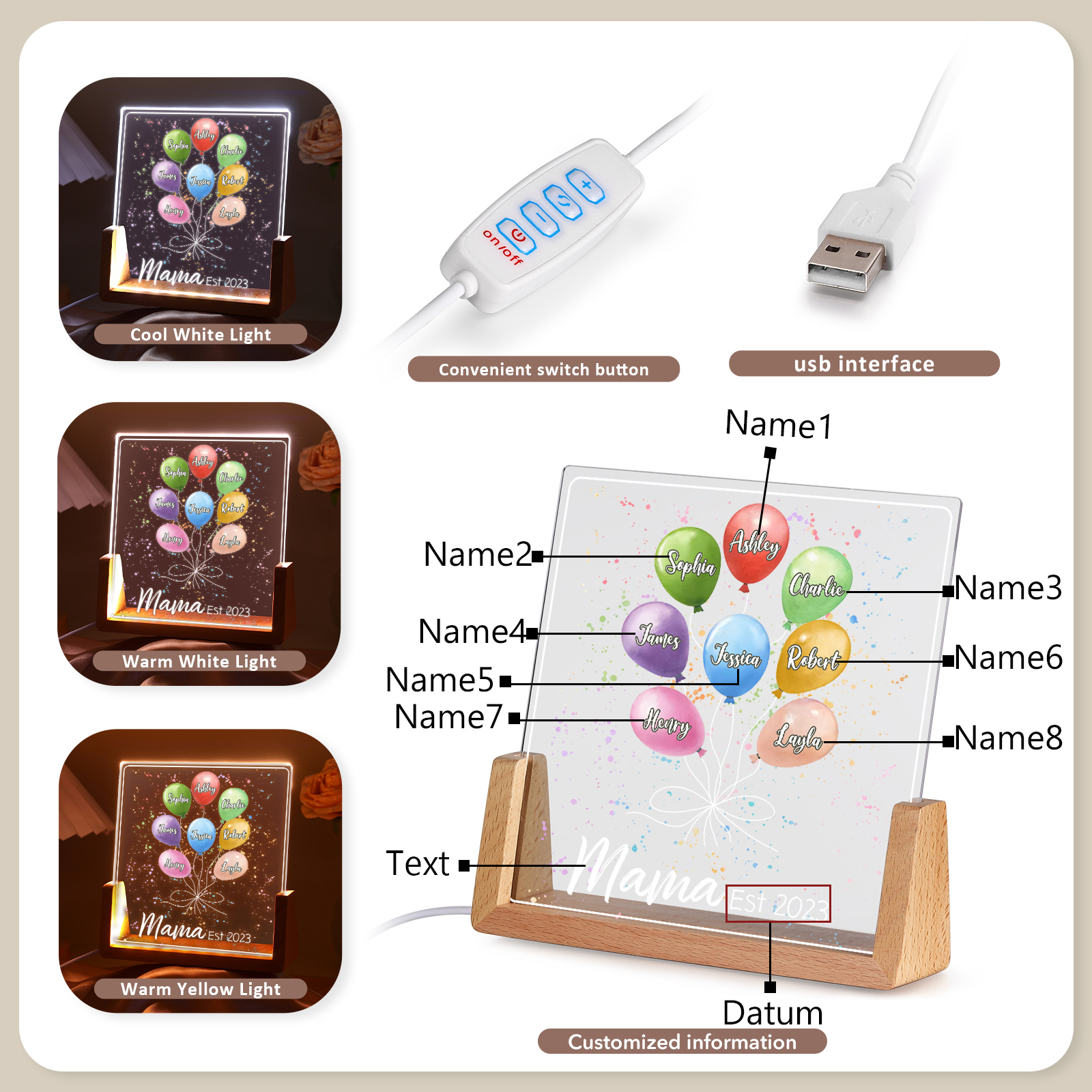 Personalisierte 8 Namen & Text & Datum Ballon Nachtlicht Geschenk für Großmutter/Mutter zum Muttertag