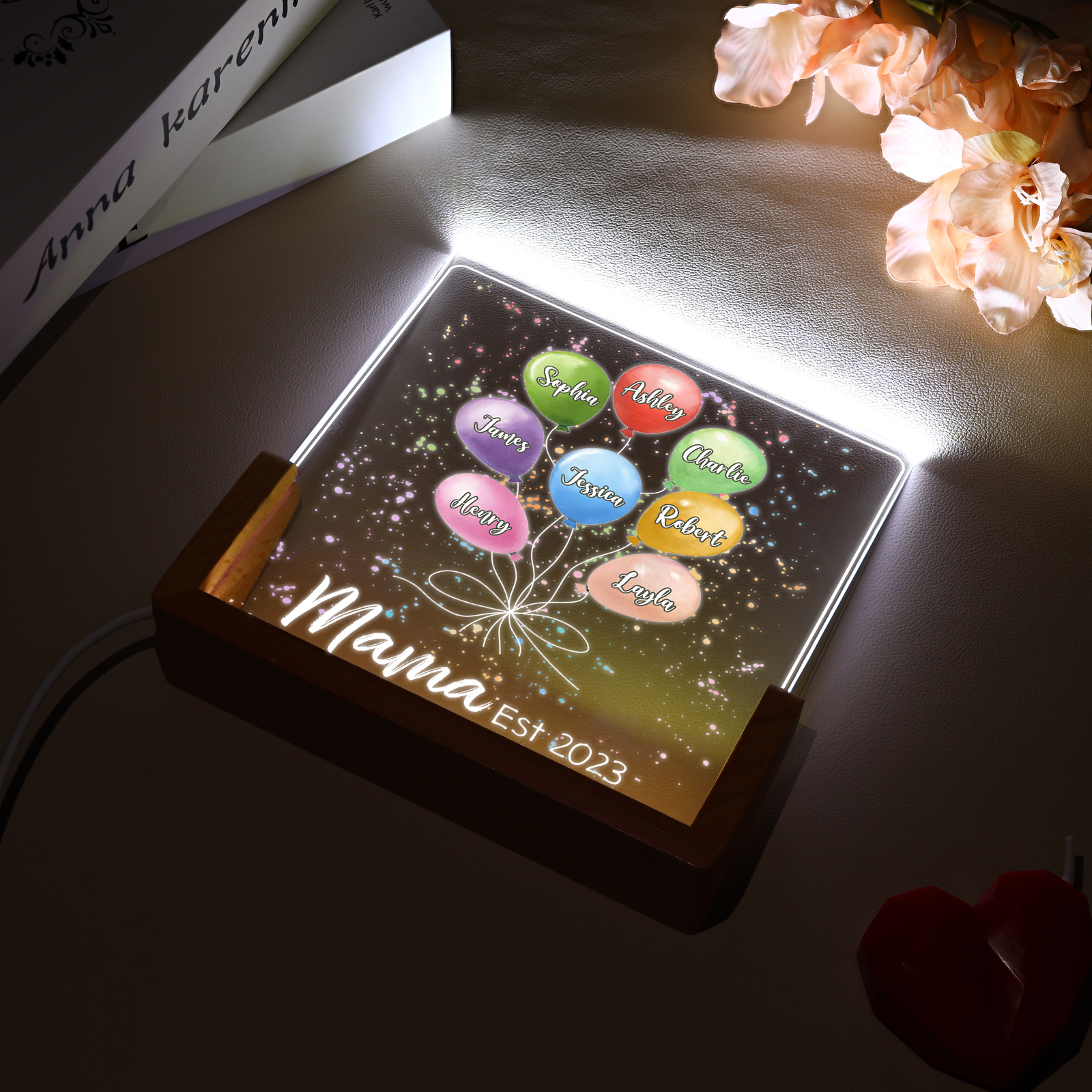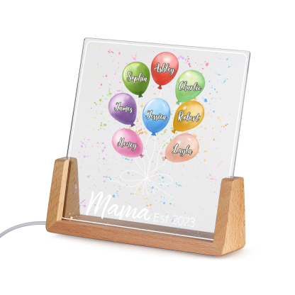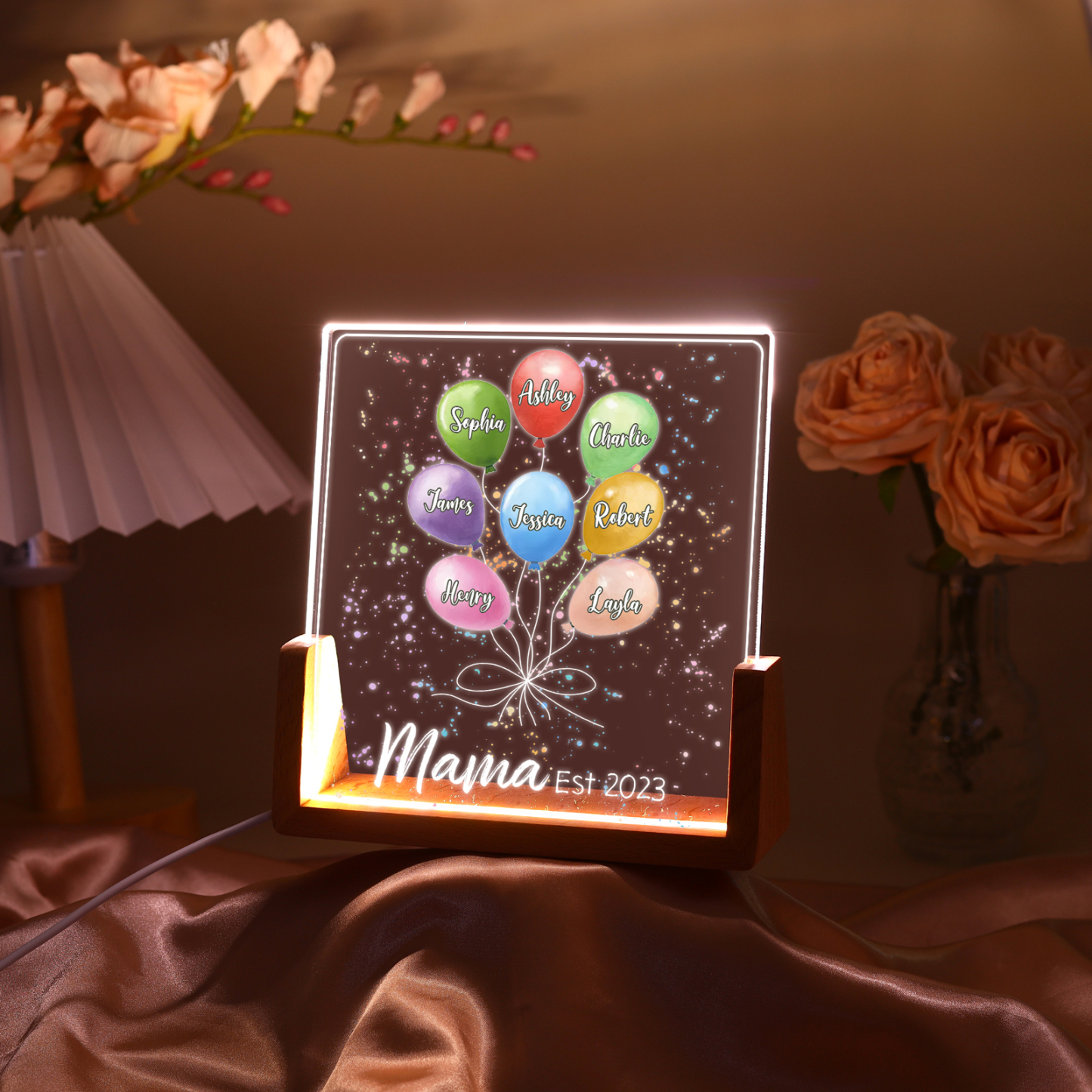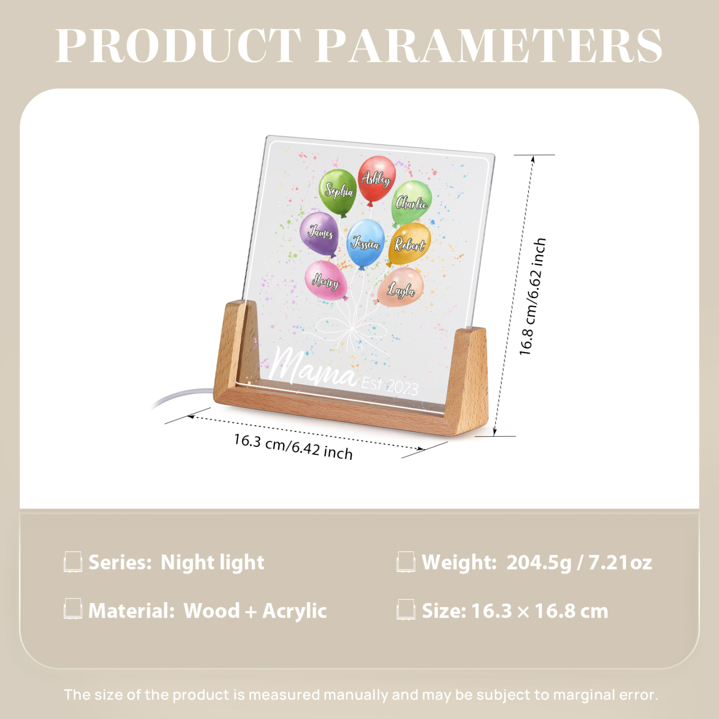 Personalisierte 8 Namen & Text & Datum Ballon Nachtlicht Geschenk für Großmutter/Mutter zum Muttertag
