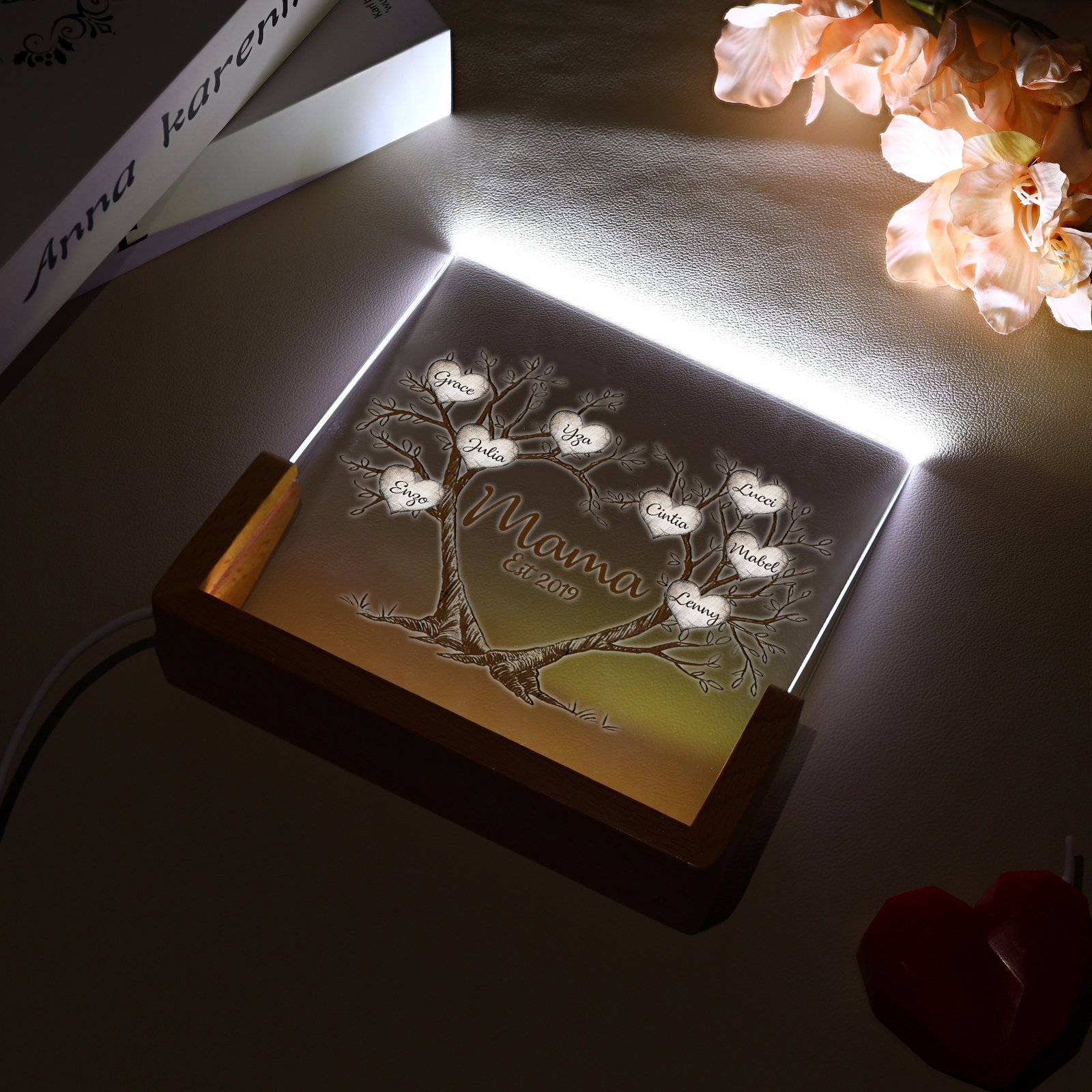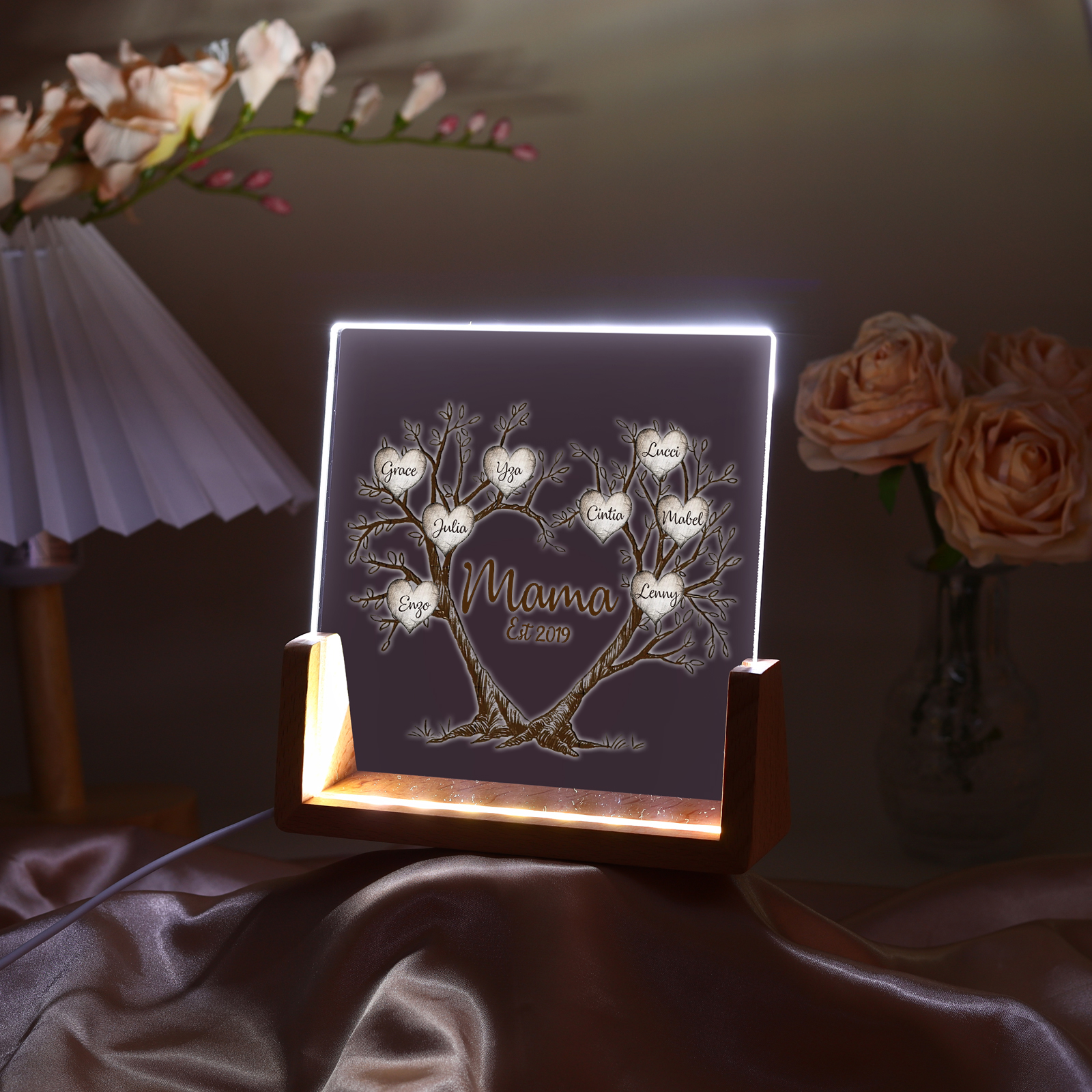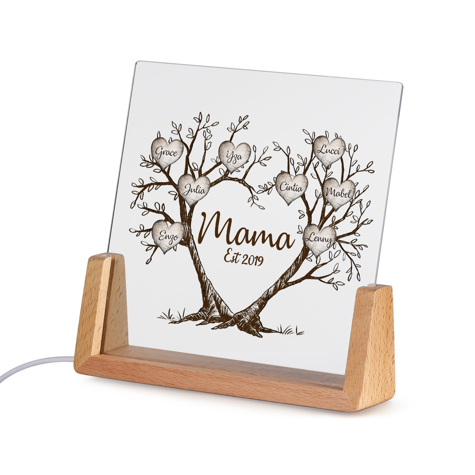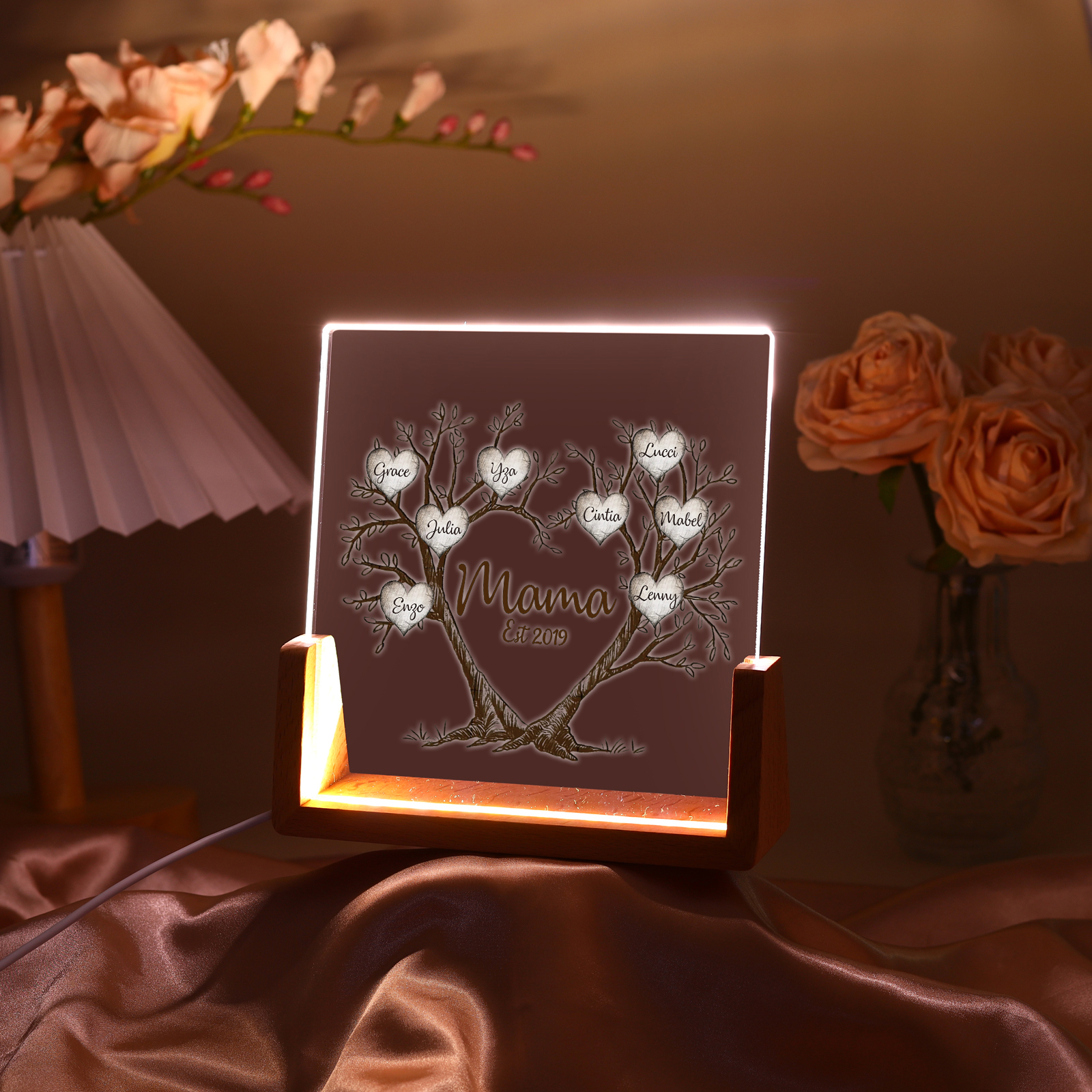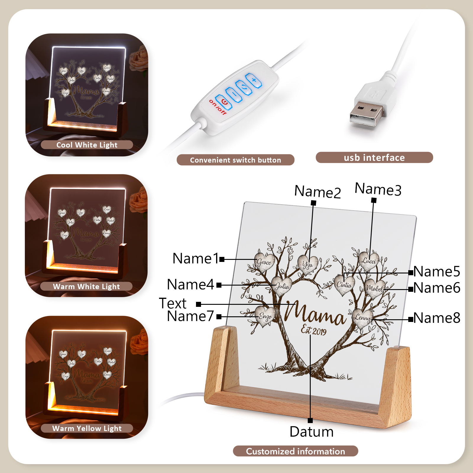 Personalisierte 8 Namen & Text & Datum Familenbaum Nachtlicht Geschenk für Großmutter/Mutter zum Muttertag