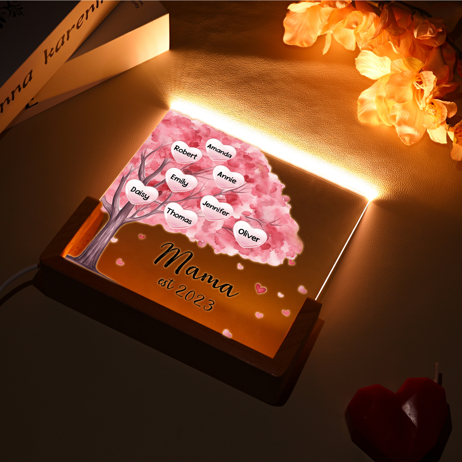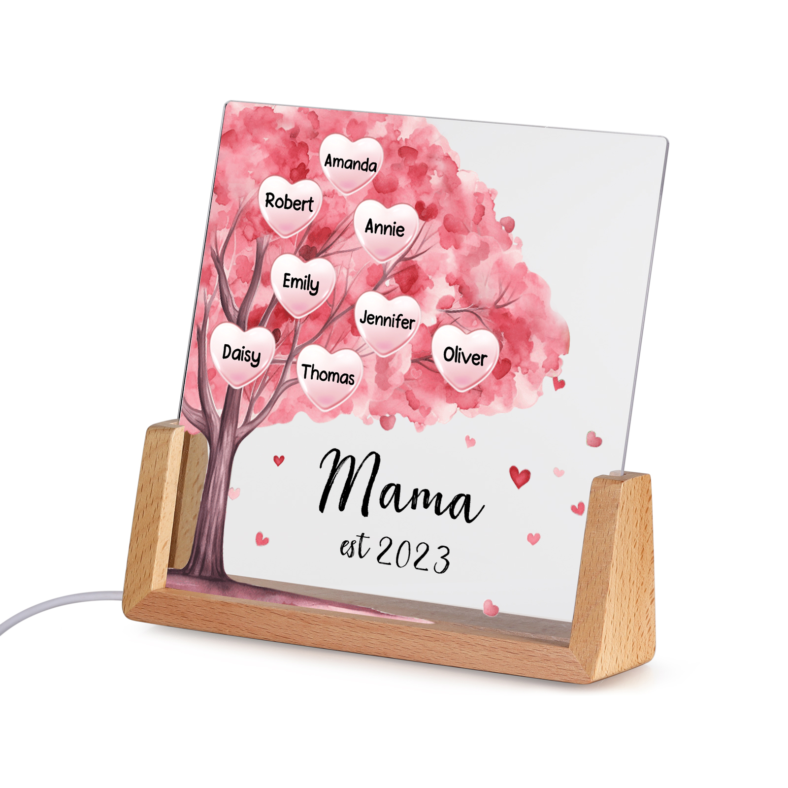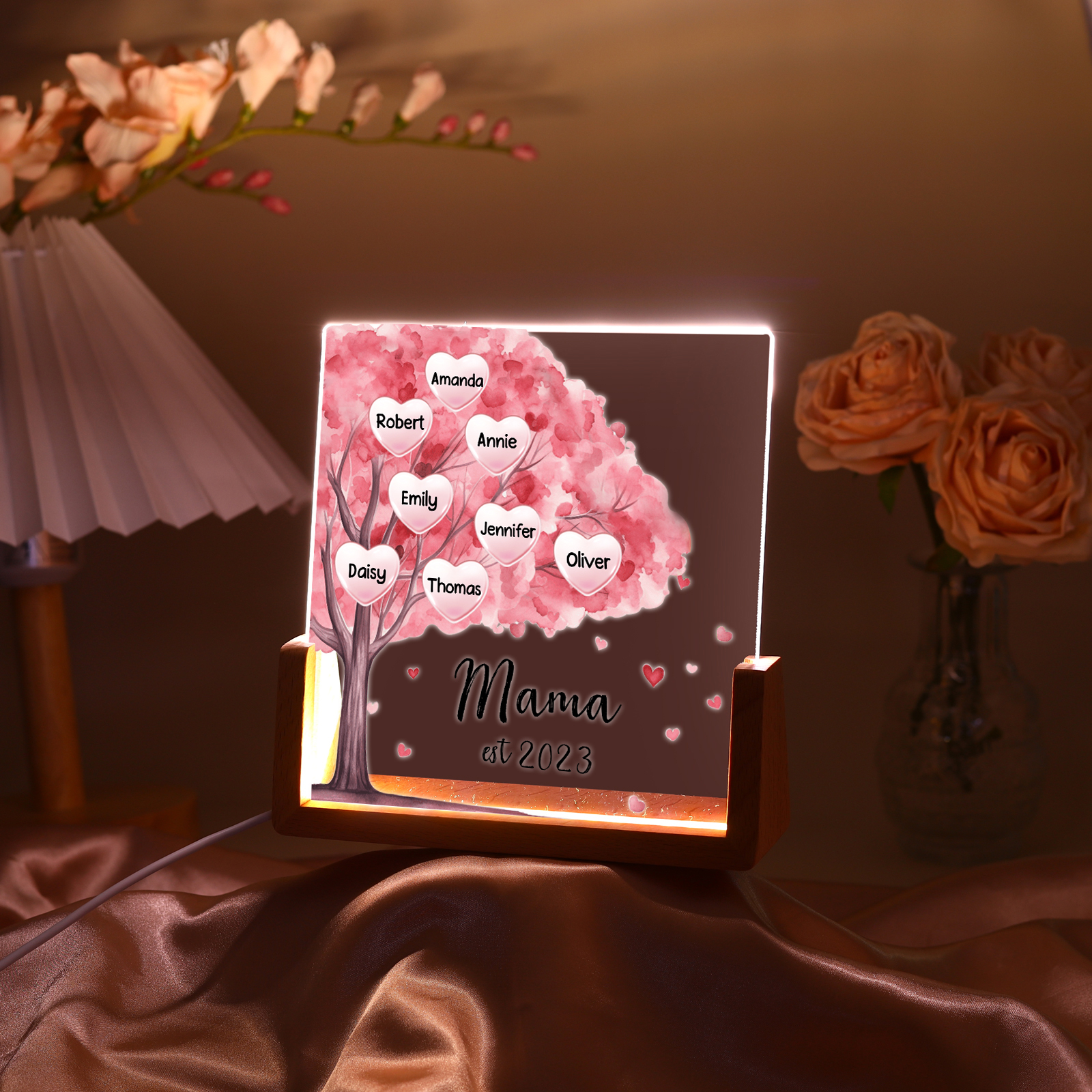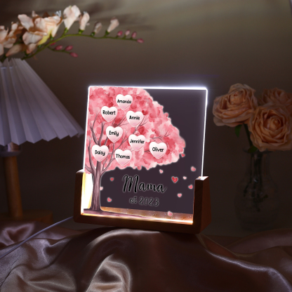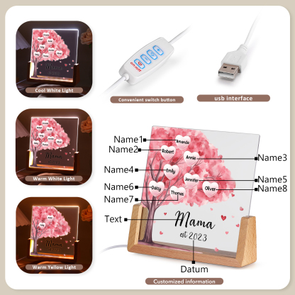 Personalisierte 8 Namen & Text & Datum Rosa Familienbaum Nachtlicht Geschenk für Großmutter/Mutter zum Muttertag