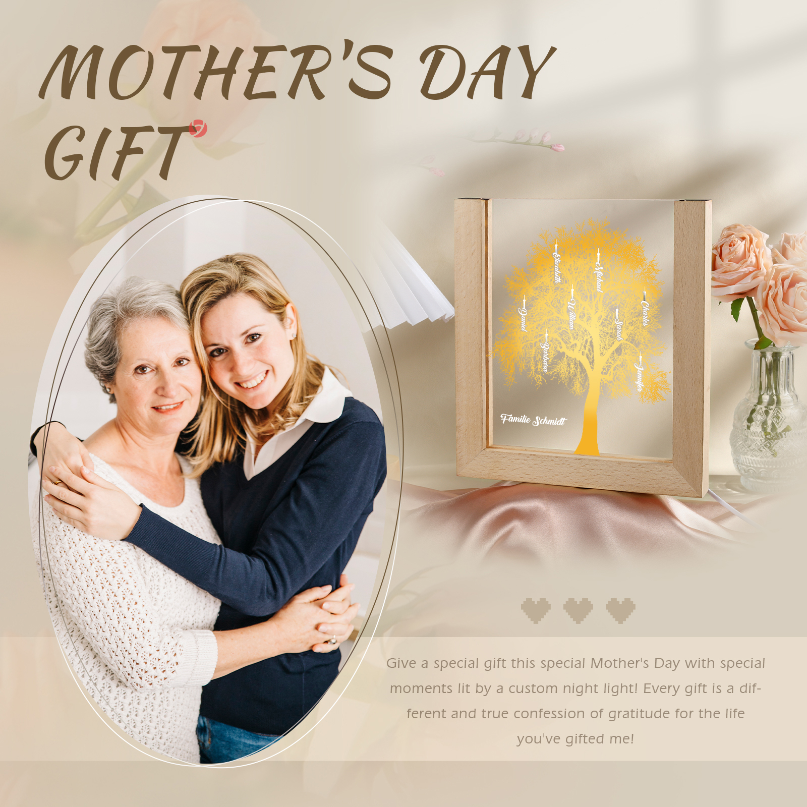 Personalisierte 8 Namen & Text Golden Baum Acryl Rahmen Nachtlicht Geschenk für Großmutter/Mutter zum Muttertag