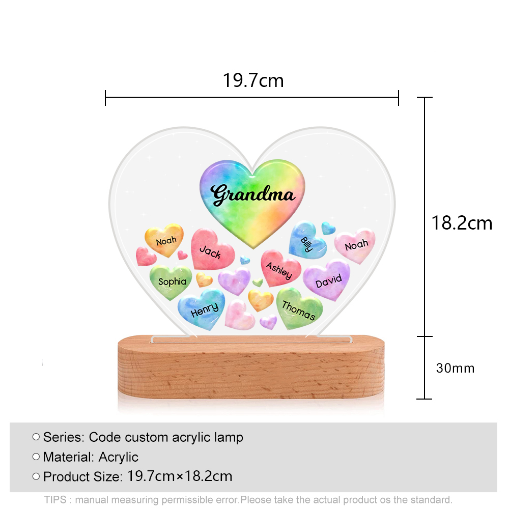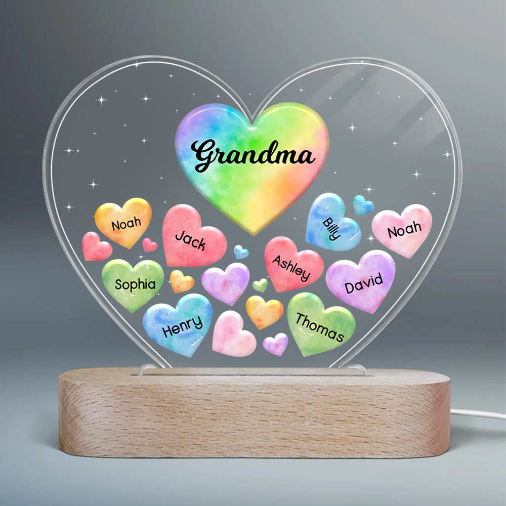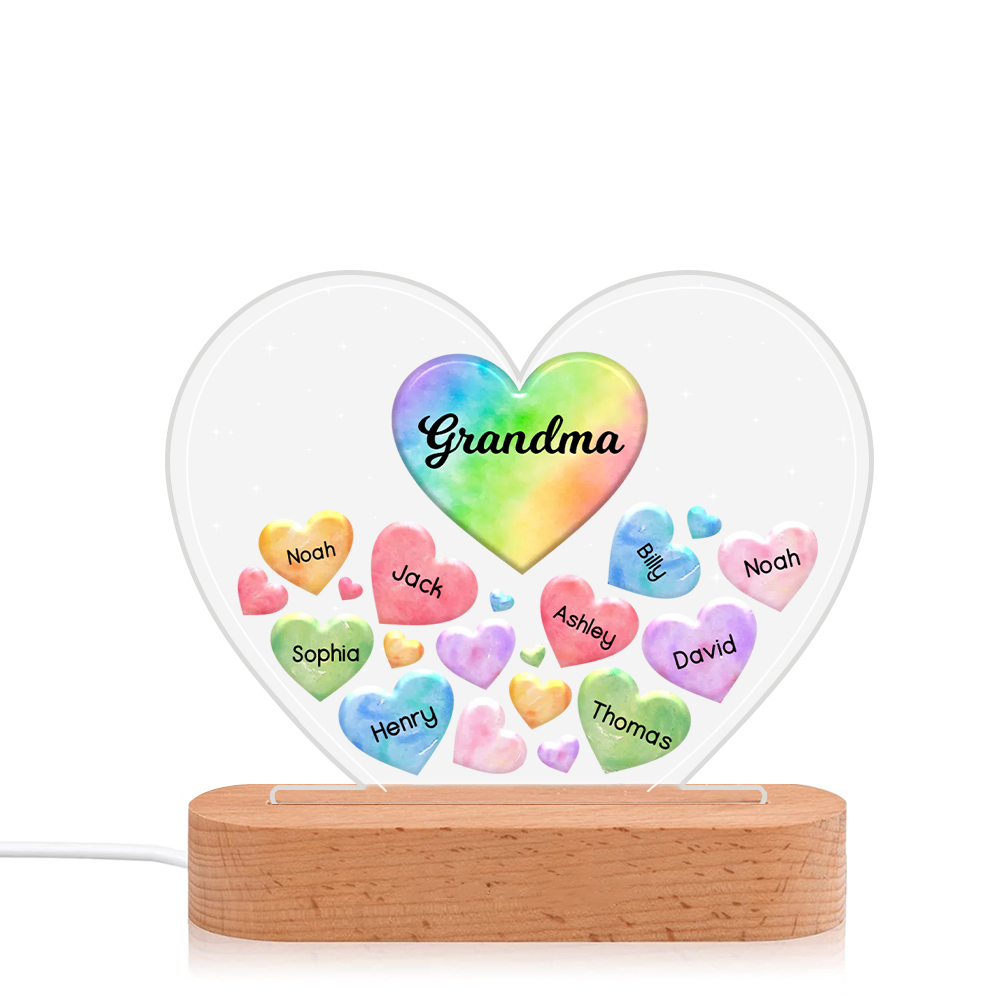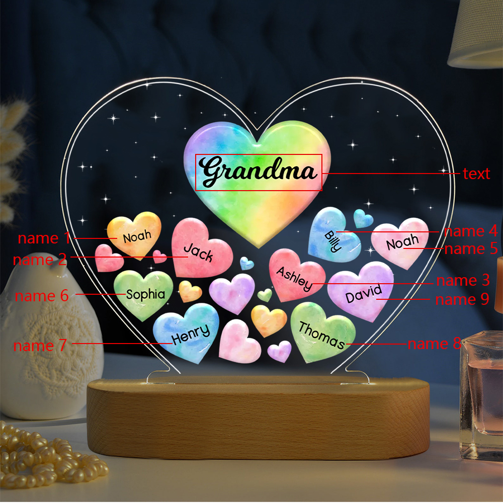 Personalisierte 9 Namen & Text Herz Familie Nachtlicht Geschenk für Großmutter/Mutter zum Muttertag