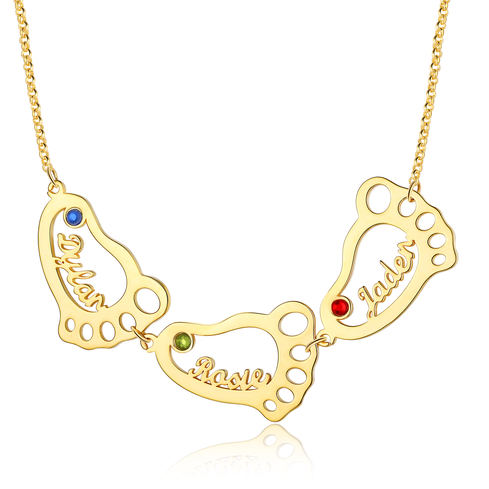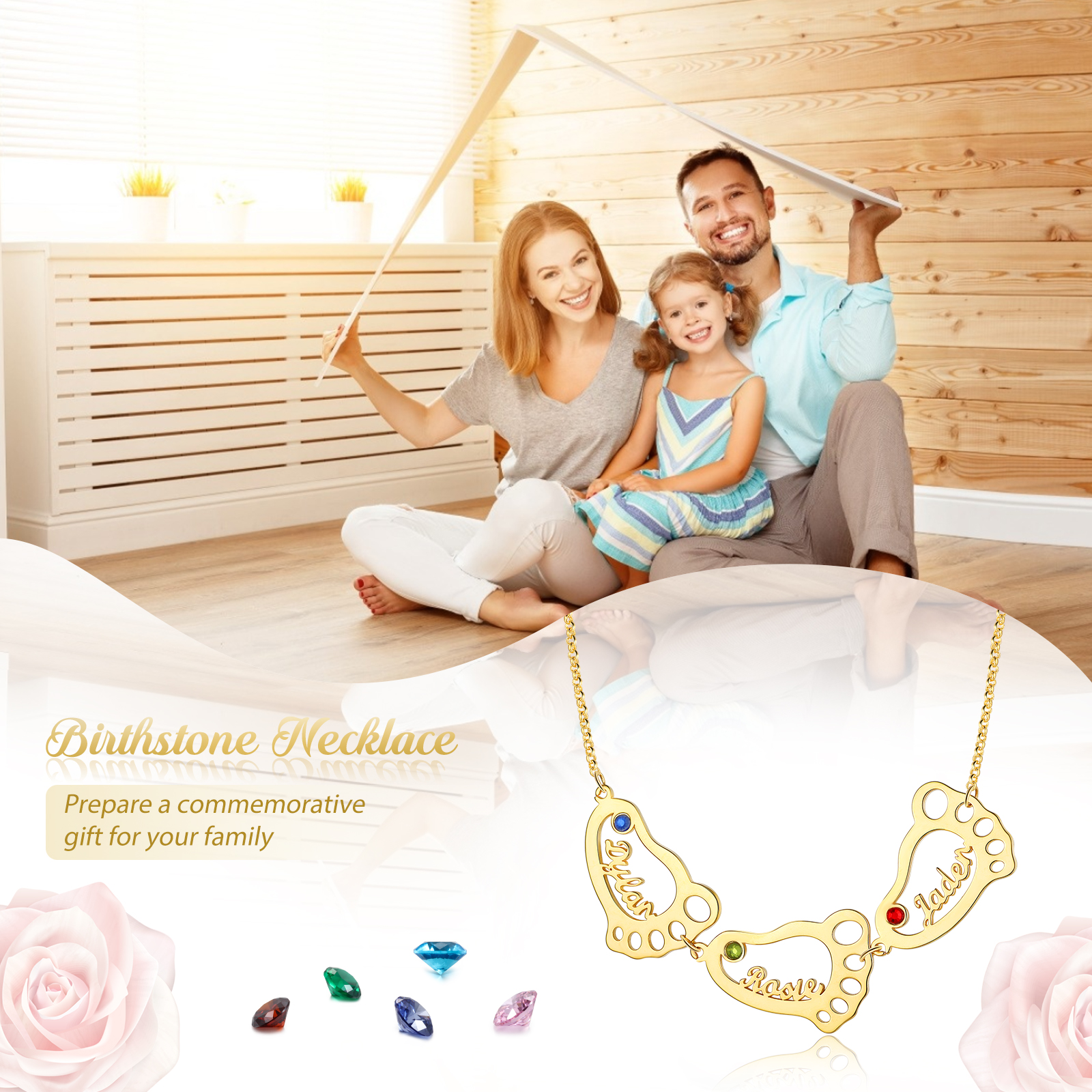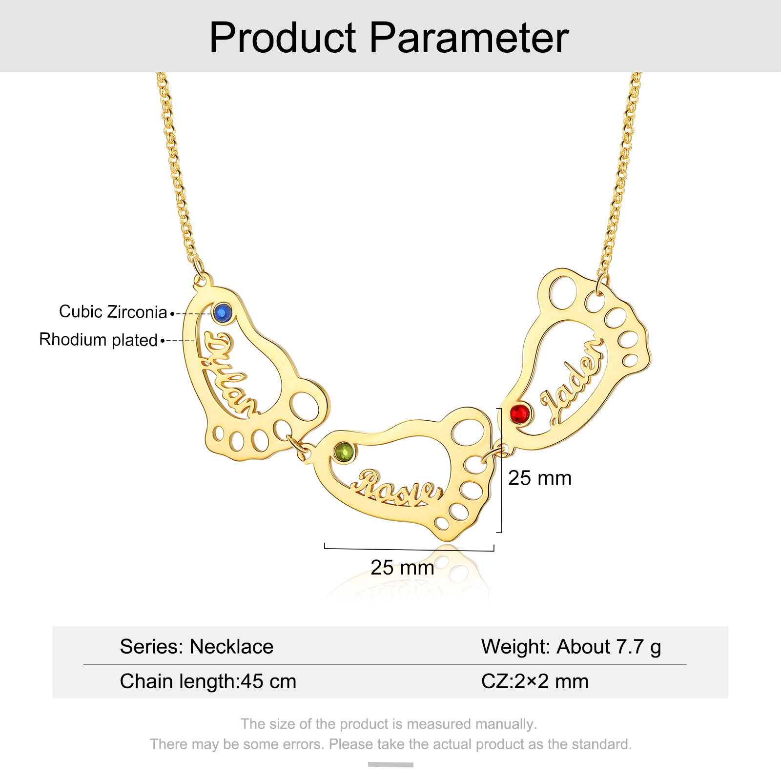 Personalisierte Baby Füße 3 Geburtsstein Halskette