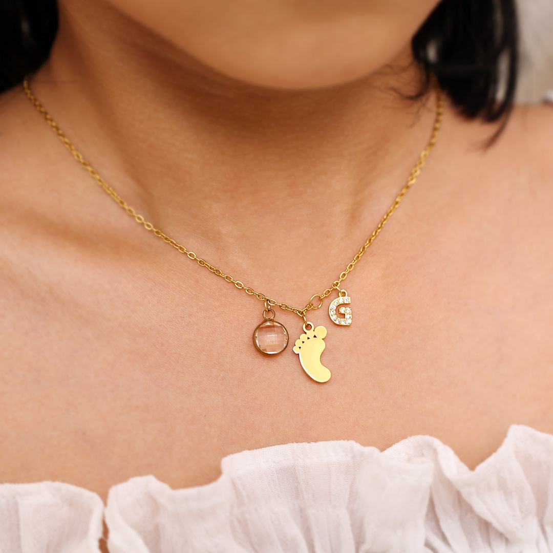 Personalisierte Buchstabe Fuß Sommer Halskette mit Geburtsstein für Kinder