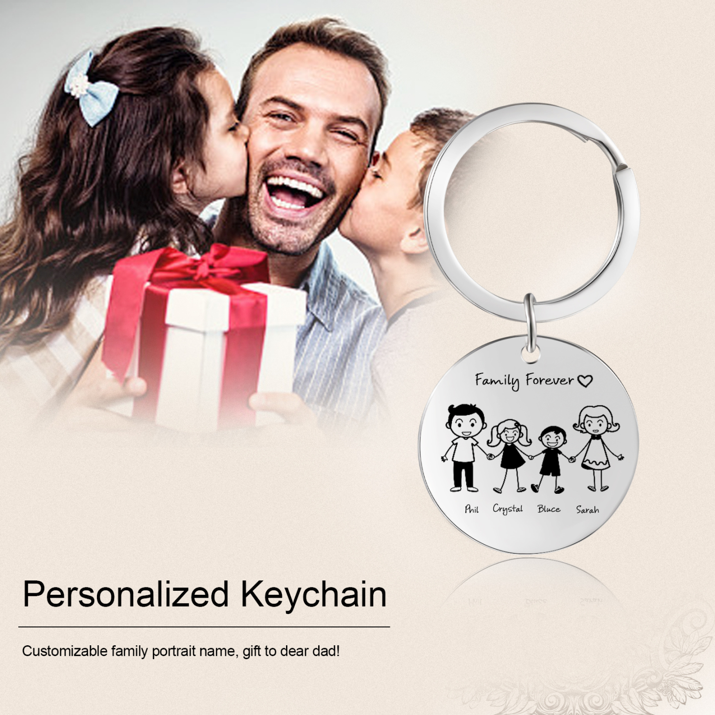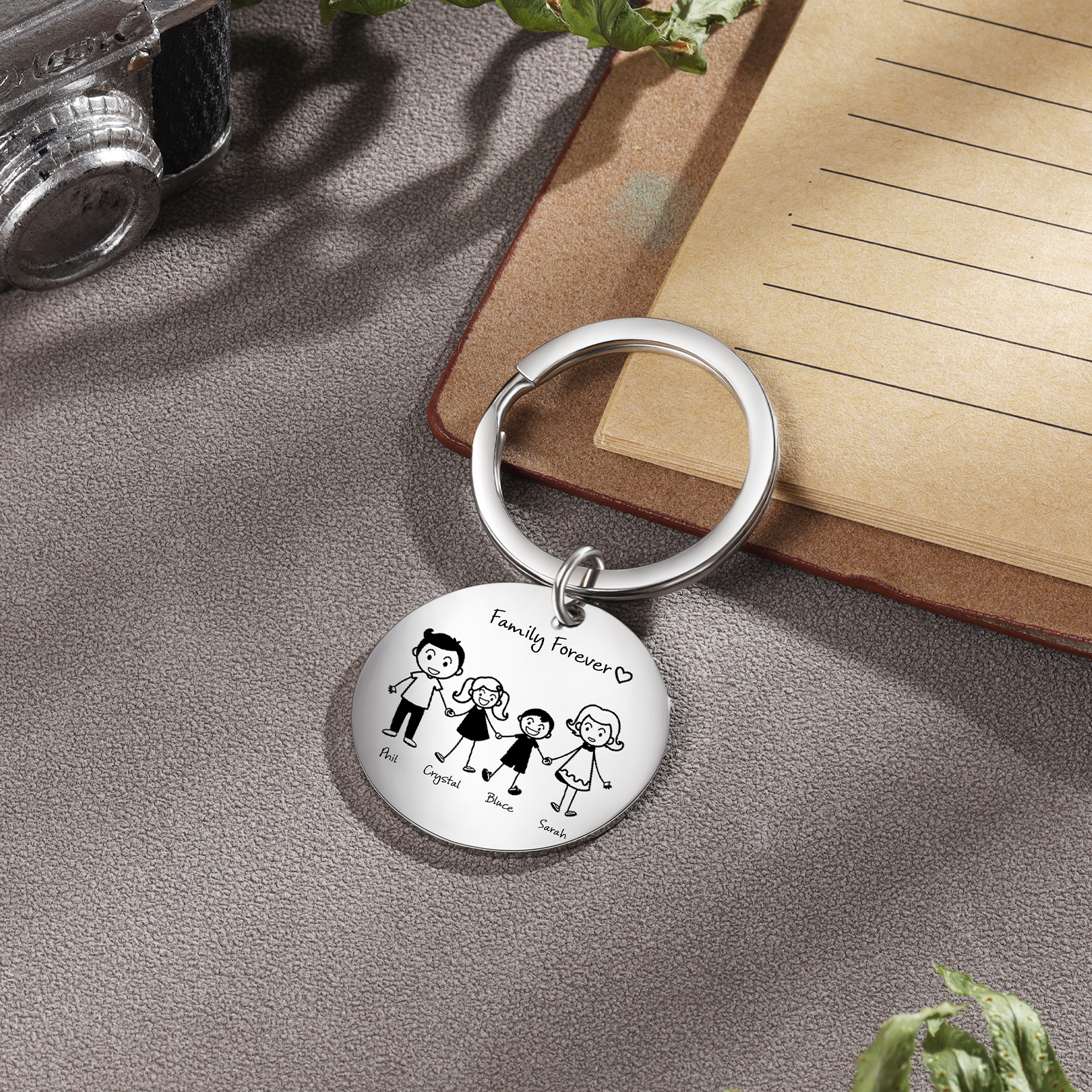 Personalisierte Familie-Schlüsselanhänger mit Gravur - Eine Tochter und Ein Sohn