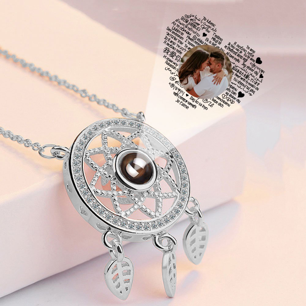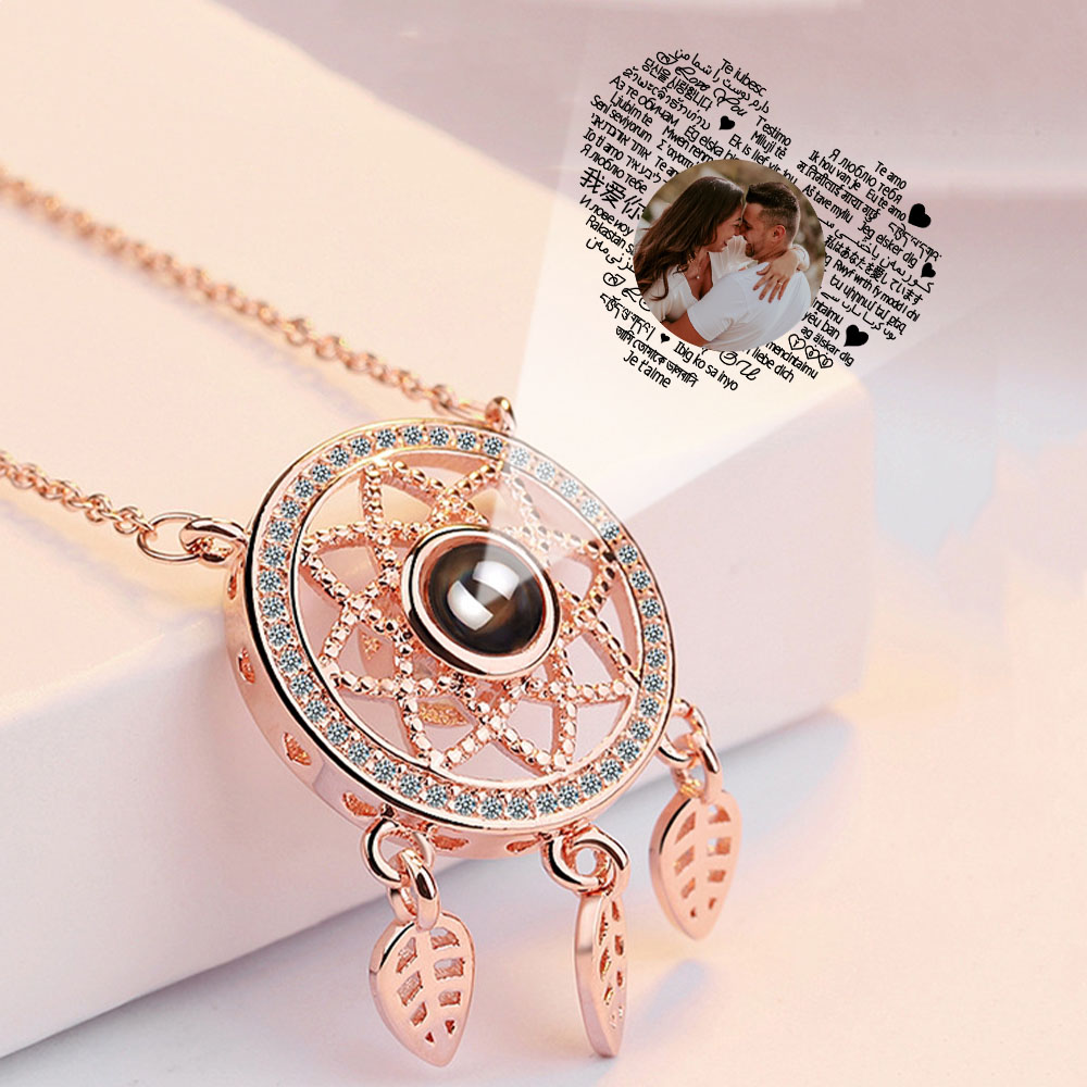 Personalisierte Foto 100 Sprachen Ich Liebe Dich Projektion Halskette Traumfänger Halskette Geschenk für Liebe Paar Halsketten