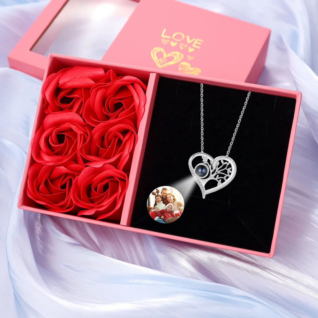 Personalisierte Foto Lebensbaum Projektion Halskette mit Zirkonia
