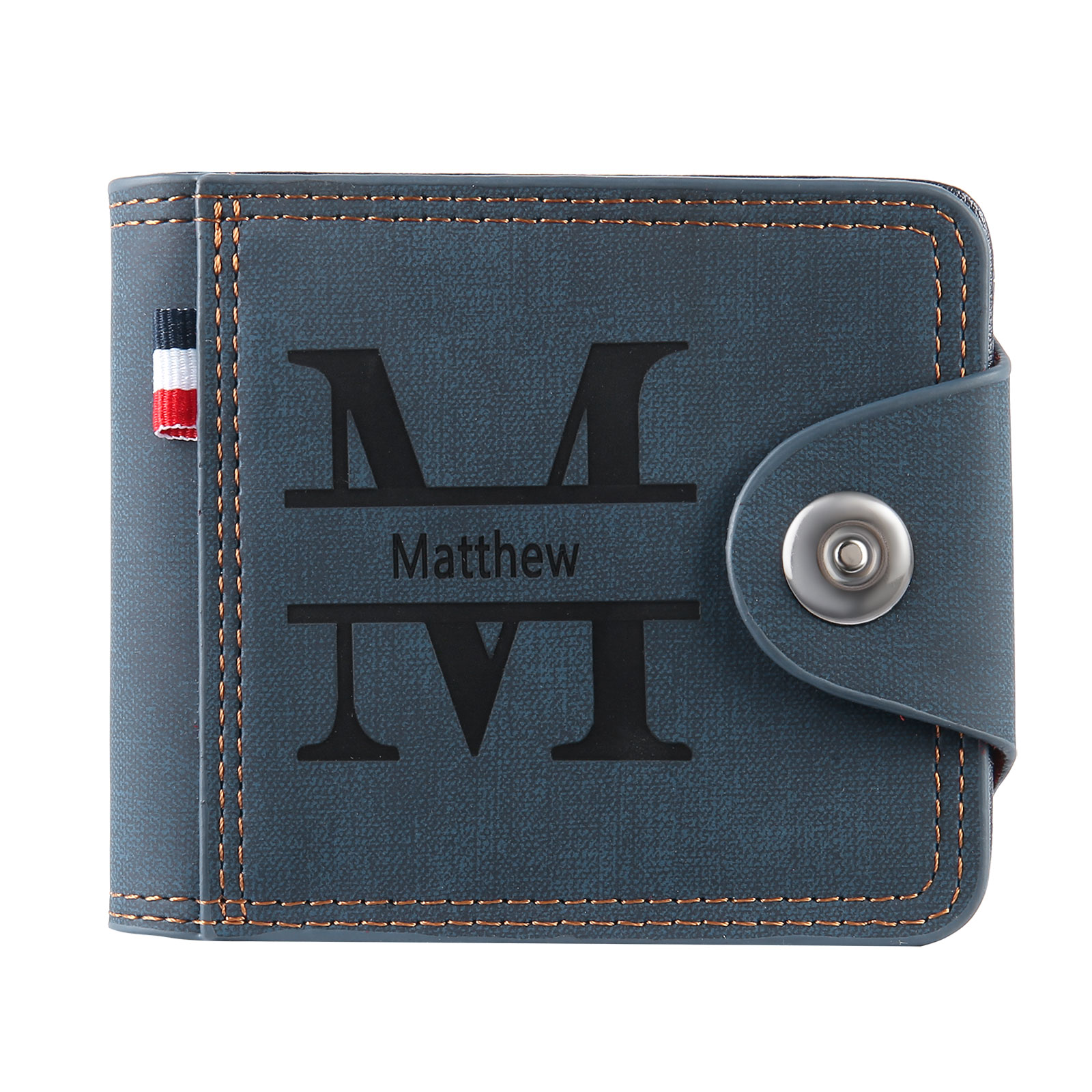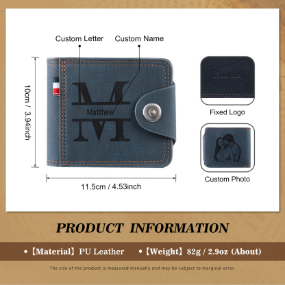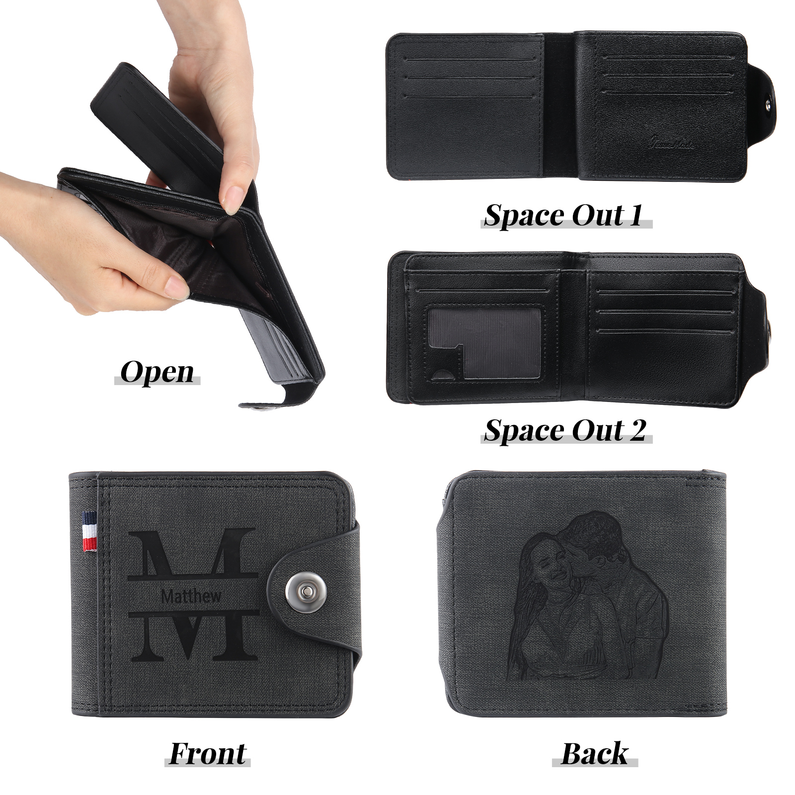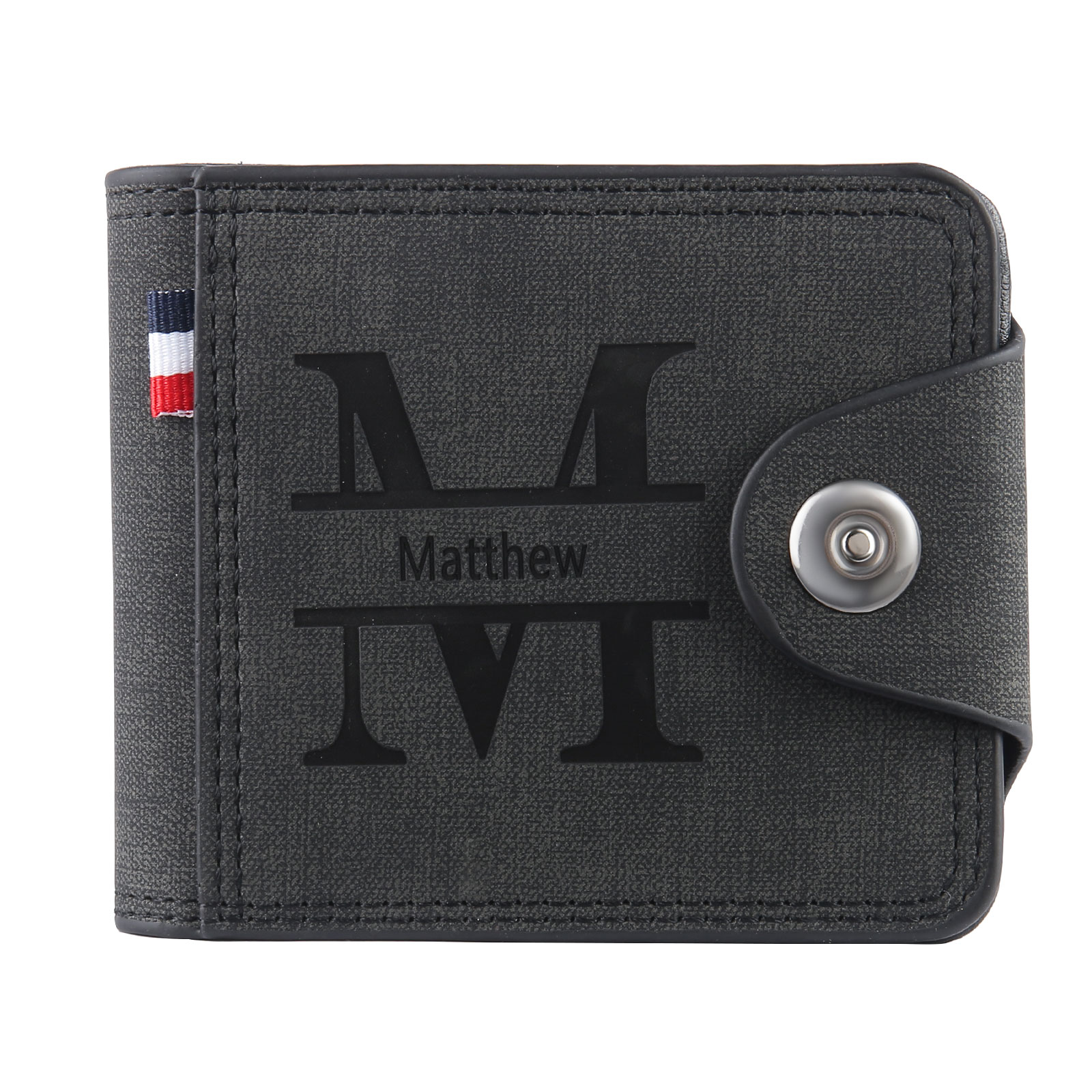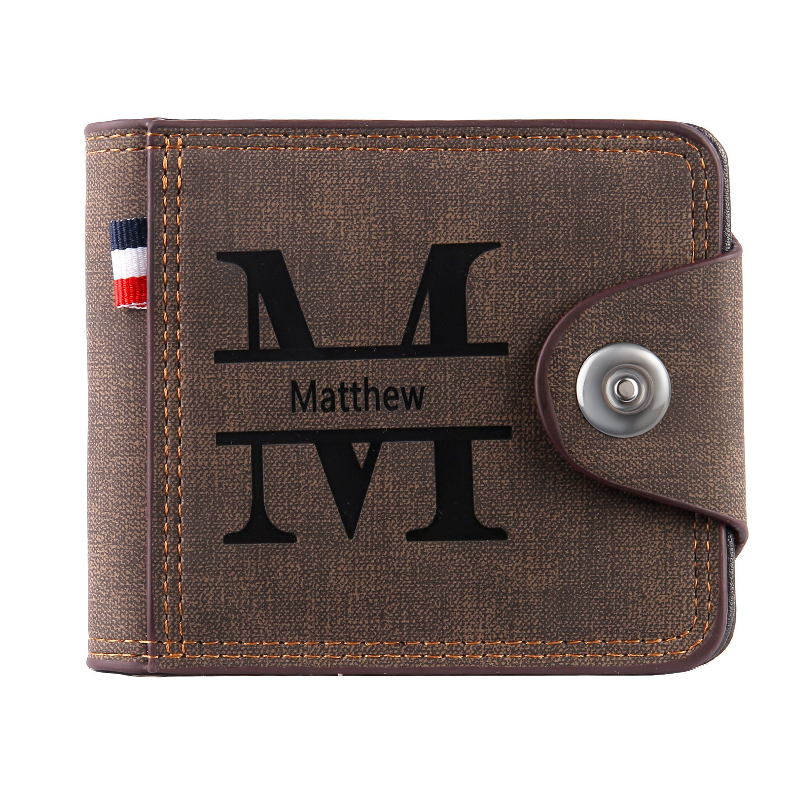 Personalisierte Foto & Name & 1 Buchstabe PU-Leder Herren Geldbörse mit Knöpfen