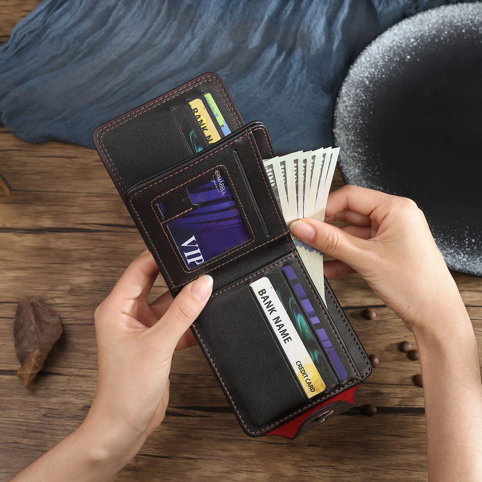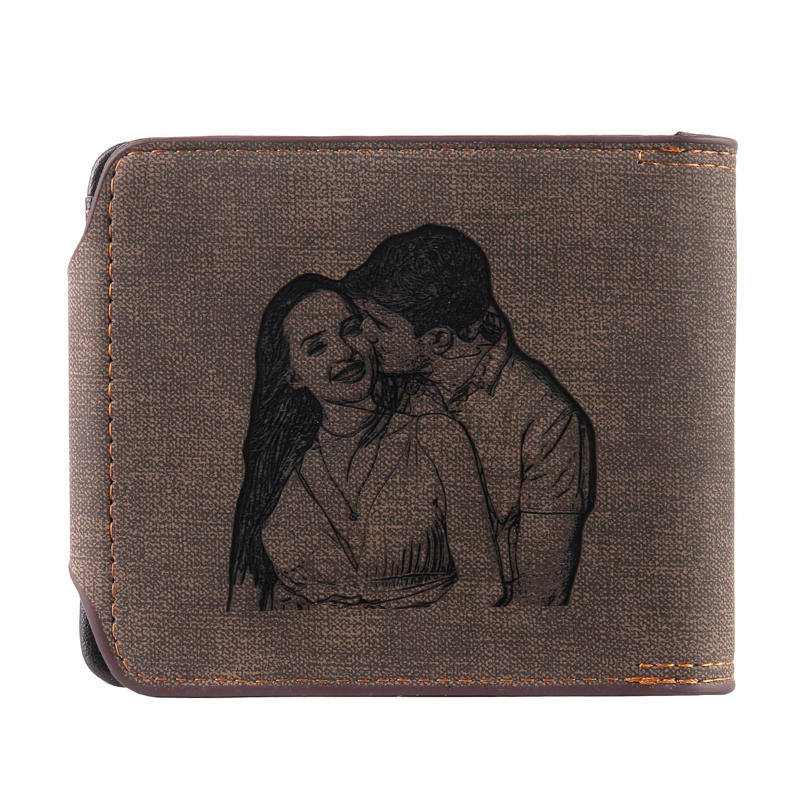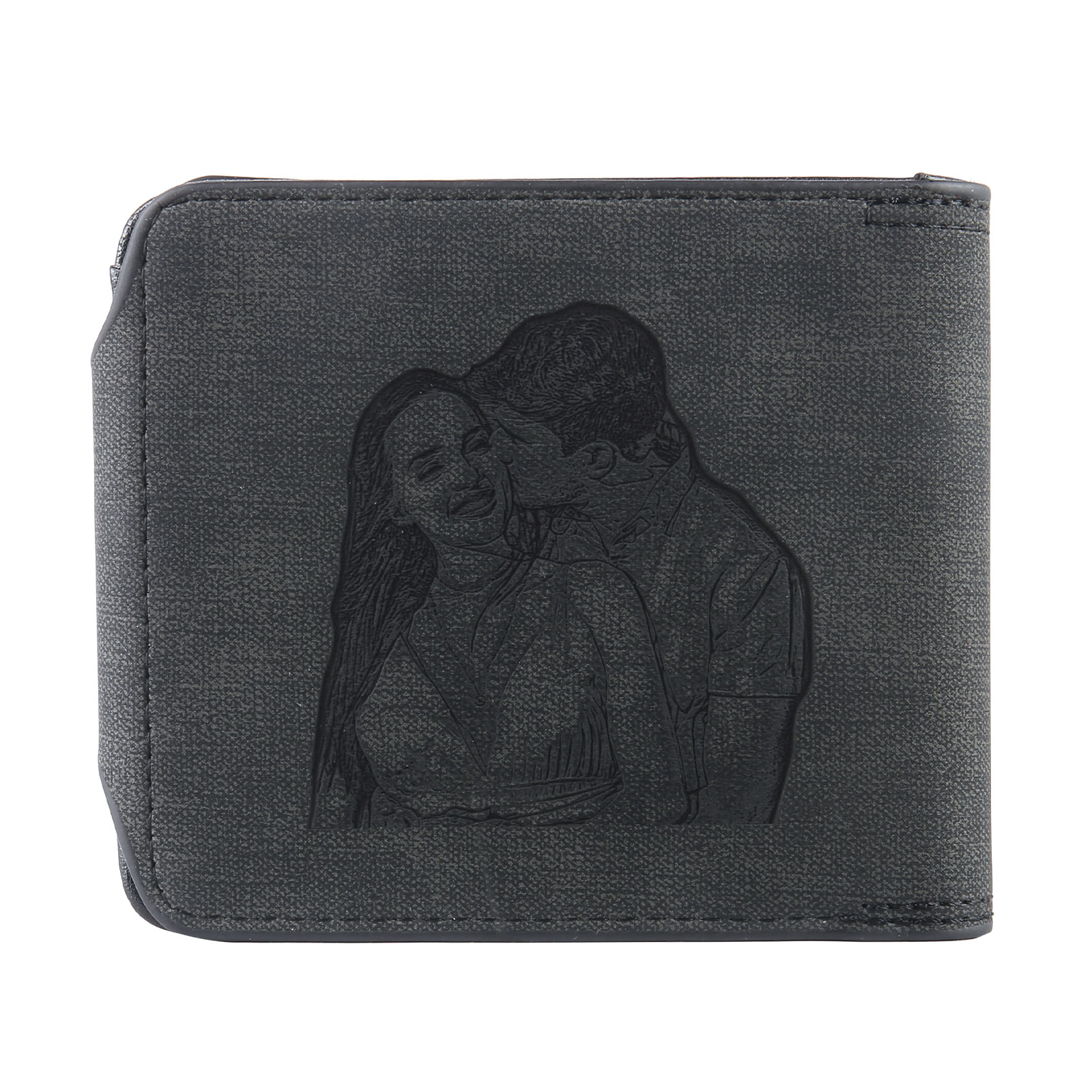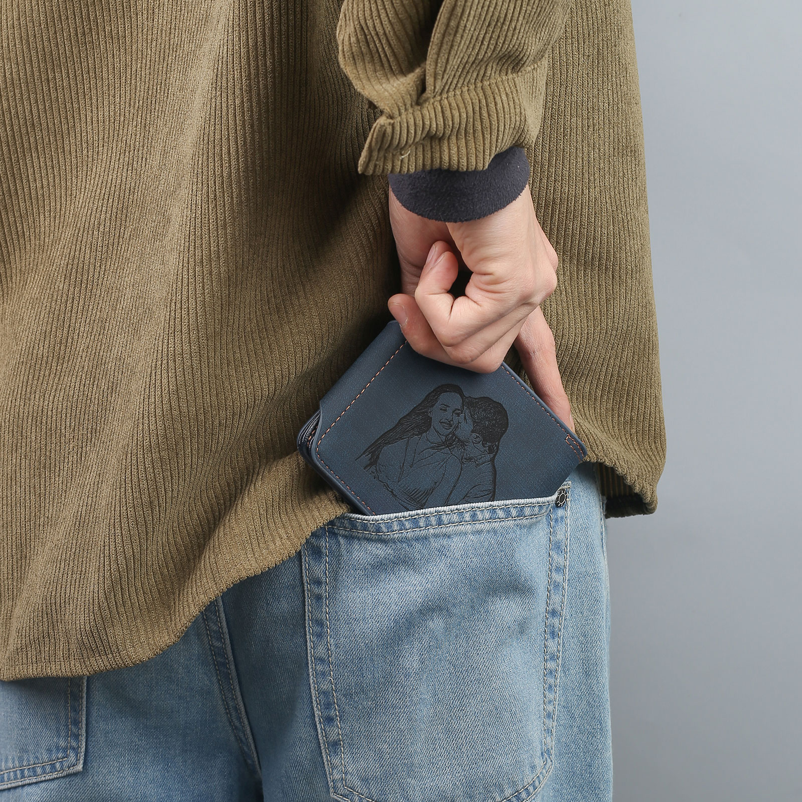 Personalisierte Foto & Name & 1 Buchstabe PU-Leder Herren Geldbörse mit Knöpfen