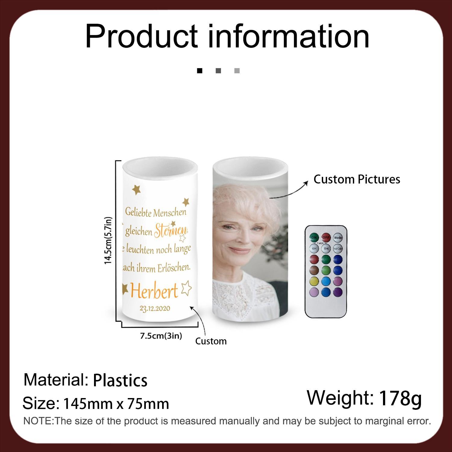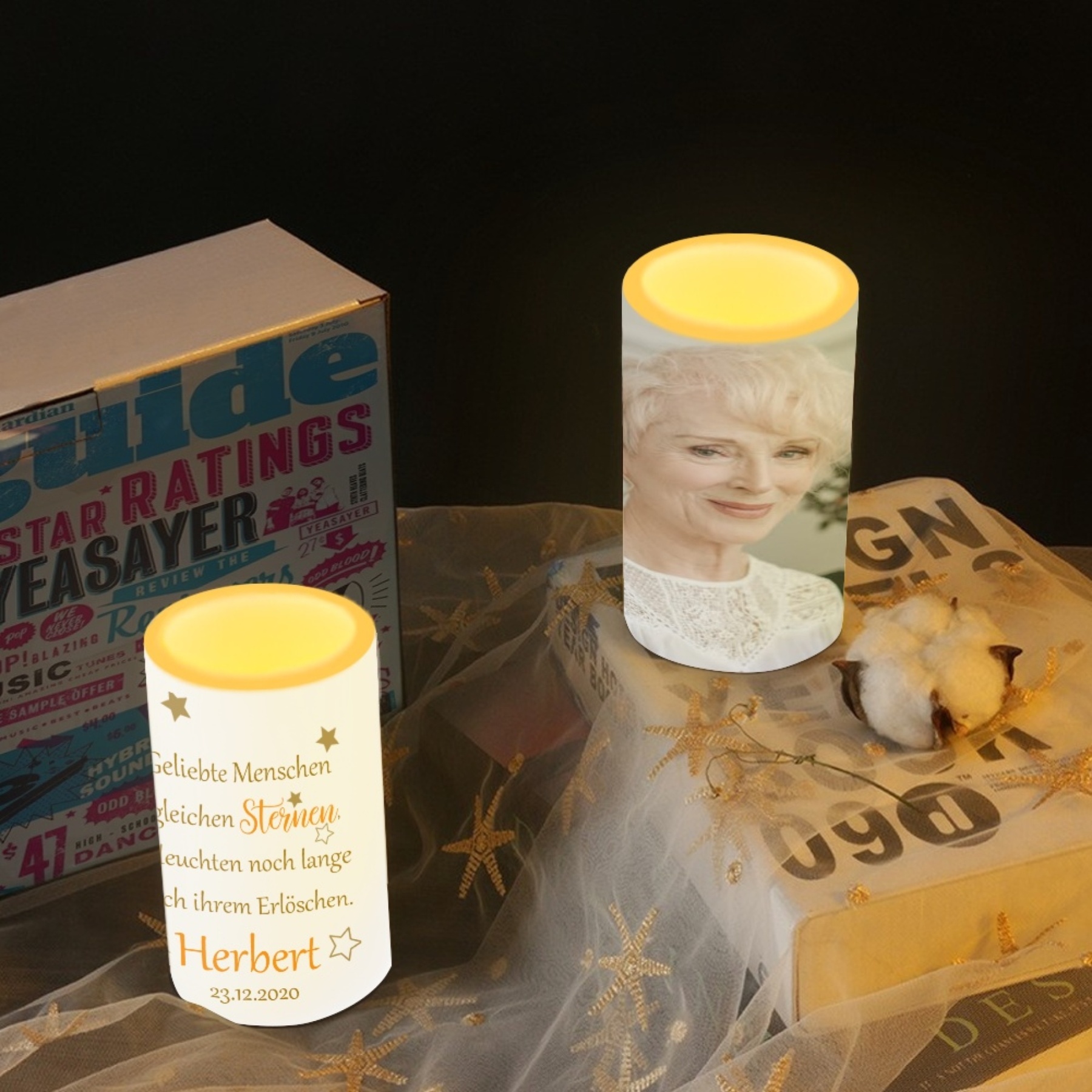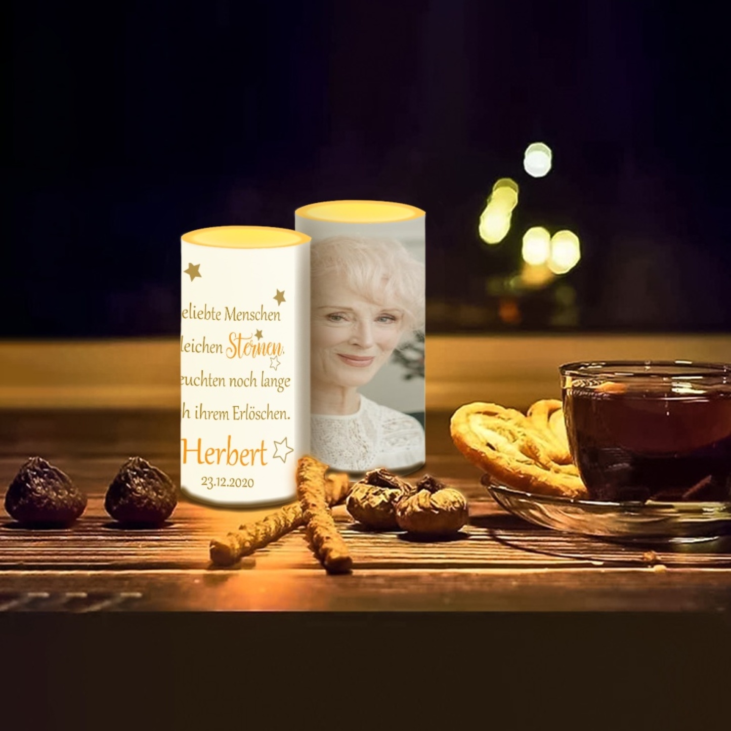 Personalisierte Foto Name Datum Trauer 2er-Pack flammenlose Kerzenhalter-Geliebte Menschen gleichen Sternen-Elektronische Gedenkkerzenhalter